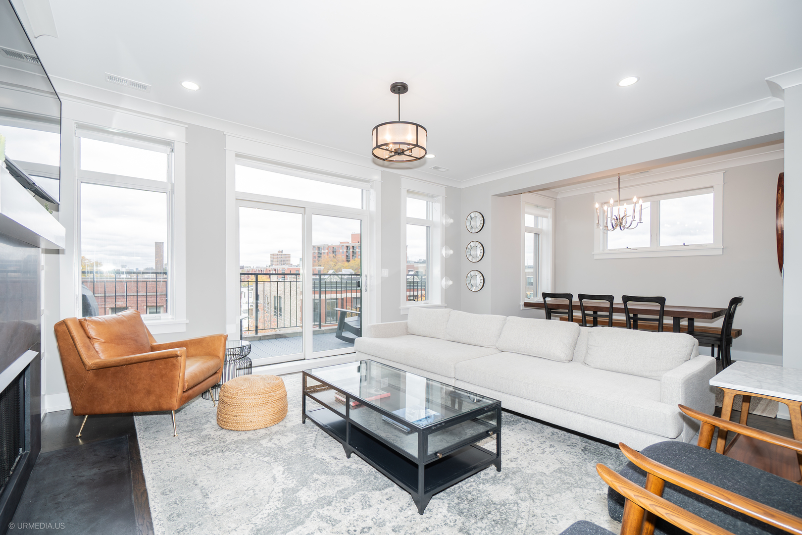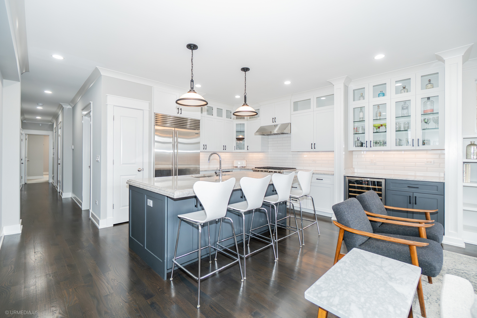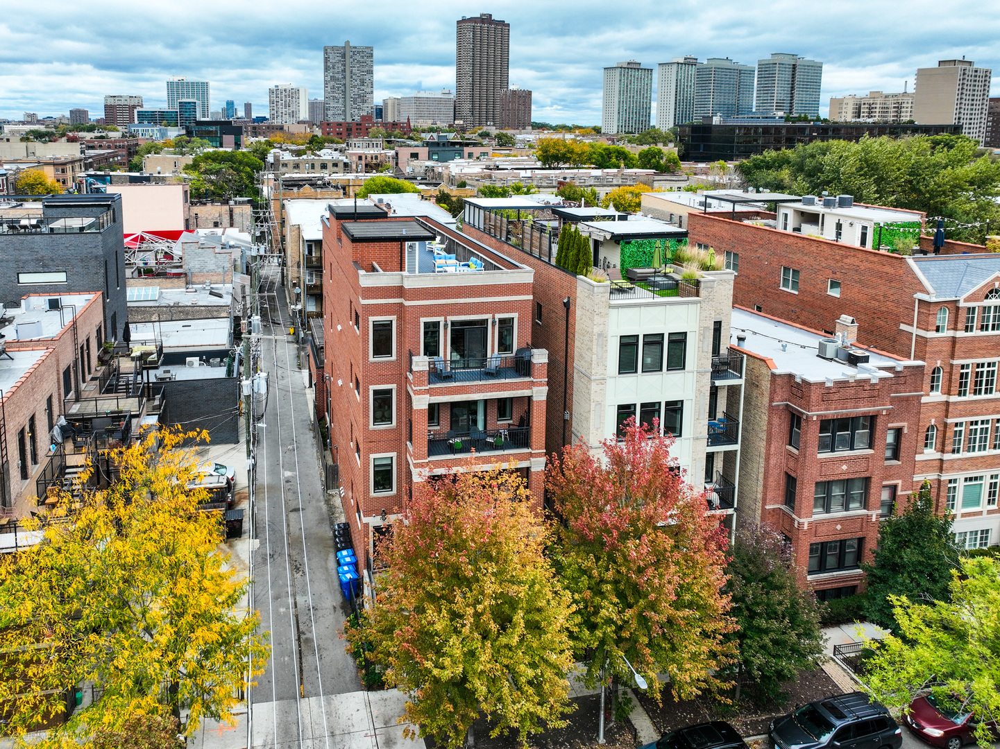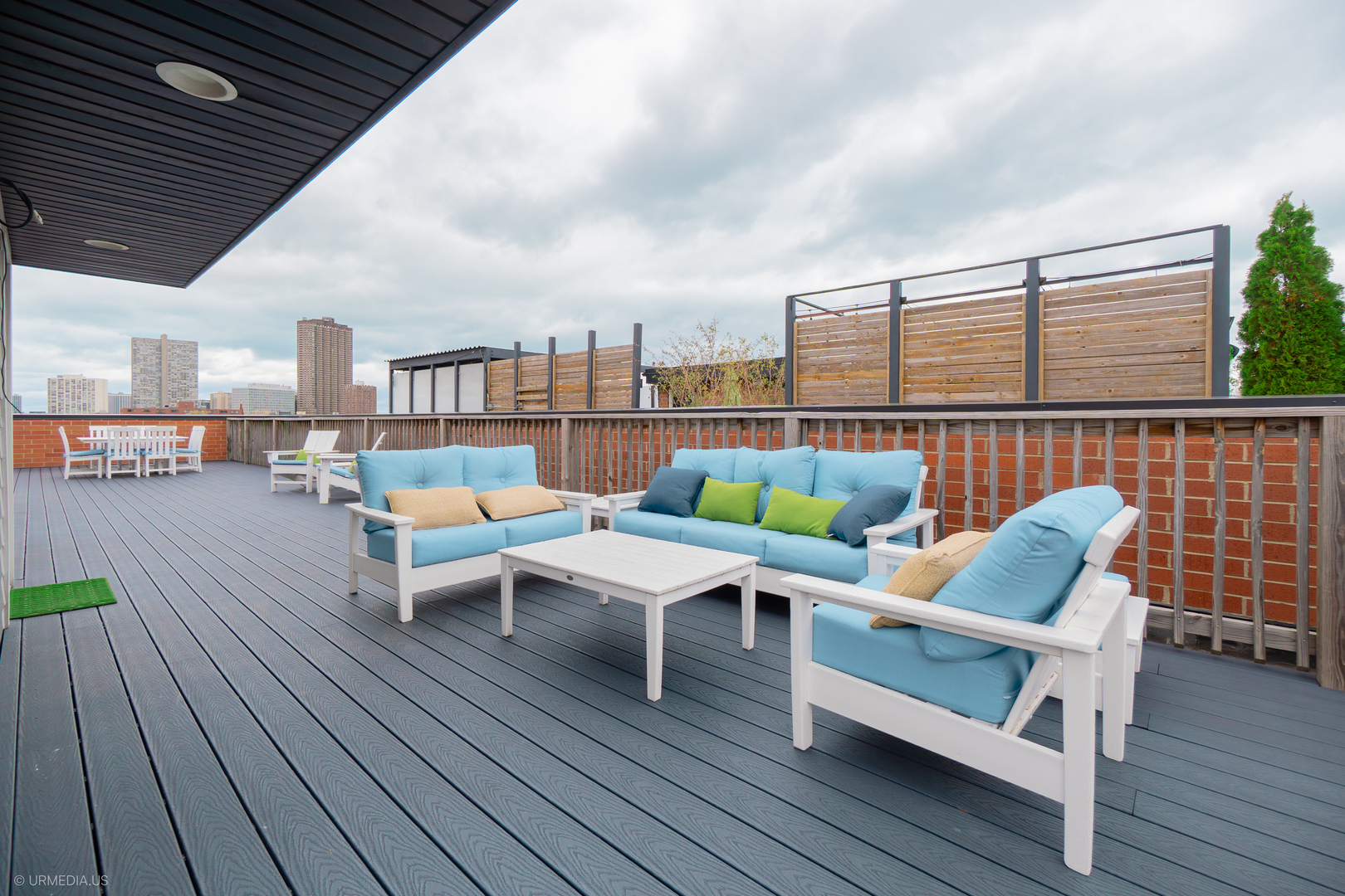 Oversized brick construction penthouse in the Nettlehorst school district. This spacious unit has wonderful light, bright floor plan with high quality finishes. Custom trim and molding, high end appliances (wolf, sub-zero, bosch, kohler), custom cabinets and custom coutertops. The bathrooms have Anne Sacks tilework and the large closets in the bedrooms are outfitted with custom shelving. Steam shower in the primary bedroom which also offers stone tops and heated floors. This Unit has 18 X 6 deck with south sunlight and a private roof top deck that is 69 X 28 with 360 degree views of the city.