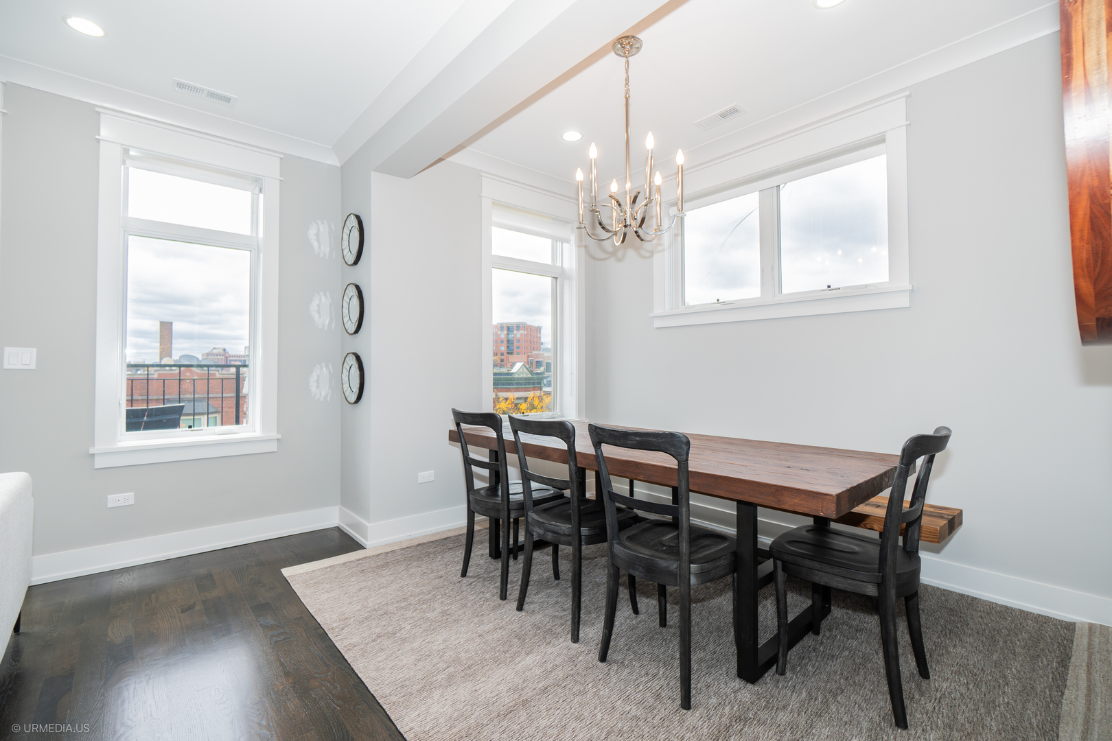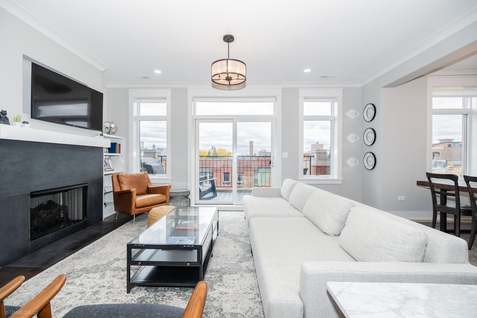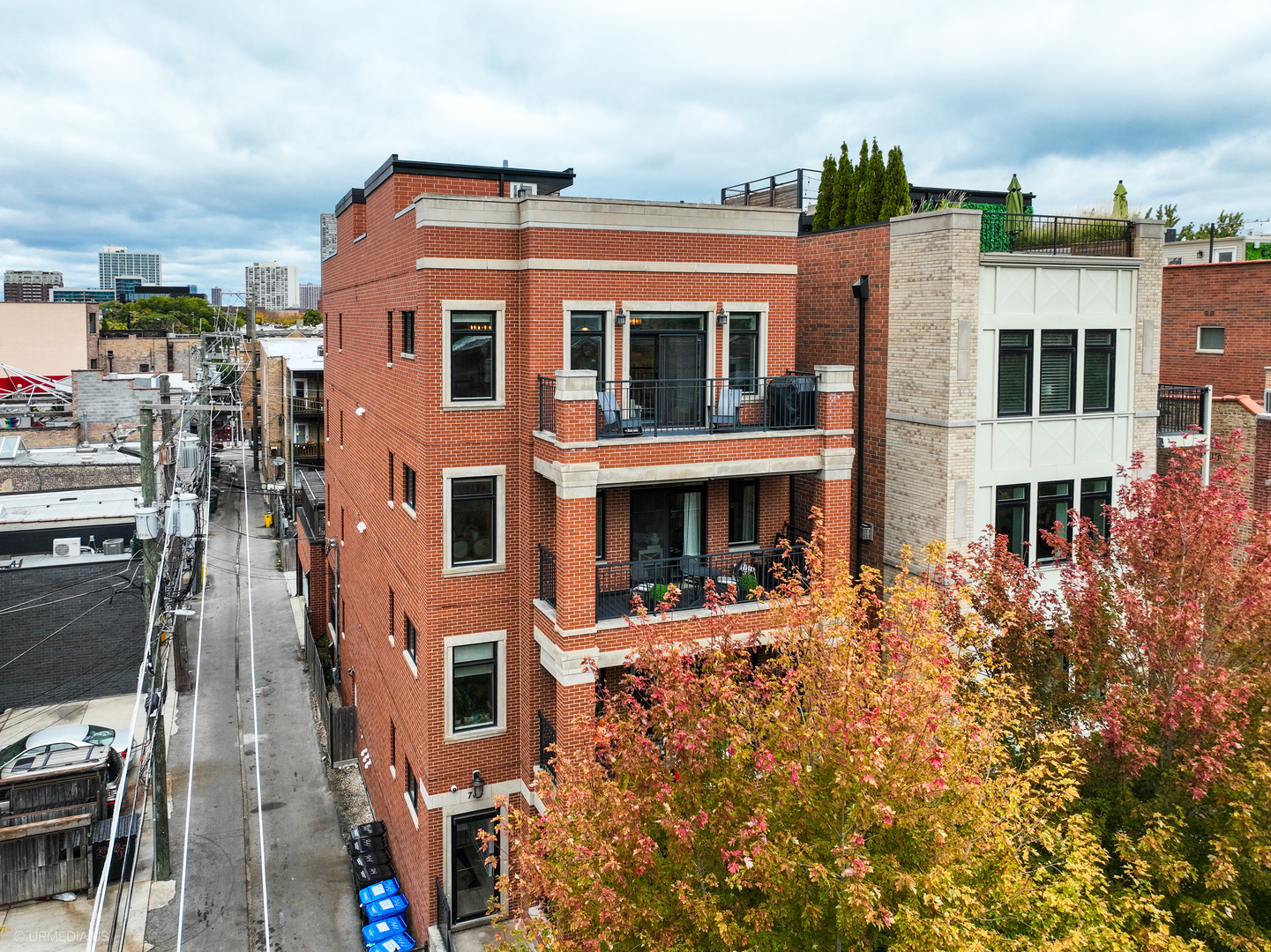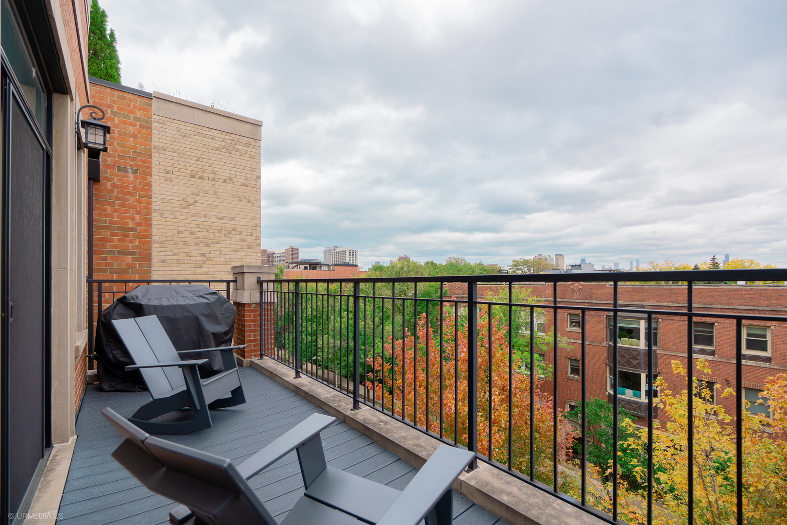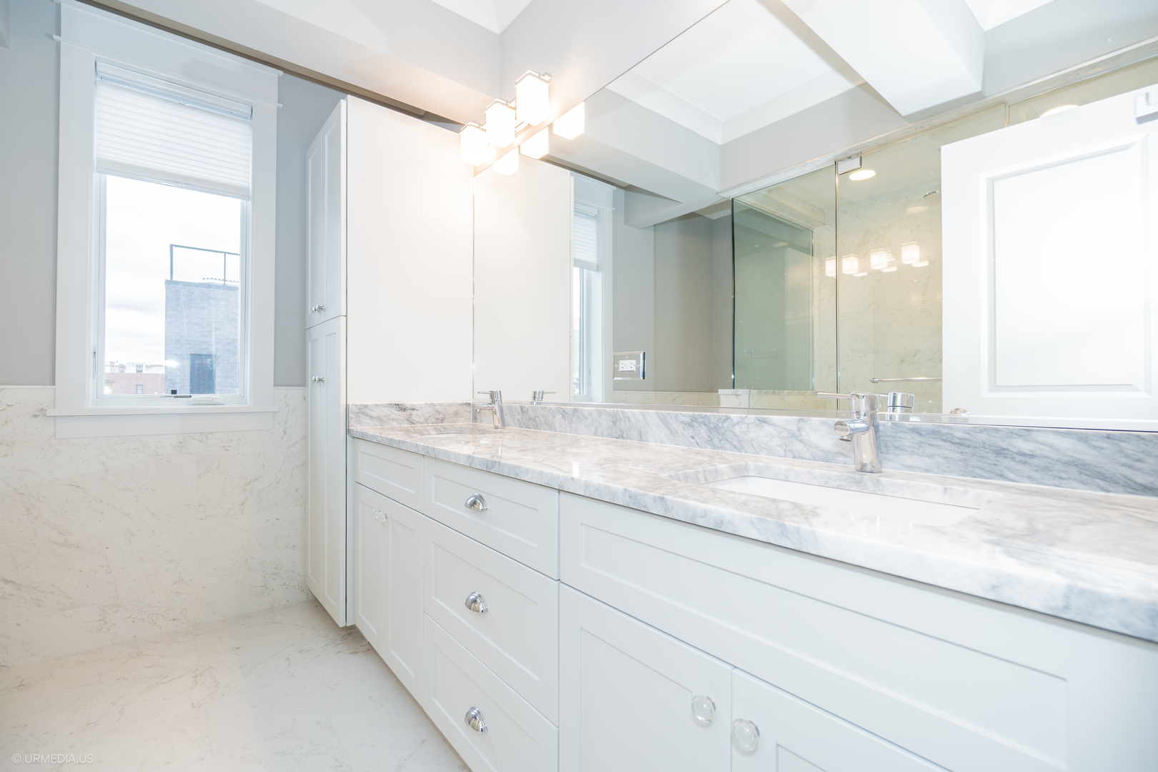 Oversized brick construction penthouse in the Nettlehorst school district. This spacious unit has wonderful light, bright floor plan with high quality finishes. Custom trim and molding, high end appliances (wolf, sub-zero, bosch, kohler), custom cabinets and custom coutertops. The bathrooms have Anne Sacks tilework and the large closets in the bedrooms are outfitted with custom shelving. Steam shower in the primary bedroom which also offers stone tops and heated floors. This Unit has 18 X 6 deck with south sunlight and a private roof top deck that is 69 X 28 with 360 degree views of the city.