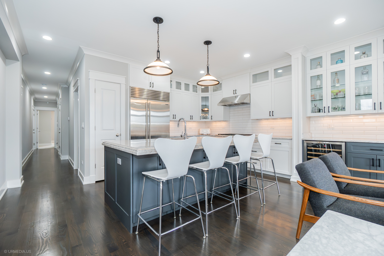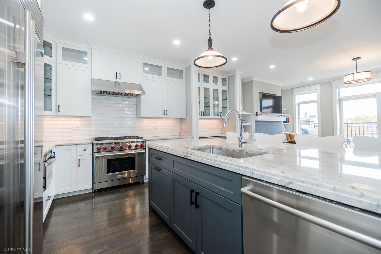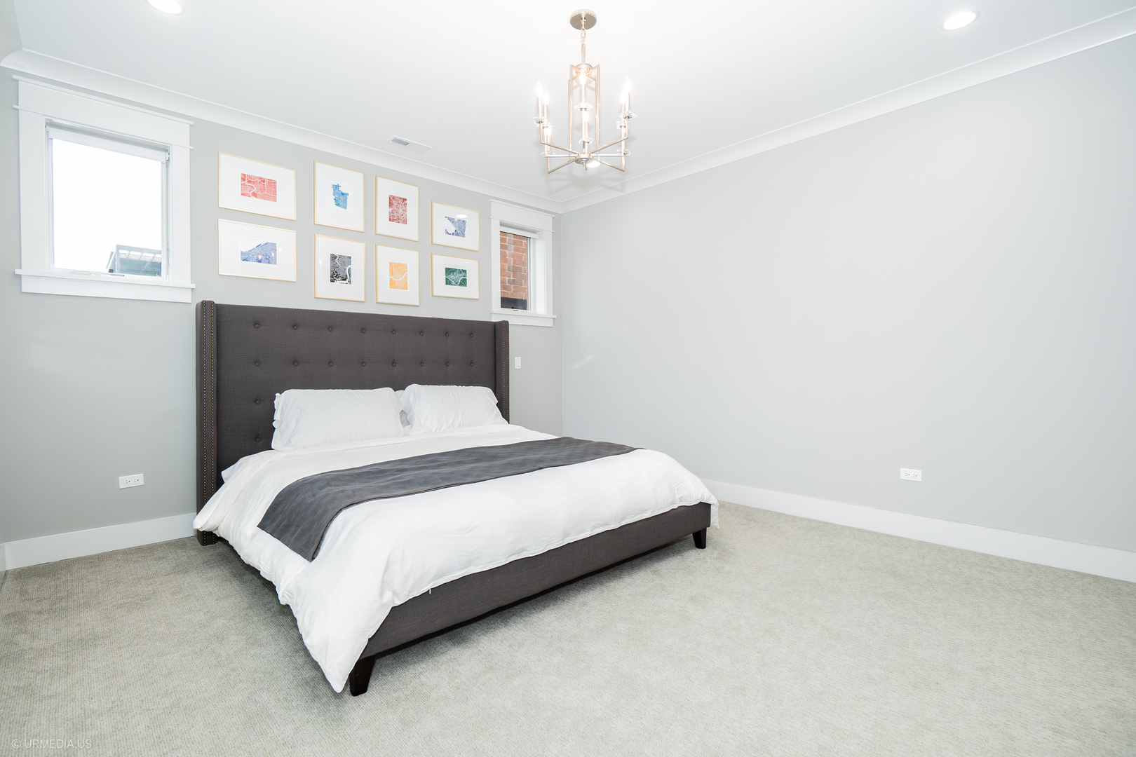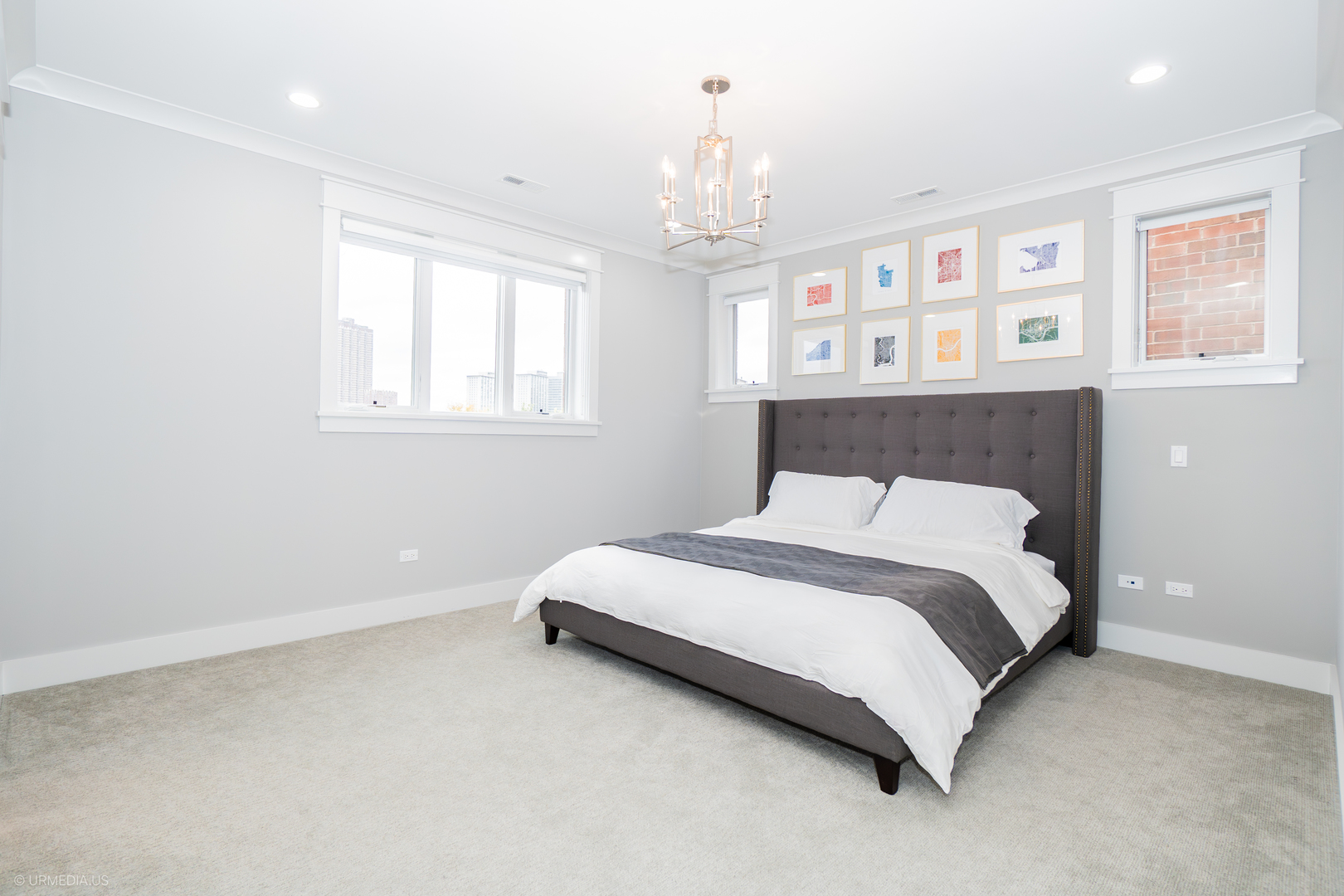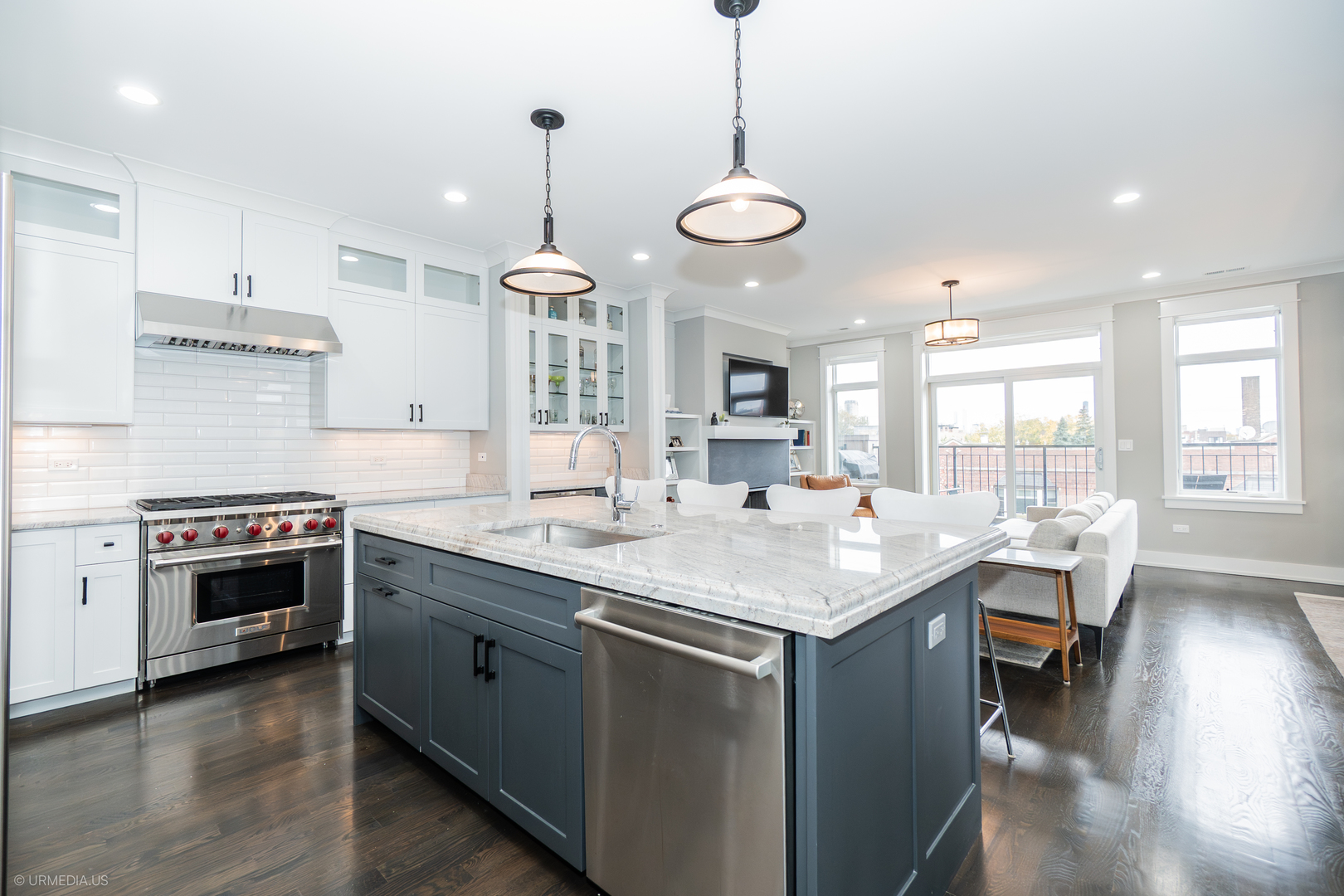 Oversized brick construction penthouse in the Nettlehorst school district. This spacious unit has wonderful light, bright floor plan with high quality finishes. Custom trim and molding, high end appliances (wolf, sub-zero, bosch, kohler), custom cabinets and custom coutertops. The bathrooms have Anne Sacks tilework and the large closets in the bedrooms are outfitted with custom shelving. Steam shower in the primary bedroom which also offers stone tops and heated floors. This Unit has 18 X 6 deck with south sunlight and a private roof top deck that is 69 X 28 with 360 degree views of the city.