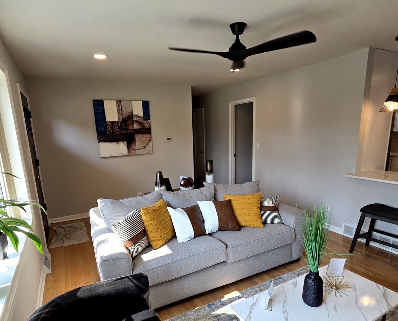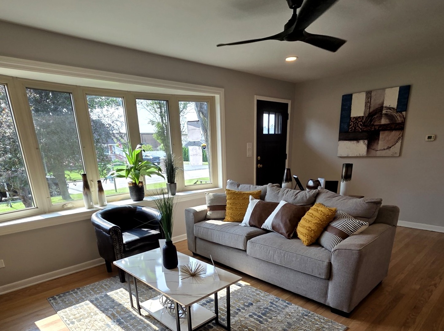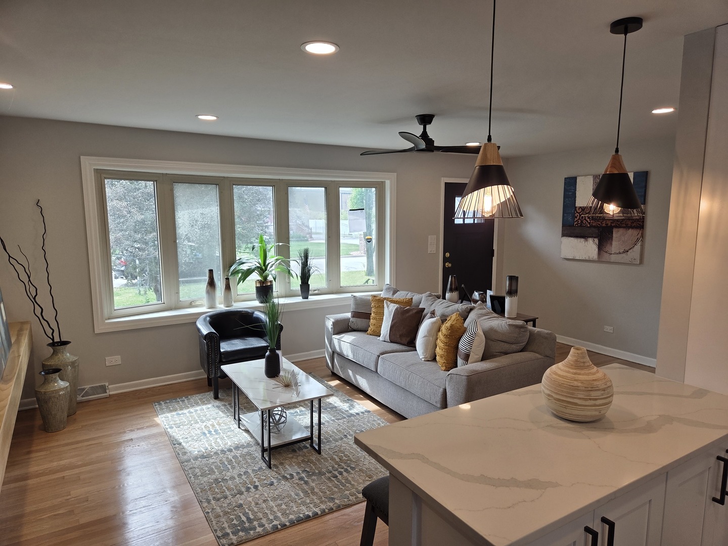 Welcome to your new home in Bridgeview! This stunning brick ranch boasts 4 spacious bedrooms and 2 modern bathrooms. This Beautifull home is located in a prime neighborhood close to everything you need. As you enter the front door, you’ll be captivated the bright living room with gorgeous hardwood floors and custom accent wall design. Just steps away is a custom-made kitchen cabinets with quartz countertops, brand new stainless steel appliances, and contemporary lighting make this a dream kitchen. Adjacent to the kitchen you will find a nice dining area overlooking a spacious yard. There are 4 generously sized bedrooms, hardwood floors and plenty of closet space. Other features include two baths that are beautifully updated and have high-end finishes. The lower level offers a modern family room, 4th bedroom/office, perfect for those nice relaxing evening and hosting large gatherings. There’s also a separate laundry room with tons of storage space. The exterior offers maintenance free features includes a two-car garage and brand new driveway, spacious yard and the roof is only 6 years old. This home is in a prime location, offering the perfect blend of comfort, style, and convenience. Welcome to your new home!