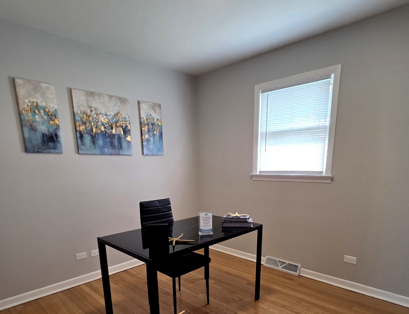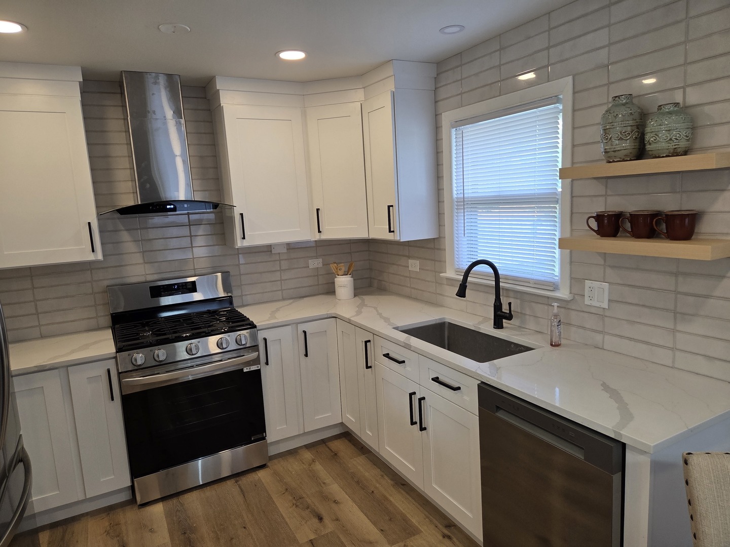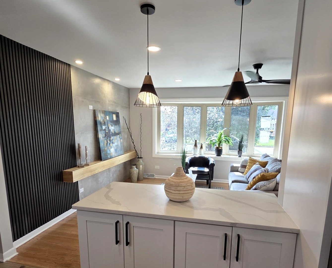 Welcome to your new home in Bridgeview! This stunning brick ranch boasts 4 spacious bedrooms and 2 modern bathrooms. This Beautifull home is located in a prime neighborhood close to everything you need. As you enter the front door, you’ll be captivated the bright living room with gorgeous hardwood floors and custom accent wall design. Just steps away is a custom-made kitchen cabinets with quartz countertops, brand new stainless steel appliances, and contemporary lighting make this a dream kitchen. Adjacent to the kitchen you will find a nice dining area overlooking a spacious yard. There are 4 generously sized bedrooms, hardwood floors and plenty of closet space. Other features include two baths that are beautifully updated and have high-end finishes. The lower level offers a modern family room, 4th bedroom/office, perfect for those nice relaxing evening and hosting large gatherings. There’s also a separate laundry room with tons of storage space. The exterior offers maintenance free features includes a two-car garage and brand new driveway, spacious yard and the roof is only 6 years old. This home is in a prime location, offering the perfect blend of comfort, style, and convenience. Welcome to your new home!