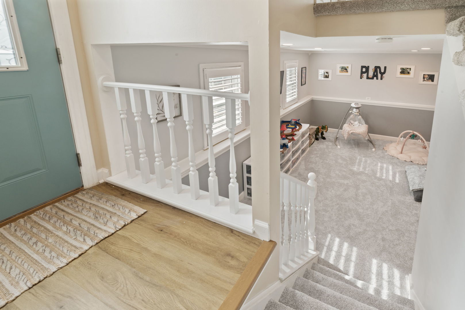 This beautifully renovated home is situated on a premium, fully fenced lot that backs to a natural open space. Perfect for the entertaining and everyday living, the open-concept main floor features elegant laminate flooring and plantation shutters, showcasing a spacious Great Room and a stunning kitchen complete with 42-inch espresso cabinets, granite countertops, stainless steel appliances, and a generously sized island with seating. Expansive views of the picturesque yard and open space and large deck are unobstructed by walls. The lower level hosts a roomy family area with new carpet (2025), wainscoting, plantation shutters and crown molding, alongside a bonus room currently utilized as an office and a lovely half bathroom, with the utility room conveniently located nearby. Upstairs, you’ll find two spacious bedrooms, including a master suite with a walk-in closet and direct access to the main updated bathroom, with fresh carpeting installed in 2024. Located in the esteemed District 25, this home is also surrounded by numerous parks. 10 minutes to Winfield Metra Station.