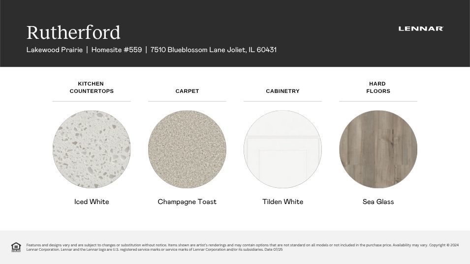 SPECIAL FINANCING OFFERS AVAILABLE!! READY FOR NOVEMBER DELIVERY!! Homesite# 0559 Welcome to the Rutherford – a beautifully crafted single-story home that perfectly blends modern design with everyday functionality. Thoughtfully laid out with three spacious bedrooms and two full bathrooms, this open-concept floor plan is designed to promote effortless flow and comfortable living. At the heart of the home, the stylish kitchen impresses with a large center island, Quartz countertops, sleek stainless steel appliances, and ample cabinetry-ideal for everything from casual weeknight meals to lively weekend gatherings. The private owner’s suite serves as a serene retreat, featuring a generous walk-in closet and a spa-inspired en-suite bath with premium fixtures and finishes for a truly relaxing experience. Two additional bedrooms are conveniently located near a shared full bathroom, making them perfect for family, guests, or a dedicated home office. Designed with both comfort and style in mind, the Rutherford includes 9-foot ceilings, luxury vinyl plank flooring, plush carpeting in bedrooms, Deluxe shower upgrades, smart-height water-saving commodes, and many more premium features that enhance modern living. Whether you’re downsizing or seeking a more streamlined lifestyle, the Rutherford is a smart and sophisticated choice for today’s homeowner. Exterior will be Driftwood color vinyl siding with Shadow Gray color brick. (pic for reference ONLY) *Photos are not this actual home* Welcome to Lakewood Prairie – a vibrant new master-planned community offering beautifully designed new homes in Joliet, Illinois. The Andare Series features low-maintenance ranch single-family homes tailored for modern living. This thoughtfully developed neighborhood includes family-friendly amenities such as multi-use trails, a tot lot, and expansive green spaces-perfect for enjoying the outdoors and fostering a connected, active community. Located in the heart of Joliet, Lakewood Prairie offers more than just a place to live-it delivers a lifestyle. Joliet is a city rich in history, culture, and recreation, with convenient access to both world-class entertainment and everyday essentials. Discover the charm of Downtown Joliet, nestled along the scenic Des Plaines River. This dynamic, walkable district is home to local restaurants, boutique shops, and renowned museums. Signature events like the Taste of Joliet and the Joliet Christmas Parade bring the community together throughout the year with celebration, music, and fun. Lakewood Prairie blends the ease of modern suburban living with the energy and accessibility of Joliet-offering the best of both worlds for families, professionals, and everyone in between.