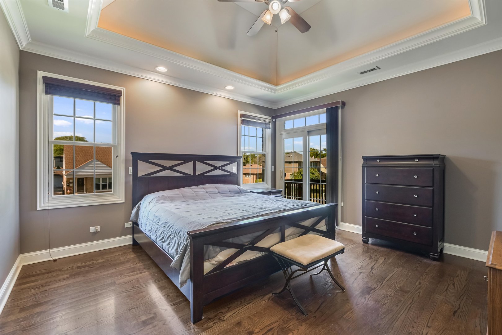 See this impressive custom-built home that masterfully blends modern luxury with timeless design. Park Ridge schools with Niles property taxes! Enter the grand foyer and open-concept main level where the living room flows effortlessly into the dining room and thru butler’s pantry with wet bar and wine cooler into spacious chef’s kitchen featuring custom cabinets, double oven, all stainless appliances, island, and granite counter tops. First floor family room, office and mud room with custom bench leading to 3 car heated garage with pull down stairs to the finished attic. Kitchen sliding door leads to stamped concrete patio, partially covered with gas line for grill, overlooking the fenced back yard, and dog run. Hardwood floors, custom/vaulted ceilings, and crown molding thru out first and second floor. Second floor master bedroom has Juliet balcony, large walk-in-closet, and luxury ensuite bath with double bowl vanity, and huge shower. Nicely-sized 3 bedrooms, jack and jill full bath with double bowl vanity, and soaking tub. Additional bath with whirlpool tub. Convenient second floor full size laundry closet with cabinets. Second floor attic with pull down stairs for additional storage. The finished basement expands the living area featuring radiant heated floors thru out. Rec room with gas fireplace, full wet bar with dishwasher and granite countertops. Exercise room, full bath, a second laundry facility with sink. Plenty of storage in the furnace room, separate storage room, under the stairs and finished crawl space. Dual zoned heating and air conditioning, lawn sprinkler system. This home is conveniently located near Jonquil Park, Oasis pool, shopping, and grocery stores.