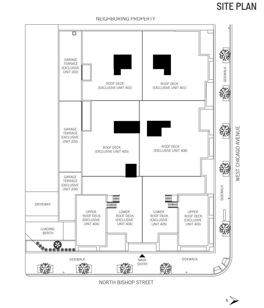 Welcome to Bishop on the Park! This is a first-look opportunity in a PREMIUM new construction condominium development featuring stunning, well laid out floorplans! All masonry, elevator building with attached, heated, EV-capable garage parking and separate storage included! Limited additional parking available for purchase. 754 Bishop is a statuesque corner building: our homes offer a variety of spacious 3bd/2ba floorplan units, each with private outdoor space. All Penthouse homes have private rooftop decks accessible via interior stairs with sweeping skyline views! Two Premier Penthouses will absolutely amaze with their nearly 20-foot ceiling heights and floor to ceiling windows. Ascend the stairs to your two-tiered private deck space! Absolutely spectacular. Primary suites with ENORMOUS room-sized walk-in closets! Luxurious ensuite with stand-alone tub, expansive double bowl vanities with plenty of storage and heated floors. Per plan, units include mudrooms laundry rooms with cabinet storage, coat closets, dry bars, more! Designer finishes have been carefully curated to elevate every detail! You’ll enjoy wide-plank wood floors, magazine-caliber luxury kitchen with Thermador appliance package including 36″ range and paneled fridge/freezer. Add the focal feature wall in living room for visual interest and warmth as an optional upgrade with gas fireplace possible. Early Buyers can impart their own design choices by selecting finishes including quartz countertops, backsplash, and paint. The location is ideal! Eckart Park has quickly become THE destination neighborhood anchored by the 9-acre park with open fields for pups and people alike! Fieldhouse with indoor pool and a gym, walking and running track. Best transportation options: walk to the Chicago BlueLine, easy access to the expressway, and at the confluence of Fulton Market, West Town, and River West neighborhoods. Chicago and Division Street provide great access to nightlife, restaurants, and a variety of retail shops while the parallel streets offer quiet streets lined with mature trees for a relaxing stroll. Delivery early-to-mid Q1 2026. Site is walkable and we are conducting on-site tours. Come select your perfect unit today!