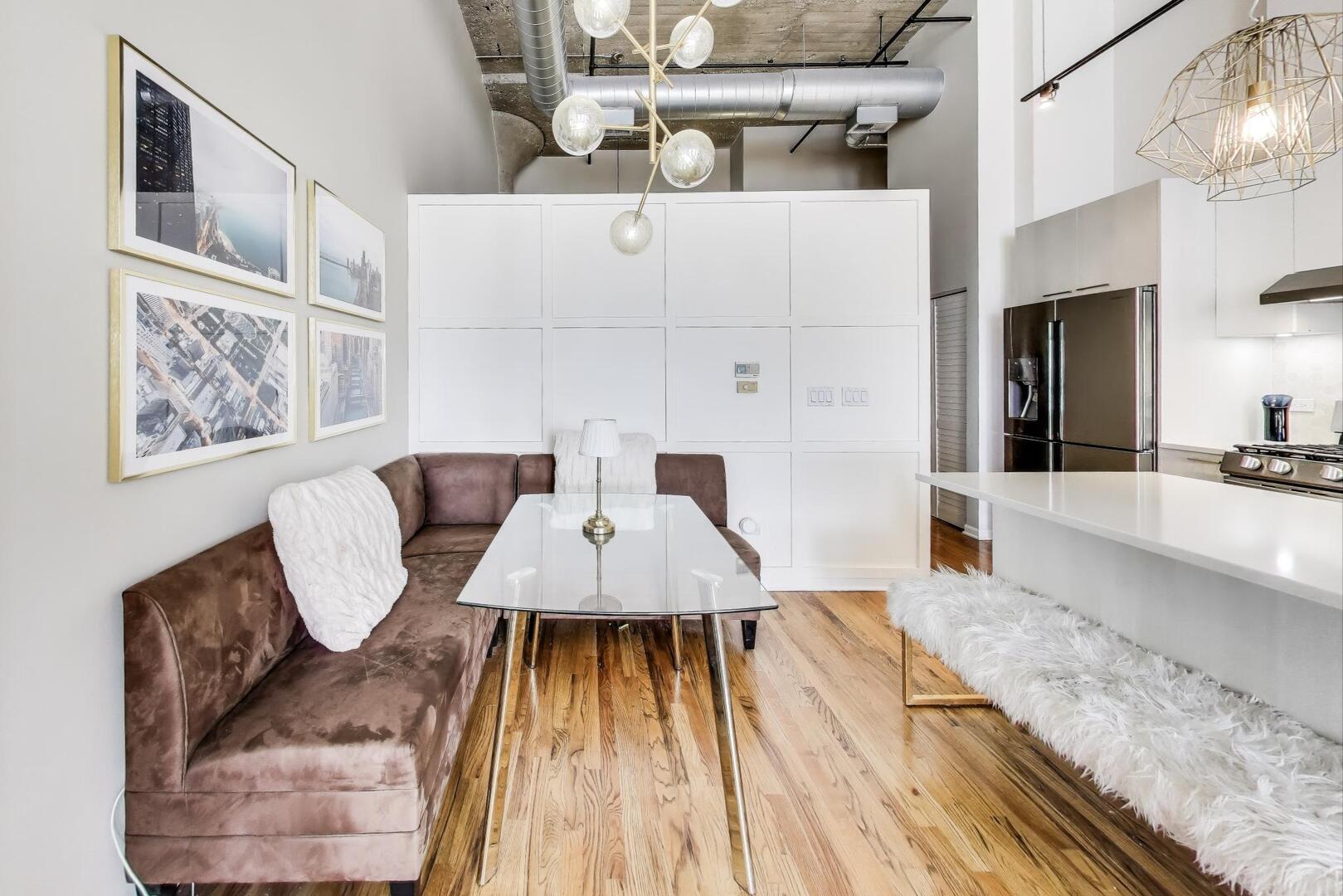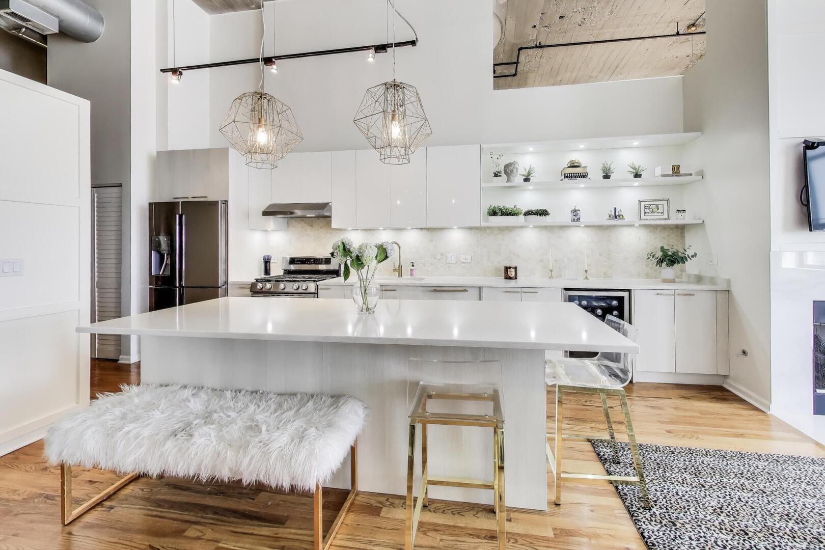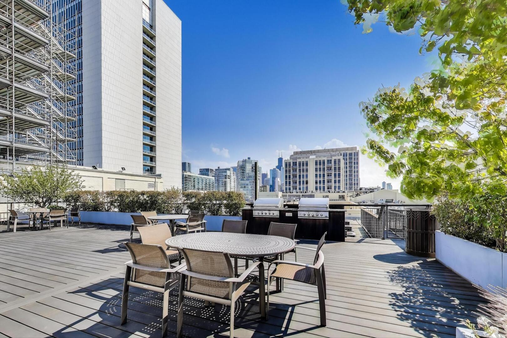 Look no further at this high end designer, tastefully modern, sun-filled loft style residence. The open floor plan showcases a fully renovated chefs kitchen with custom Marfa cabinetry, sleek quartz countertops, stainless steel appliances, massive island and wet bar which makes entertaining effortless. Unit boasts hardwood floors throughout, 16 foot ceilings, gas fireplace in living room which steps out to private west facing Balcony overlooking Chicago River with City views to the West, South and North. The fully renovated Primary Suite with a professionally organized Walk through/in closet leads to elegant ensuite marble walk in spa shower, floating double vanity with custom Marfa cabinet and tasteful quartz countertops. Separate/private built in dressing area/make up vanity for added luxury. The building, which is conveniently located in the hot River North area offers huge 2 tiered Common Roofdecks with access to gas grills, seating areas, chase lounges, not to mention the Panoramic City views. Workout facility located on the second level. A pleasure to show.