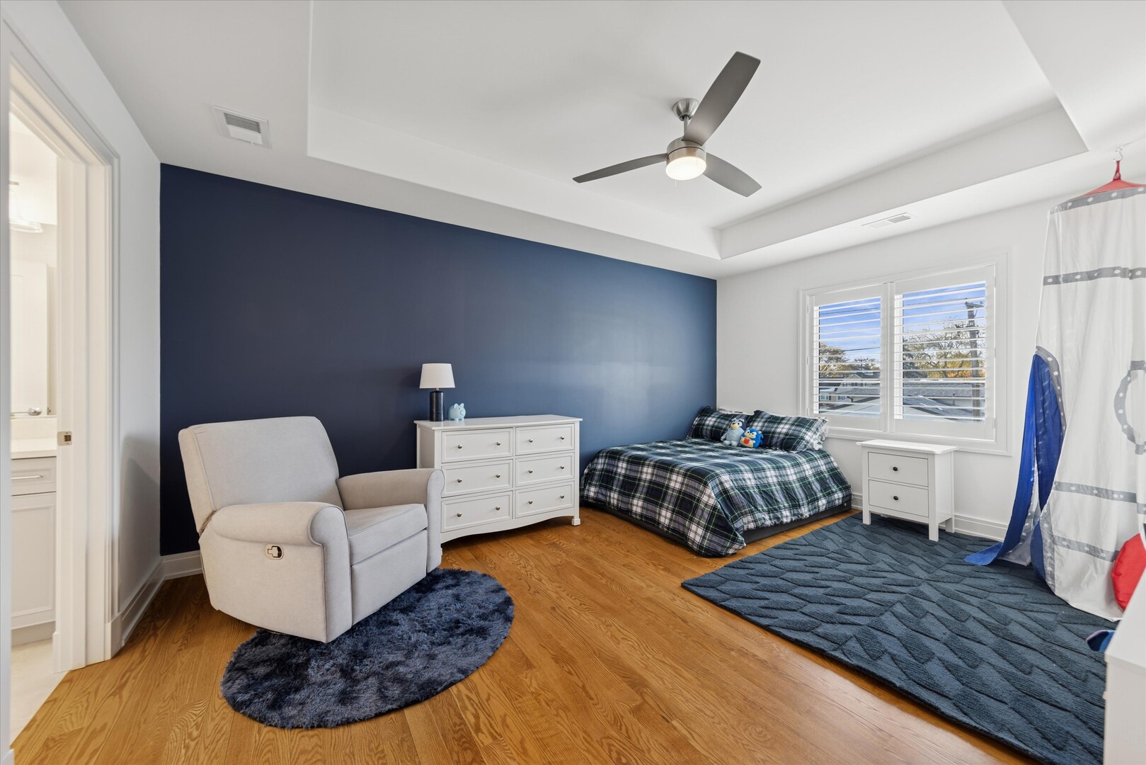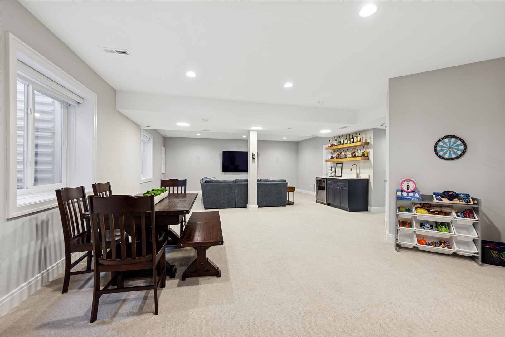 Welcome home to this beautifully crafted two year old new construction residence in the highly sought-after Lincoln School neighborhood-a rare find that’s truly move-in ready. Built by a well respected local builder this home offers modern comfort paired with timeless style. Step inside to an inviting open-concept layout complemented by additional defined spaces, including a formal dining room, living room, and a main-floor office. Enjoy hardwood floors that span two levels, custom millwork throughout, and new plantation shutters and blinds. At the heart of the home is the gourmet kitchen, featuring Wolf stainless steel appliances, quartz countertops, a spacious island, and a butler’s pantry with a wine fridge-perfect for entertaining and everyday living. The kitchen flows seamlessly into the bright family room, complete with a cozy fireplace flanked with custom built-ins for storage and elegant coffered ceiling. The main-floor office can also function as a fifth bedroom or playroom, providing flexible living options. Upstairs, the luxurious primary suite offers a serene sitting area, dual walk-in closets, and a spa-like bathroom with a soaking tub and an oversized shower. Two additional bedrooms with walk-in closets share a Jack-and-Jill bathroom with separate vanities for added convenience. A fourth bedroom serves as a private retreat with its own large closet and en-suite bath. The finished basement extends the living space with a spacious recreation room and a custom bar designed for effortless hosting. A large additional room can serve as a fitness studio or guest suite-complete with a full bathroom. Outside, enjoy a private, fenced yard with a new low-maintenance patio. This home location is a gem providing easy walking access to Lincoln Elementary, Bryan Middle School, York HS, Prairie Path, and Spring road shops and dining.