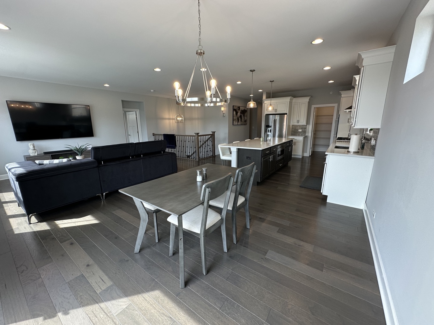 Stunning, Amazing, Beautiful 3-year-old Ranch home where every detail is designed to make daily living both attractive and effortless. Step inside and experience the open-concept layout with hardwood floors throughout, and a bedroom/office right off the main entrance with French doors and a walk-in closet for multiple uses. Perfect for an In-law, live in situation with the second bedroom in a private hallway with a 2nd full bathroom. Your gourmet kitchen features quartz countertops, pendant lights, ceramic backsplash and upgraded Kitchen Aid Appliances . . . They include a built-in double oven with cobalt lining that’s never been used, cool microwave in the island, High end Refrigerator, dishwasher, professional chef vent above the stove, and a walk-in pantry, perfect for organized living. Your own “Private Island” seats 4 very comfortably with high-end chairs and an enormous amount of space. The master suite is a true retreat with 12-foot tray ceilings, recessed lighting, a spa-inspired ensuite with walk-in shower, private toilet, double linen closet, and spacious walk-in closet. Guests will feel at home with recessed lighting, walk-in or double closets, and elegant 4-panel doors. The hall bath includes a full tub and linen closet for added convenience. Off the garage, you’ll find a welcoming drop zone of “Cubbies” with bench and hooks for coats and shoes, plus a laundry room with Whirlpool appliances, cabinets, sink and even desk space. The garage itself shines with high end durable epoxy flooring. Open access to your full unfinished basement with roughed-in plumbing and ground-level windows that gives you endless possibilities for a theater room, fitness space, second family room, office and a 3rd bathroom boasting with over 1900 SQ Ft of open space with 10 foot ceilings. Outside, enjoy evenings on the large deck overlooking the yard, perfect for gatherings or quiet moments. With 200 AMP service, thoughtful finishes, and room to grow, this home invites you to picture your next chapter here-stylish, comfortable, and ready for you to move right in. Rare Ranch . . . Won’t last long~