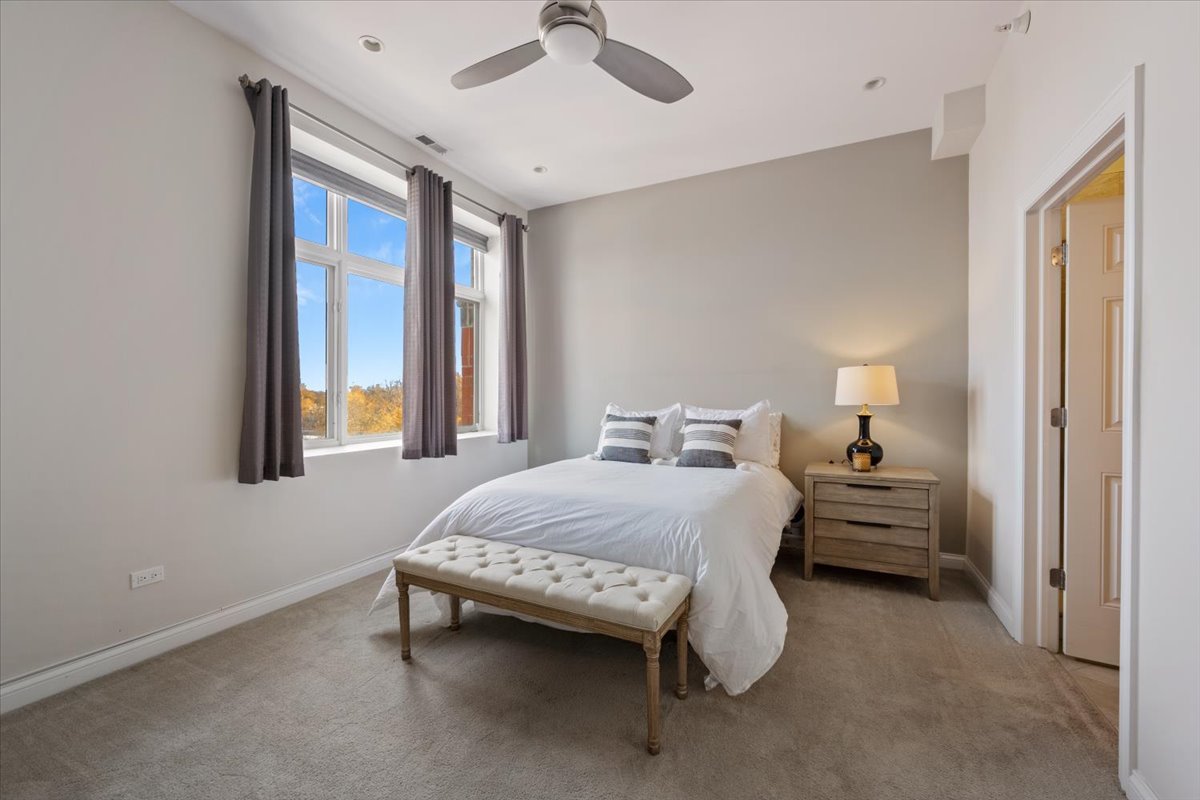 Experience elevated top-floor living in this bright and airy corner 2 bed, 2 bath home featuring soaring ceiling heights, dramatic windows, and sweeping city views from your primary suite. Designed for comfort and easy living, this spacious residence offers an impressive primary suite with a generous walk-in closet and a spa-like ensuite with dual-sized countertops, a separate shower, and a soaking tub. The second bedroom functions beautifully as a guest room, office, or den. Additional highlights include a true laundry room, an oversized eat-in kitchen with abundant cabinetry, and a large open-concept living and dining area perfect for entertaining. Enjoy grilling and fresh air from your balcony. Located in an elevator building with attached garage parking and unbeatable walkability to everything the neighborhood offers.