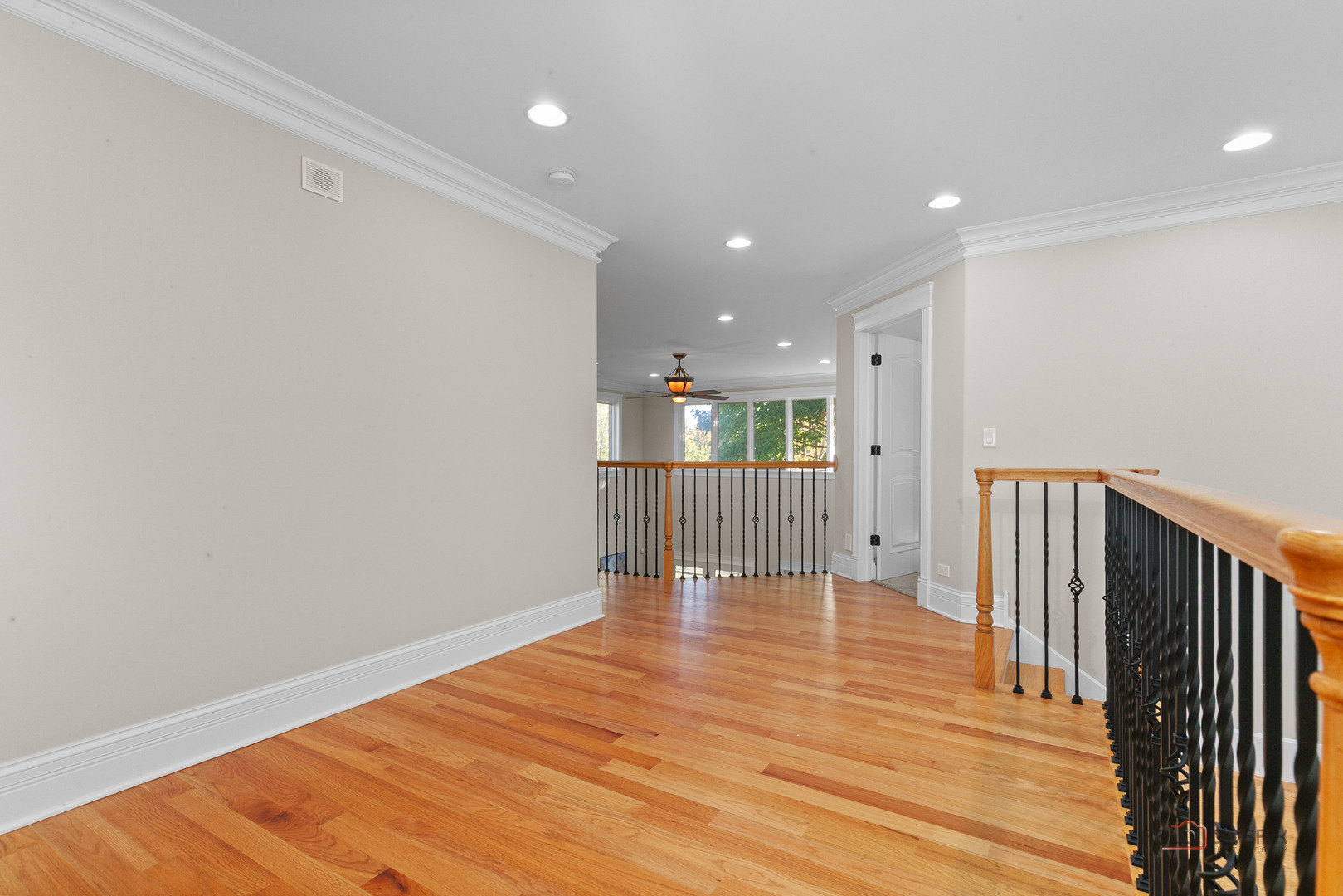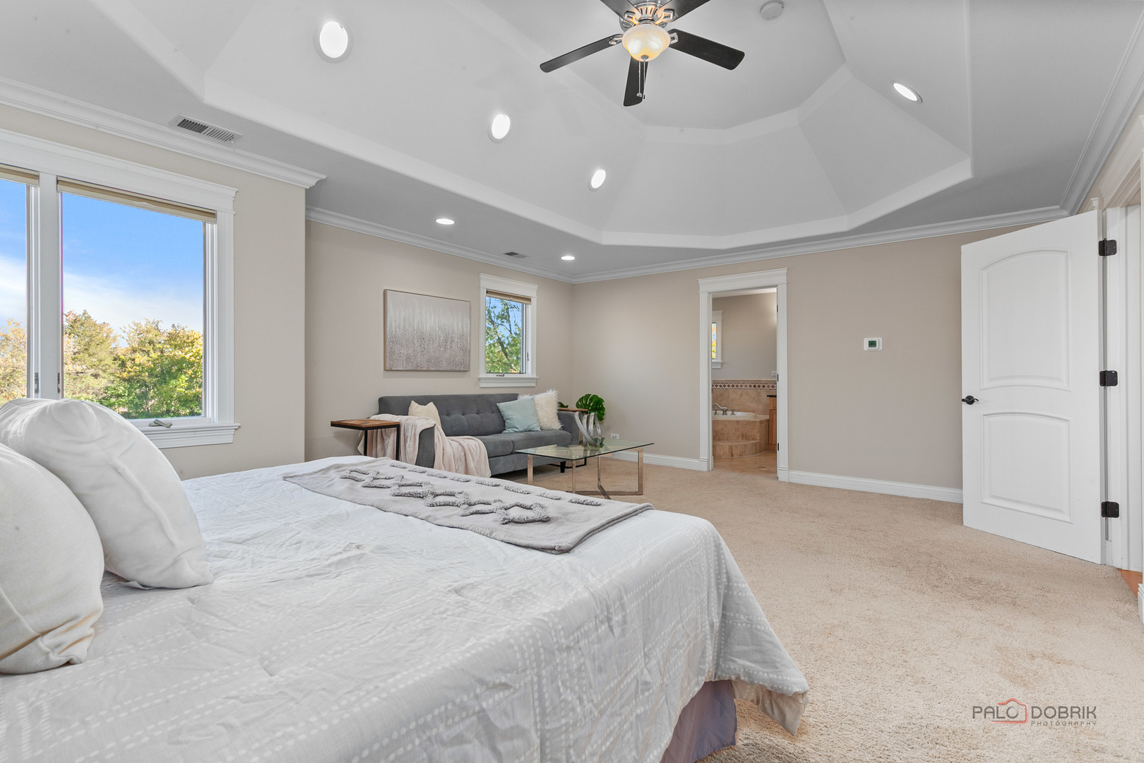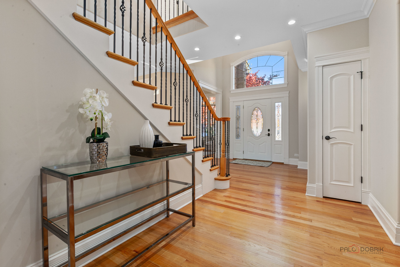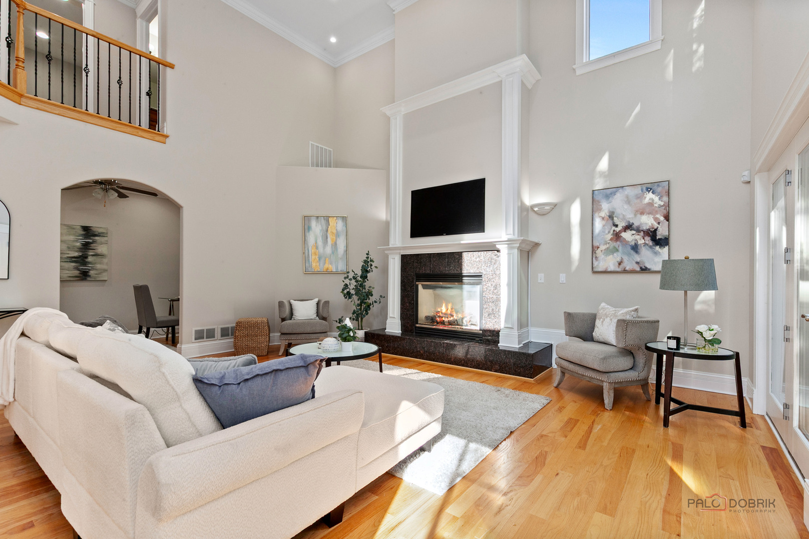 Welcome to this stunning 6-bedroom, 5.1-bath home tucked away in a quiet cul-de-sac, offering an abundance of space and modern comforts. From the moment you step through the front door, you are welcomed by a grand two-story foyer that makes a striking first impression and sets the stage for the home’s spacious and thoughtfully designed interior. The main level is anchored by a bright and airy living room, ideal for gathering with family or entertaining guests. Adjacent to the living room is the formal dining area, providing a sophisticated space for hosting dinner parties and holiday celebrations. The kitchen is a true chef’s delight, equipped with a large center island, pantry closet, sleek stainless-steel appliances, and extensive cabinetry to accommodate all of your cooking and storage needs. An inviting eating area off the kitchen features direct access to the deck, making it easy to transition from indoor dining to outdoor entertaining. The two-story family room is a highlight of the home, offering soaring ceilings, an abundance of natural light, and a cozy fireplace. With direct access to the deck, this space is perfect for both relaxed evenings by the fire and larger gatherings with family and friends. The first-floor primary suite is designed as a private retreat, complete with a spacious walk-in closet and a luxurious ensuite bath. The spa-like bathroom features a double vanity, whirlpool tub, and walk-in shower, providing the perfect space to unwind at the end of the day. A well-appointed laundry room and a convenient half bath complete the main level. Upstairs, you will find five additional bedrooms, each offering ample closet space and natural light. Two of the bedrooms feature their own ensuite bathrooms, offering privacy and comfort for family or guests. A full hallway bath serves the remaining bedrooms, ensuring functionality and convenience for a large household. The fully finished walk-out lower level adds even more versatility to the home. It features a dedicated media room for movie nights, a spacious recreational area with a fireplace, a custom wet bar perfect for entertaining, and a full bathroom. This level offers endless opportunities for gatherings, relaxation, and recreation. The backyard is a true retreat, featuring a spacious deck and a brick paver patio, ideal for dining, entertaining, or simply enjoying the outdoors. Located just minutes from shopping centers, dining, and parks, this home offers the perfect balance of privacy and convenience.
