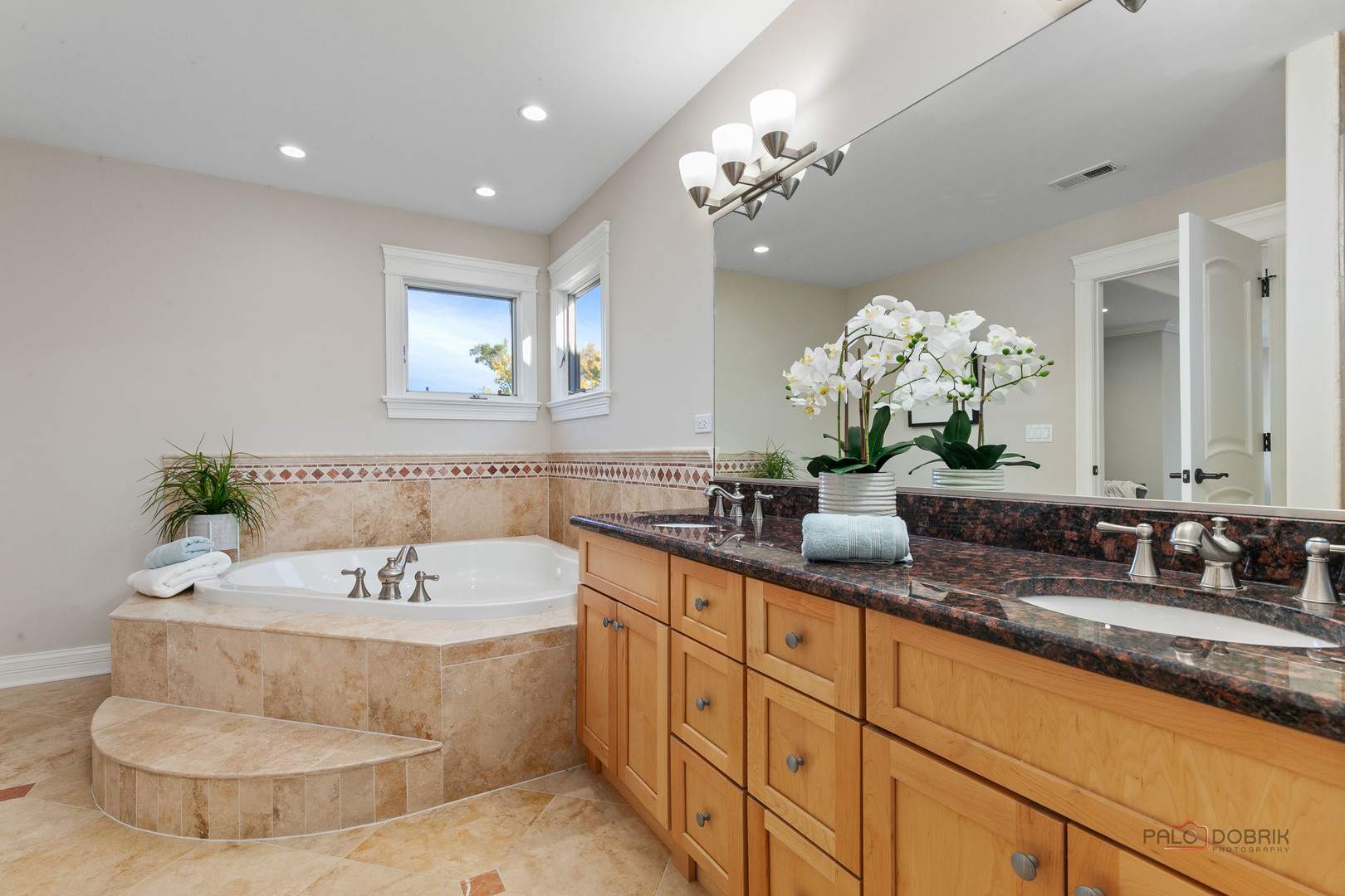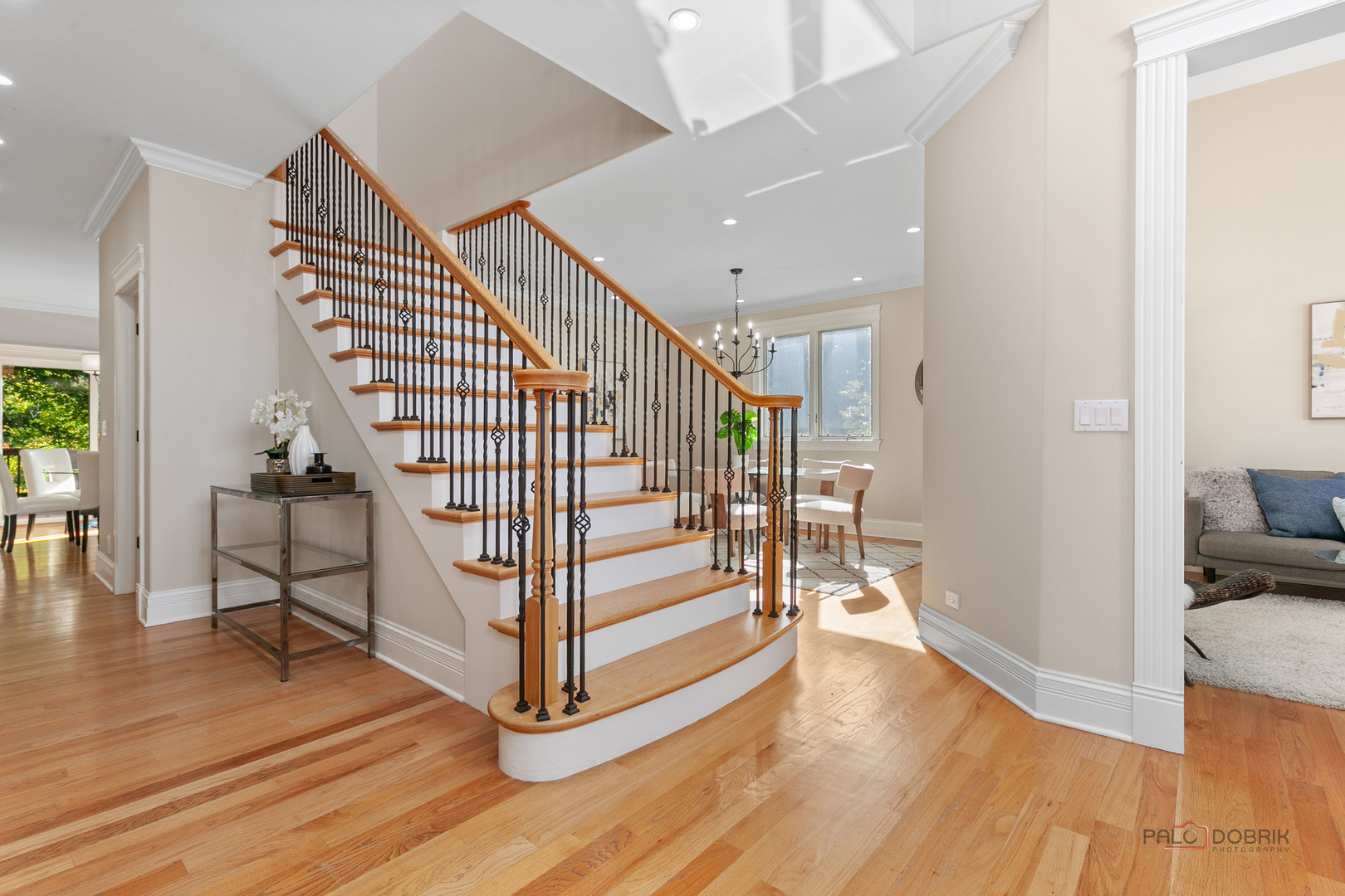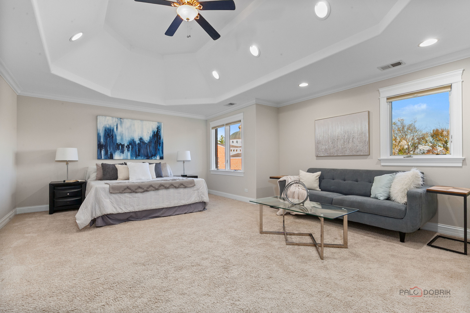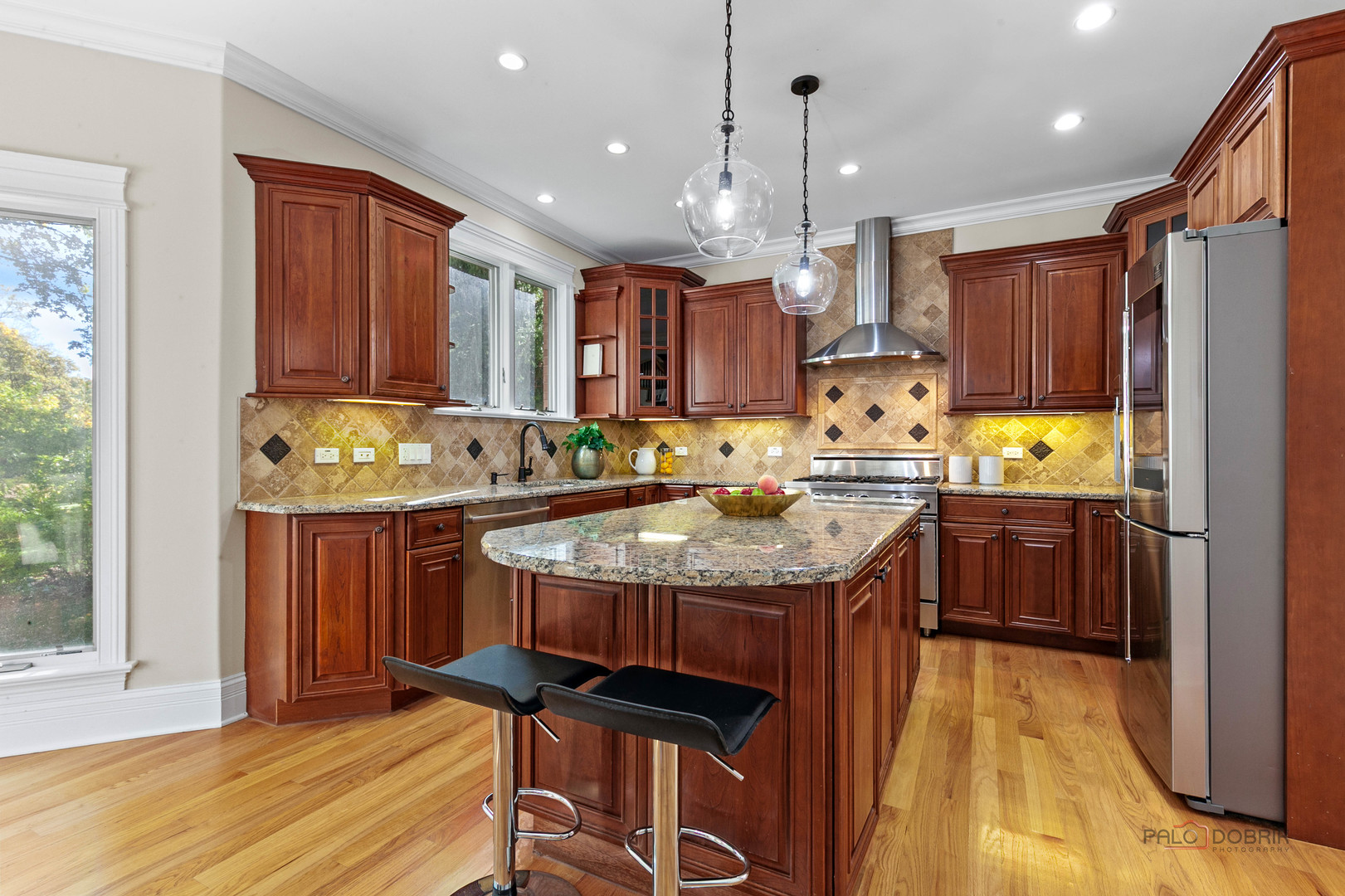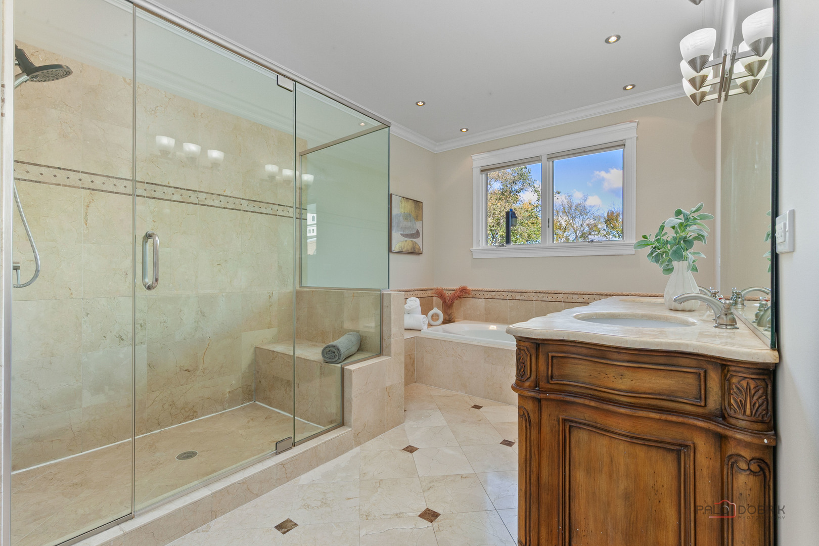 Welcome to this stunning 6-bedroom, 5.1-bath home tucked away in a quiet cul-de-sac, offering an abundance of space and modern comforts. From the moment you step through the front door, you are welcomed by a grand two-story foyer that makes a striking first impression and sets the stage for the home’s spacious and thoughtfully designed interior. The main level is anchored by a bright and airy living room, ideal for gathering with family or entertaining guests. Adjacent to the living room is the formal dining area, providing a sophisticated space for hosting dinner parties and holiday celebrations. The kitchen is a true chef’s delight, equipped with a large center island, pantry closet, sleek stainless-steel appliances, and extensive cabinetry to accommodate all of your cooking and storage needs. An inviting eating area off the kitchen features direct access to the deck, making it easy to transition from indoor dining to outdoor entertaining. The two-story family room is a highlight of the home, offering soaring ceilings, an abundance of natural light, and a cozy fireplace. With direct access to the deck, this space is perfect for both relaxed evenings by the fire and larger gatherings with family and friends. The first-floor primary suite is designed as a private retreat, complete with a spacious walk-in closet and a luxurious ensuite bath. The spa-like bathroom features a double vanity, whirlpool tub, and walk-in shower, providing the perfect space to unwind at the end of the day. A well-appointed laundry room and a convenient half bath complete the main level. Upstairs, you will find five additional bedrooms, each offering ample closet space and natural light. Two of the bedrooms feature their own ensuite bathrooms, offering privacy and comfort for family or guests. A full hallway bath serves the remaining bedrooms, ensuring functionality and convenience for a large household. The fully finished walk-out lower level adds even more versatility to the home. It features a dedicated media room for movie nights, a spacious recreational area with a fireplace, a custom wet bar perfect for entertaining, and a full bathroom. This level offers endless opportunities for gatherings, relaxation, and recreation. The backyard is a true retreat, featuring a spacious deck and a brick paver patio, ideal for dining, entertaining, or simply enjoying the outdoors. Located just minutes from shopping centers, dining, and parks, this home offers the perfect balance of privacy and convenience.