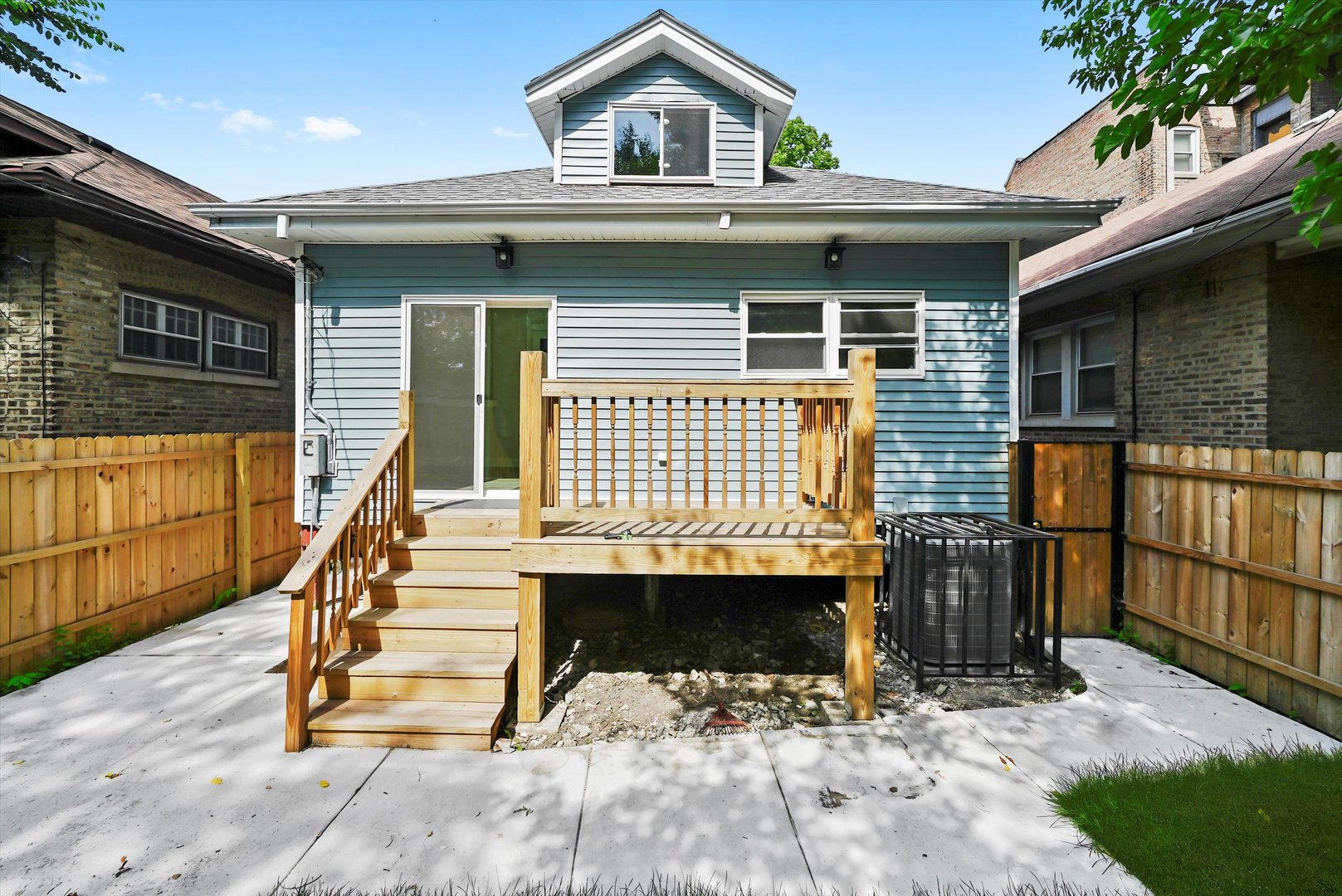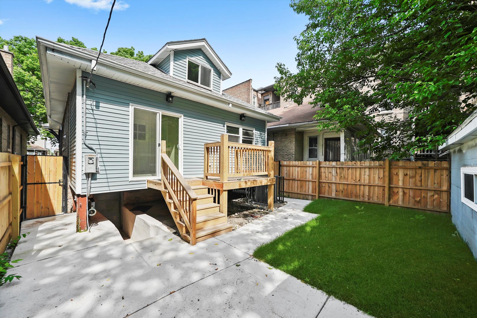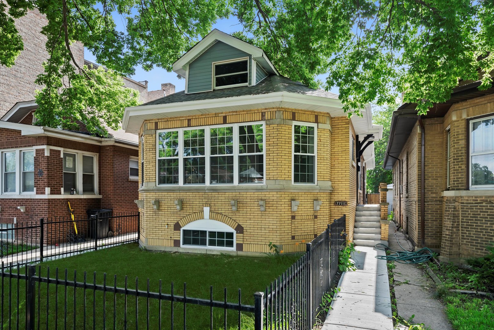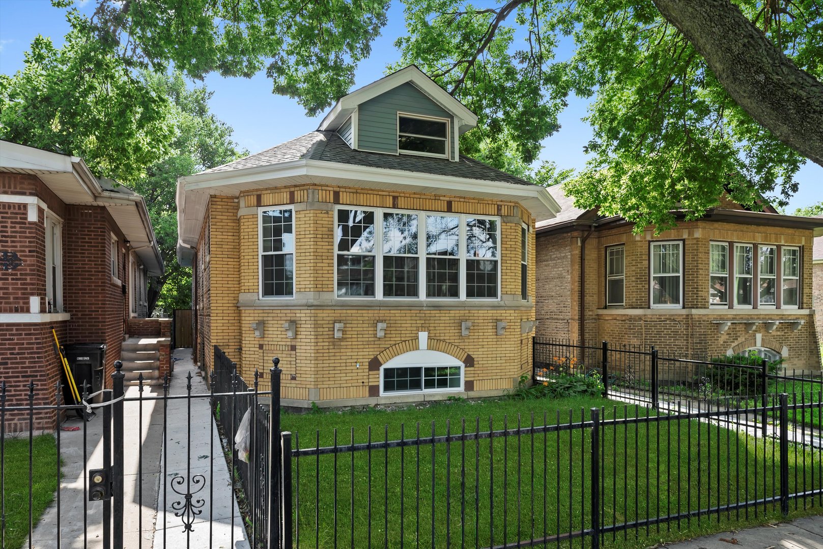 Beautiful brick bungalow completely remodeled. All new windows plumbing, electricity, kitchen cabinets with quartz countertops, hardwood floors, central heater and central air, side walks, all new wooden fence, and siding in the back of the house. Basement finished with extra rooms all laminated and a walk-in shower, wooden deck.