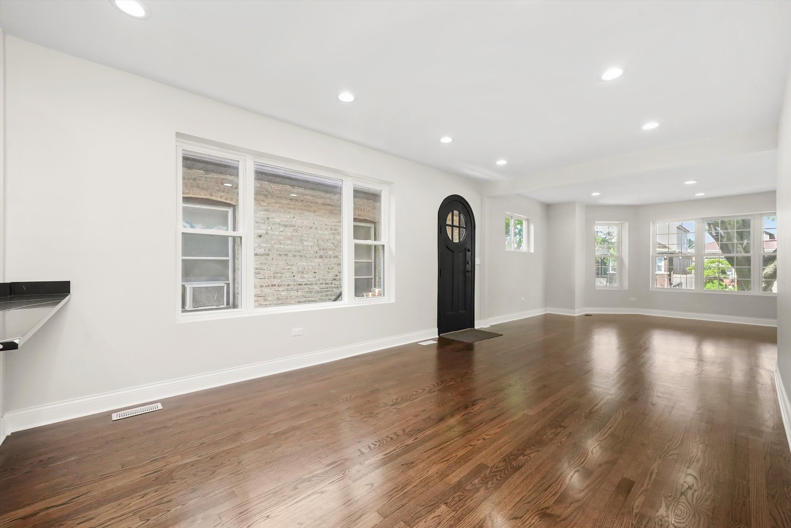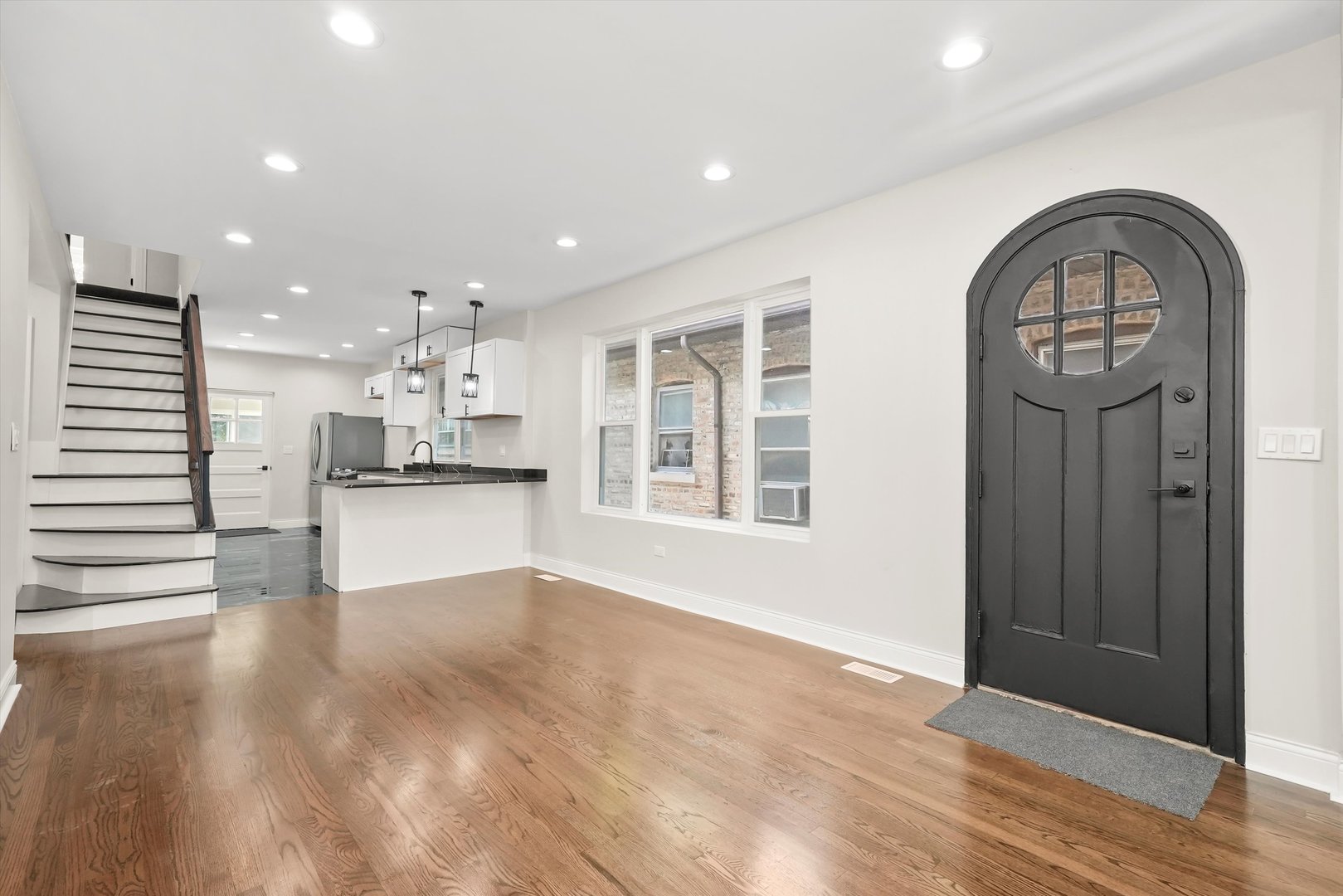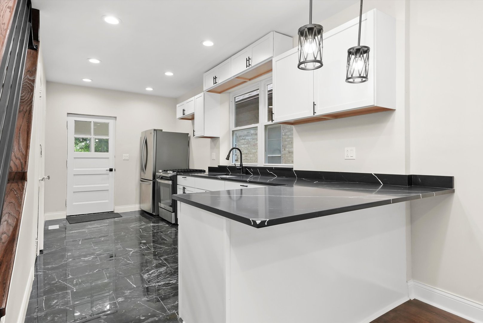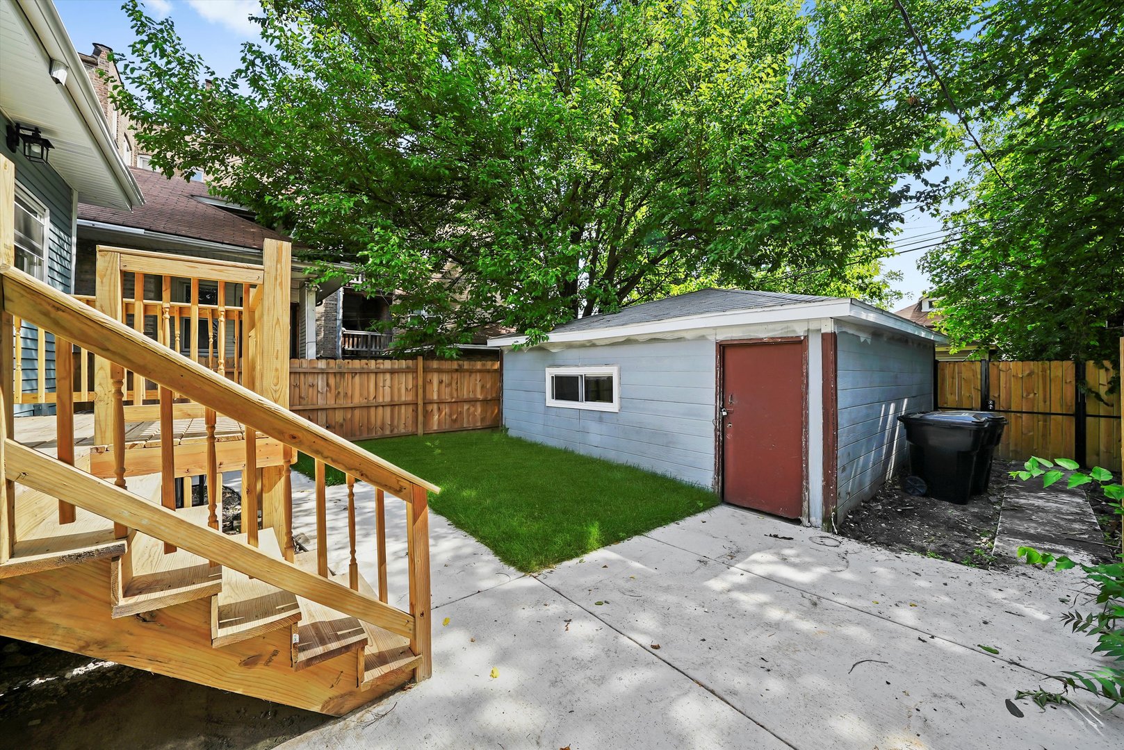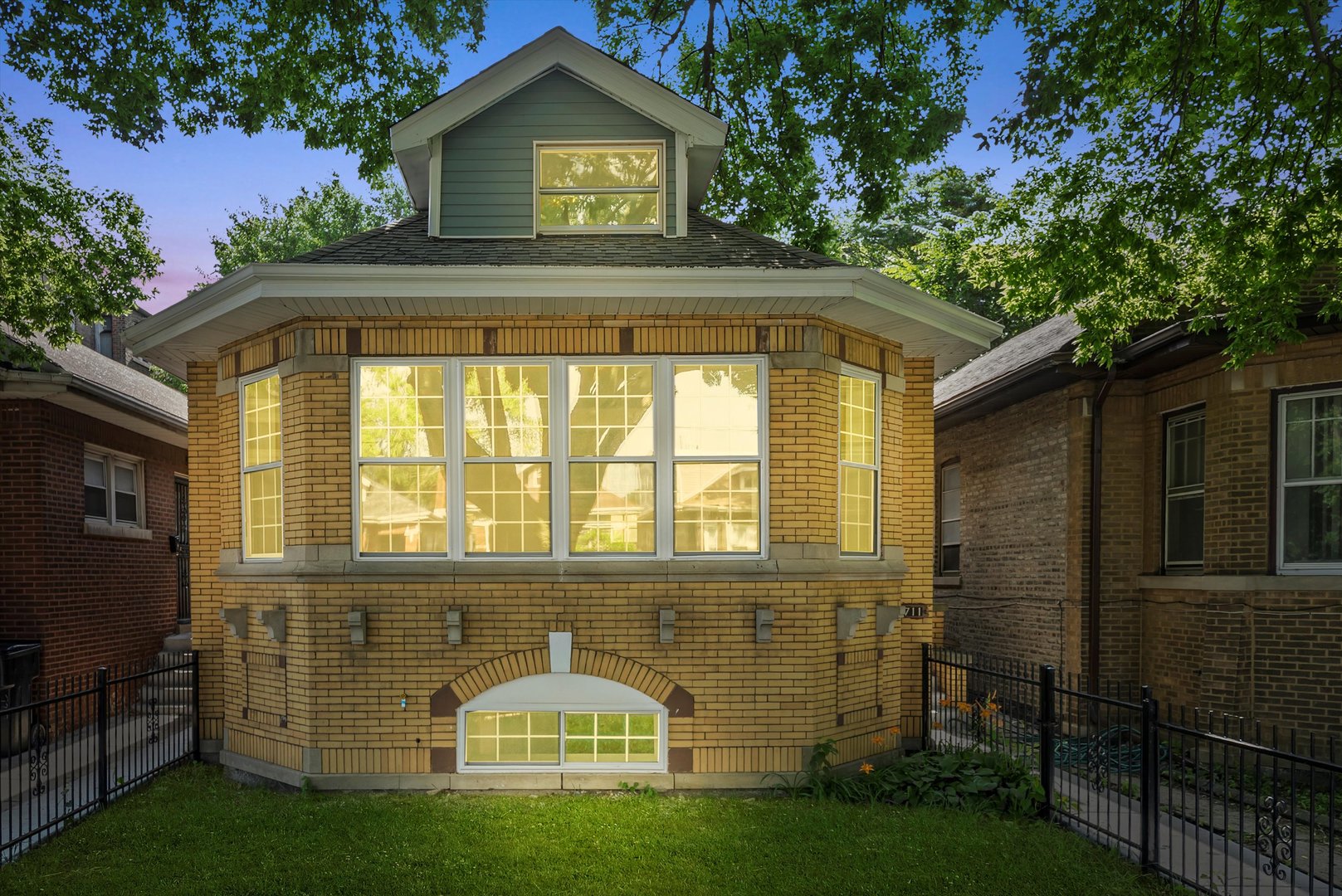 Beautiful brick bungalow completely remodeled. All new windows plumbing, electricity, kitchen cabinets with quartz countertops, hardwood floors, central heater and central air, side walks, all new wooden fence, and siding in the back of the house. Basement finished with extra rooms all laminated and a walk-in shower, wooden deck.