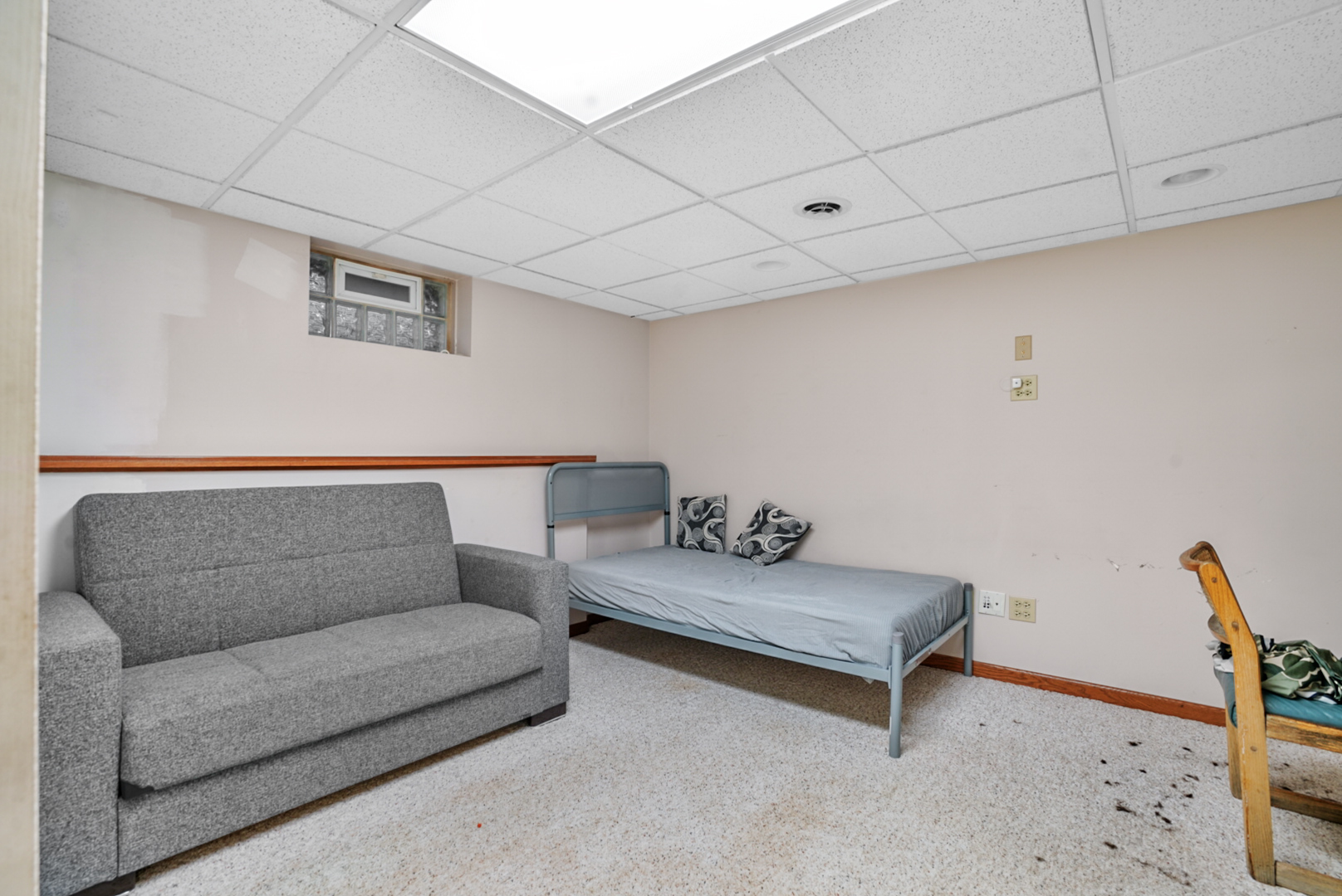 Stop your search! This is the home you have been waiting for. This well-cared-for all-brick ranch features many recent upgrades and amenities. In 2019, they replaced the roof and gutters and installed new windows throughout the home. In 2021, the owners added a new AC unit and furnace. As you enter through the large welcoming foyer, you’ll find a spacious formal living and dining room, which boasts new vinyl flooring, crown molding, and built-in shelving. The eat-in kitchen includes a pantry and newer appliances, including a refrigerator and oven, with French doors added in 2015. The roomy family room has a newer skylight and a stone wood-burning fireplace with a gas starter. There are three spacious bedrooms, each offering generous closet space, with hardwood flooring underneath the carpeting. The primary bedroom features double closets and a full private bathroom. The attached two-car garage includes all-new concrete flooring installed in 2021 and pull-down access to the attic. a new concrete driveway and walkway. The finished basement includes an additional fourth bedroom, office space, and plenty of extra living area with a wet bar and storage space. The homeowner installed a new dryer in 2021, along with a new sump pump and hot water heater in 2016. Enjoy the private patio space that overlooks the fully fenced yard, perfect for entertaining. This home is just steps away from the school and Veterans Park. This is a well-maintained home that you won’t want to miss!