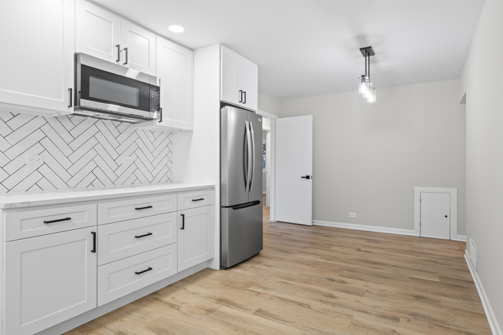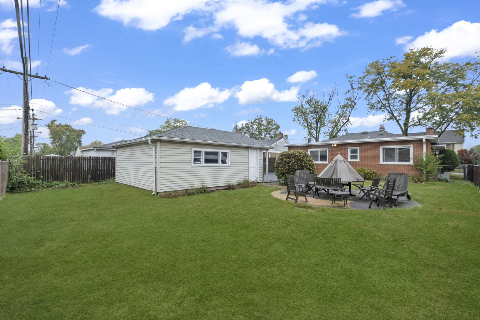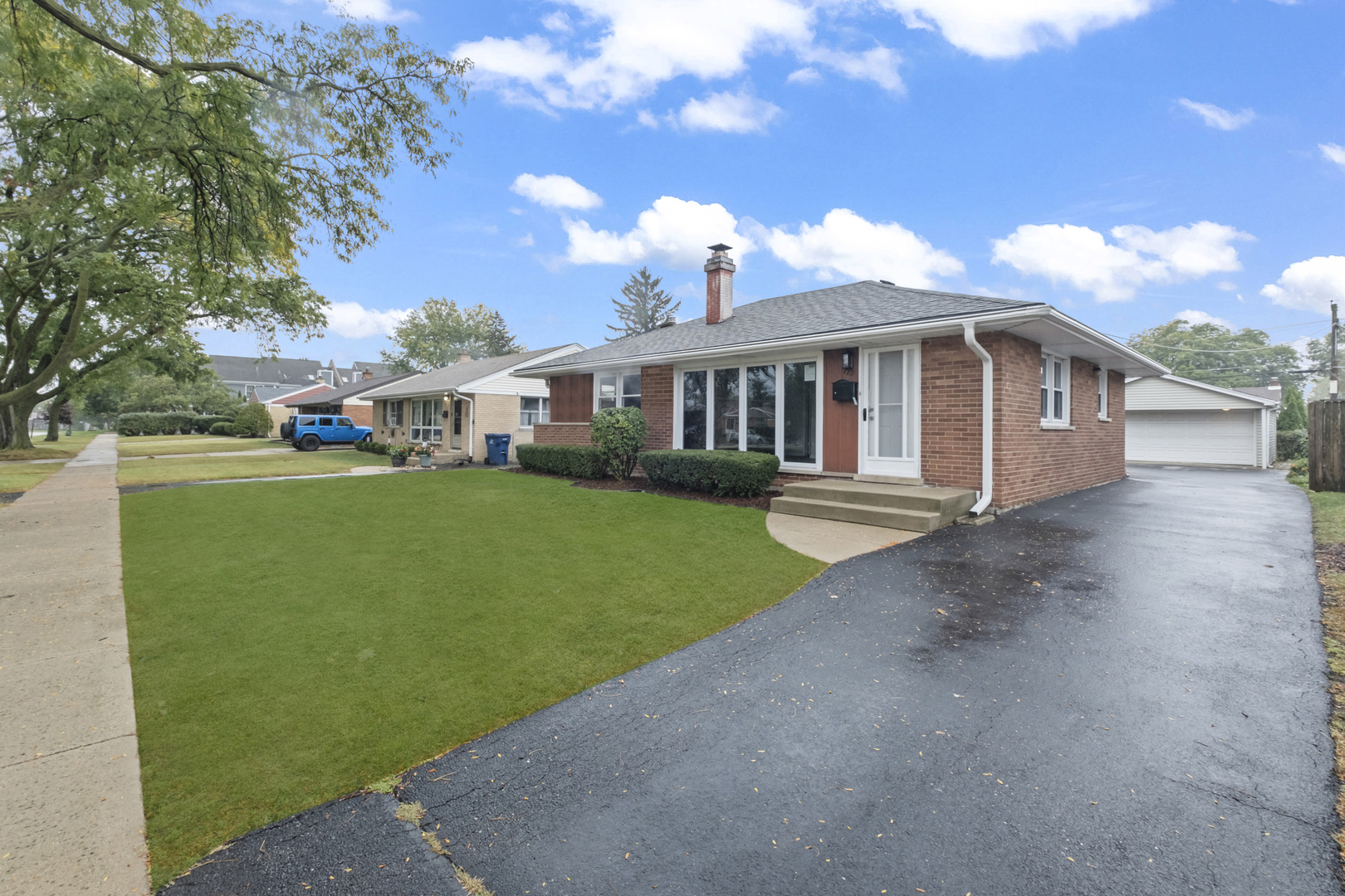 A fully remodeled and move-in ready ranch offering modern updates and a highly functional layout.This home features 4 bedrooms and 2 full bathrooms, all on the main level. The open-concept living room is filled with natural light from a huge bay window and anchored by a charming stone fireplace. The brand-new kitchen showcases quartz countertops, white shaker cabinets, stainless steel appliances, and a stylish backsplash, flowing seamlessly into the dining area. Both bathrooms have been completely renovated with designer finishes.The basement offers the best of both worlds – half is fully finished with a spacious recreation area and custom bar, while the other half provides a large utility and storage room.All new flooring and modern finishes across the entire home. Spacious backyard with patio, perfect for entertaining. Detached 2-car garage and extended driveway. Located in a desirable Des Plaines neighborhood, close to schools, shopping, dining, parks, and transportation, this home is completely renovated from top to bottom and ready for its new owners to move right in.