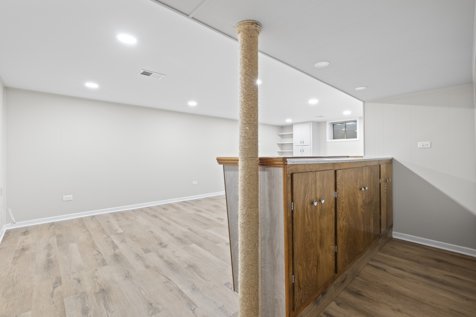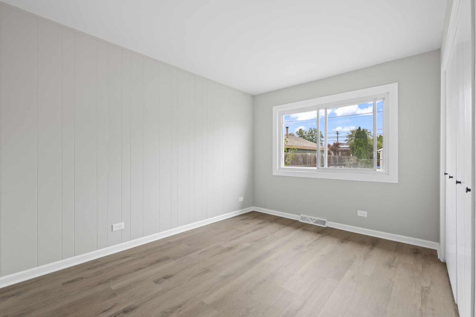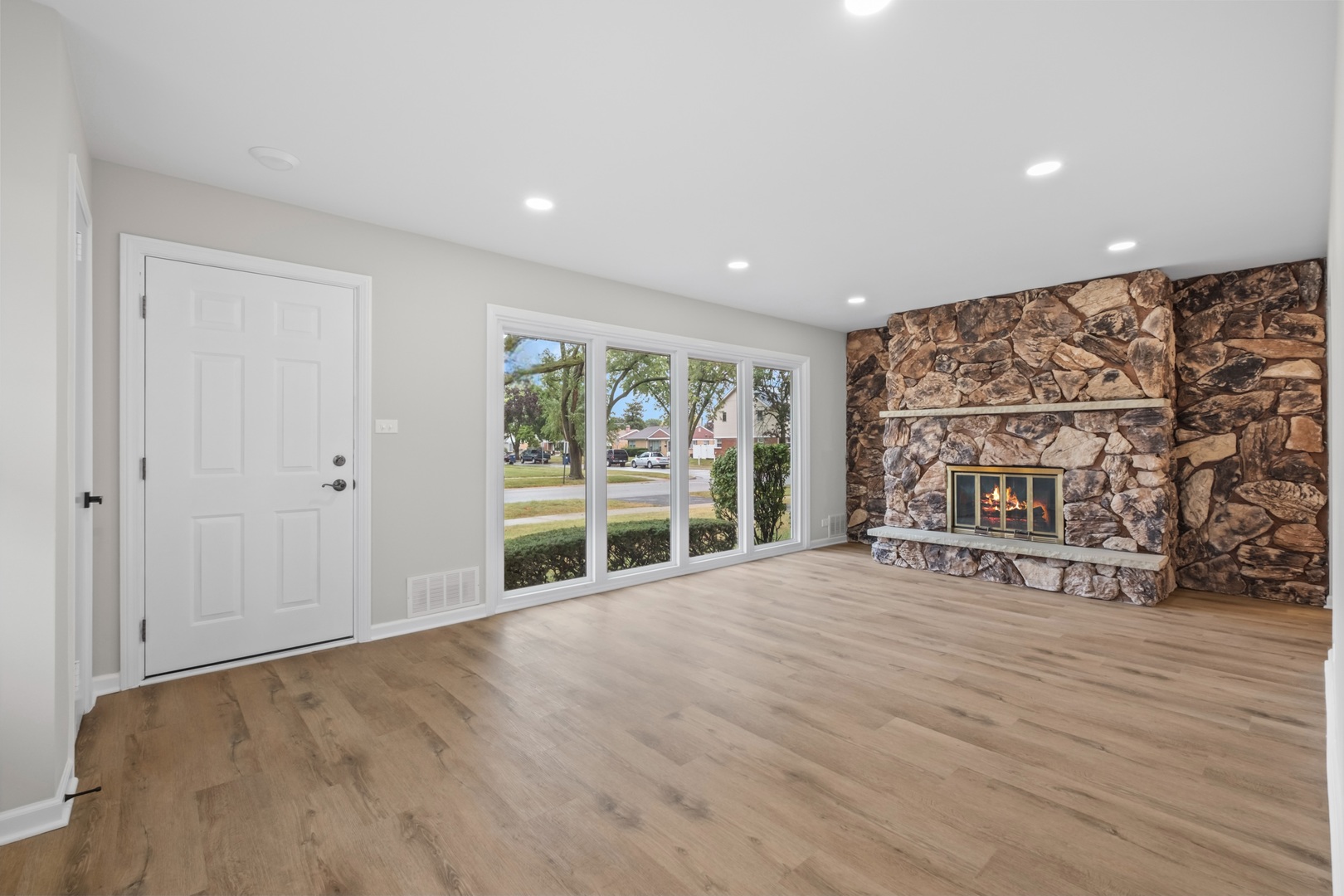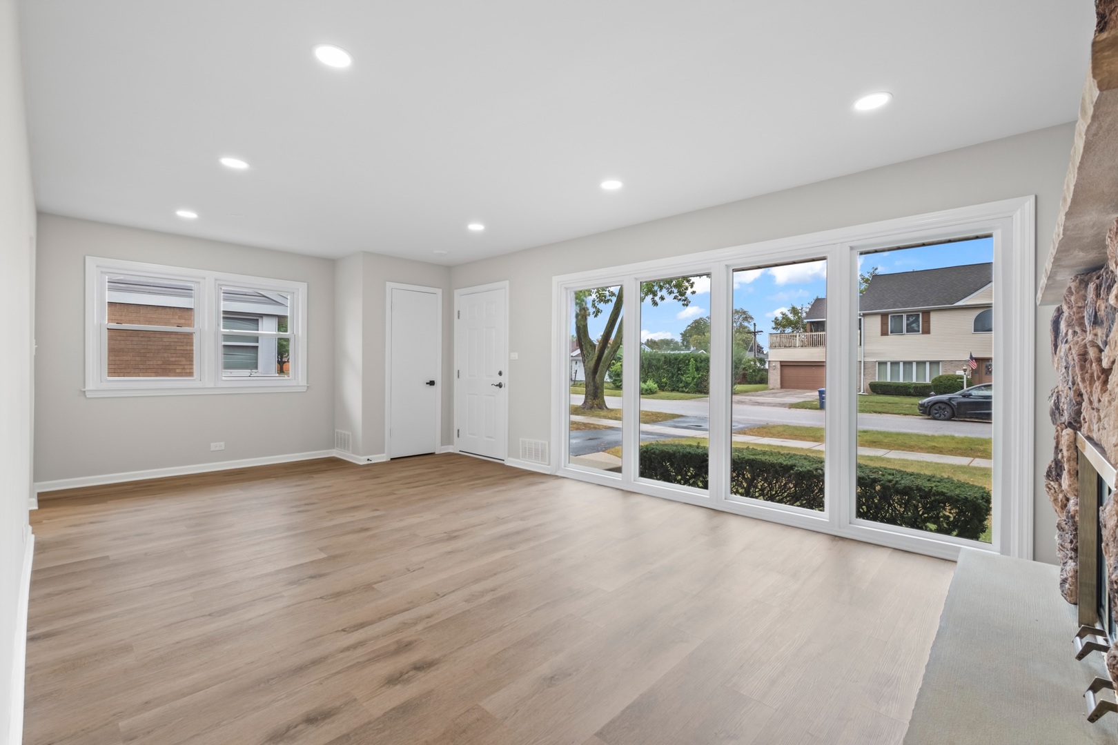 A fully remodeled and move-in ready ranch offering modern updates and a highly functional layout.This home features 4 bedrooms and 2 full bathrooms, all on the main level. The open-concept living room is filled with natural light from a huge bay window and anchored by a charming stone fireplace. The brand-new kitchen showcases quartz countertops, white shaker cabinets, stainless steel appliances, and a stylish backsplash, flowing seamlessly into the dining area. Both bathrooms have been completely renovated with designer finishes.The basement offers the best of both worlds – half is fully finished with a spacious recreation area and custom bar, while the other half provides a large utility and storage room.All new flooring and modern finishes across the entire home. Spacious backyard with patio, perfect for entertaining. Detached 2-car garage and extended driveway. Located in a desirable Des Plaines neighborhood, close to schools, shopping, dining, parks, and transportation, this home is completely renovated from top to bottom and ready for its new owners to move right in.