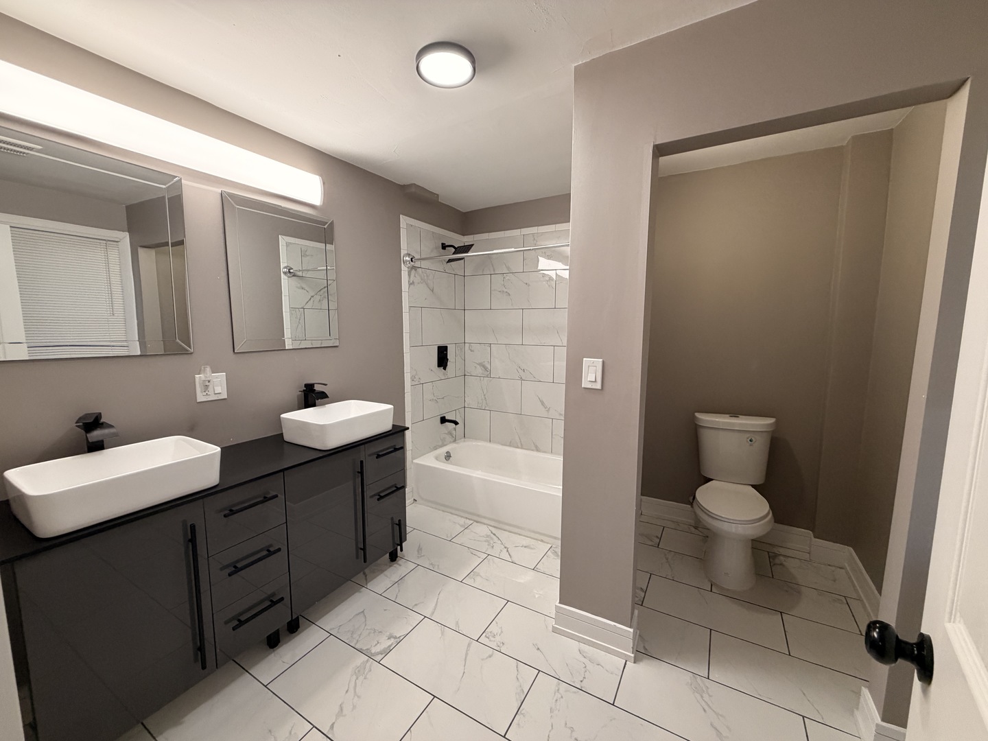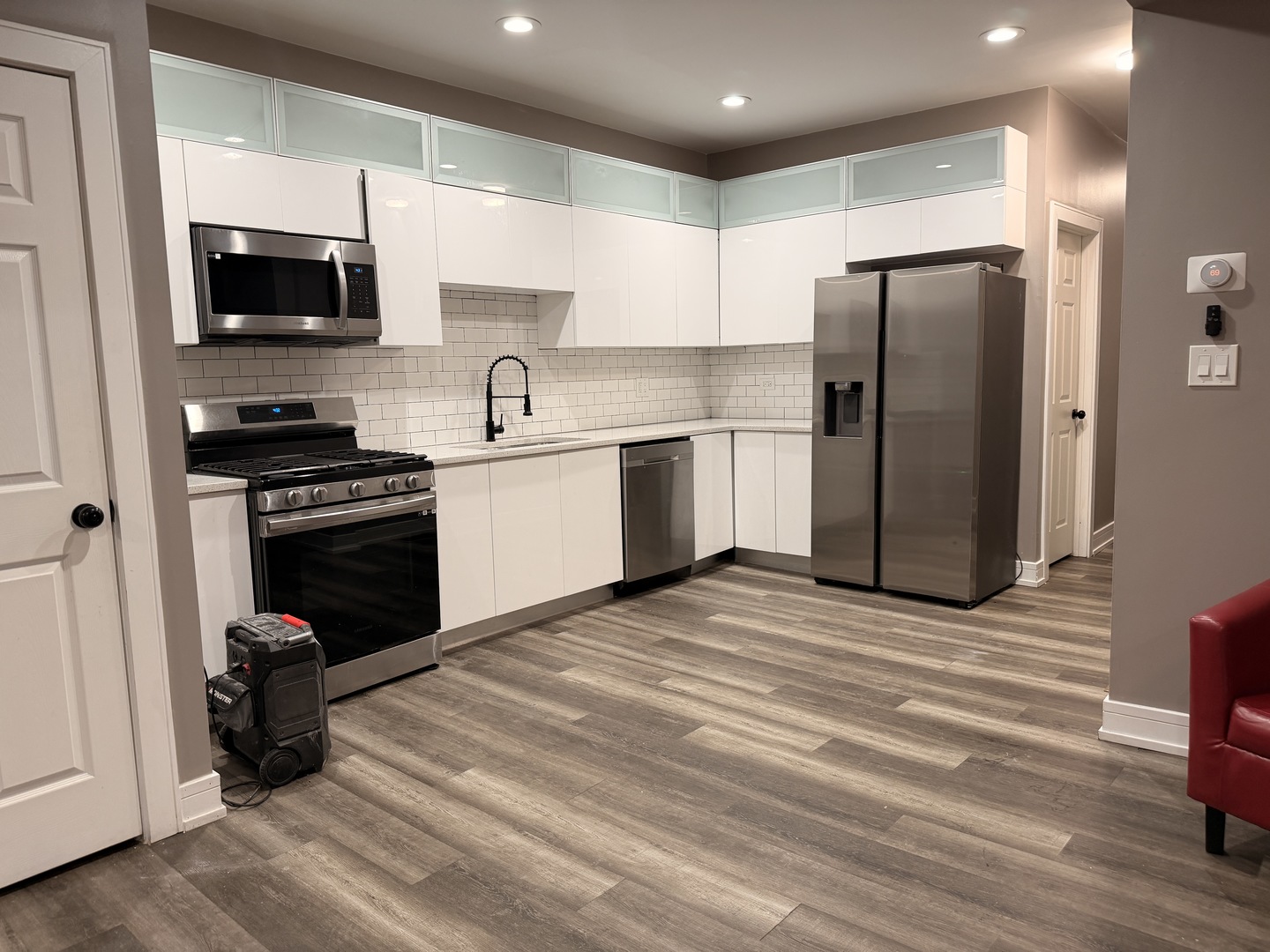 This beautifully rehabbed 6-bedroom, 4-bathroom home offers modern luxury on a quiet, desirable block. Featuring sleek handle-less cabinetry, stainless steel appliances, and an open, contemporary design throughout. The expansive primary suite includes a spa-style bathroom with double vanity and generous closet space. All bedrooms are comfortably sized with excellent natural light. Enjoy the convenience of in-unit washer and dryer, central air, a privacy-fenced backyard, and a two-car garage. A truly turn-key home offering space, style, and comfort. This is a rare gem that won’t last long!! Come get it before it’s gone.