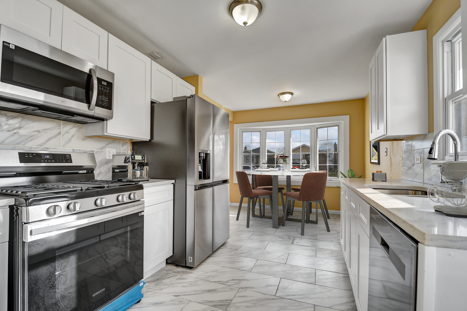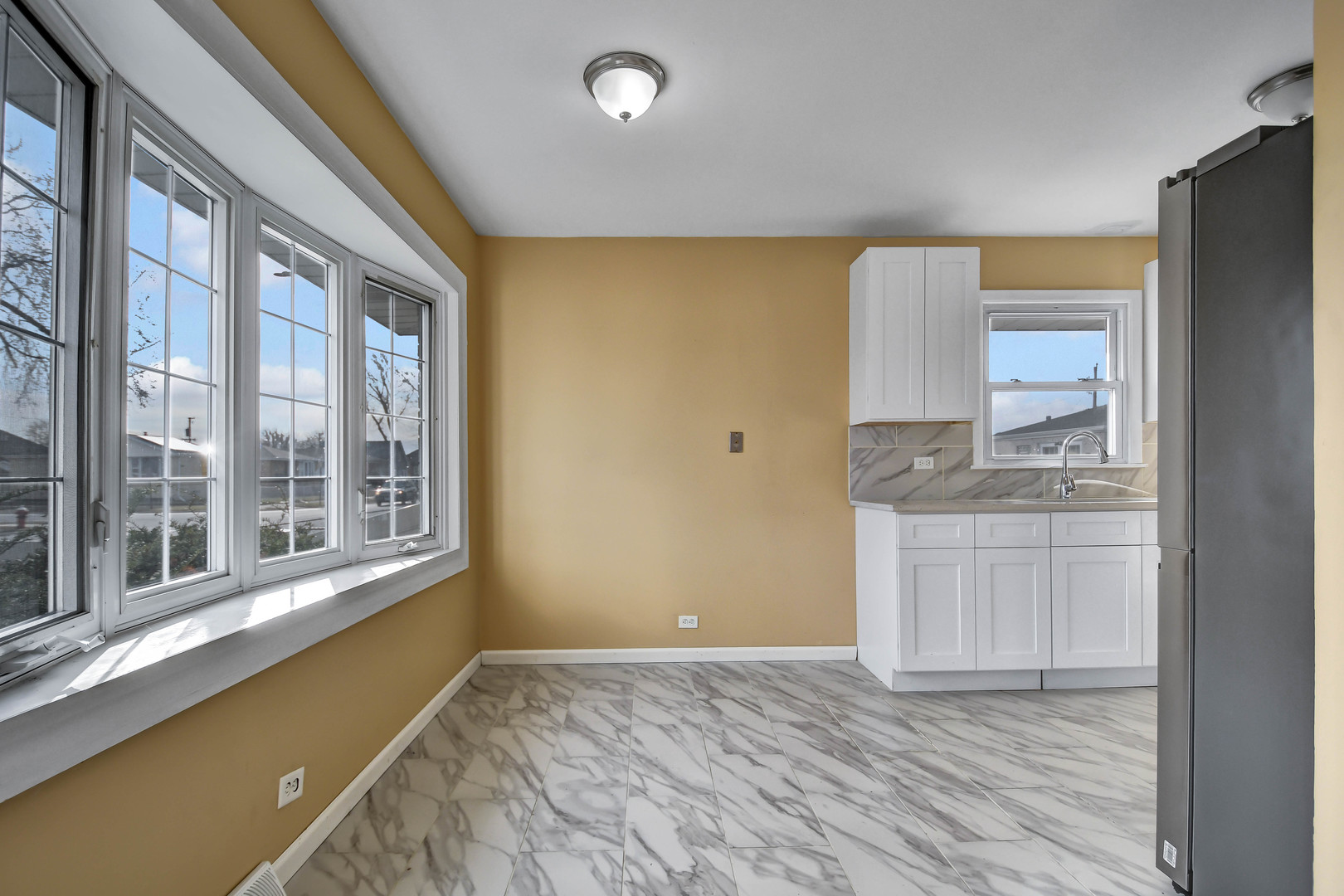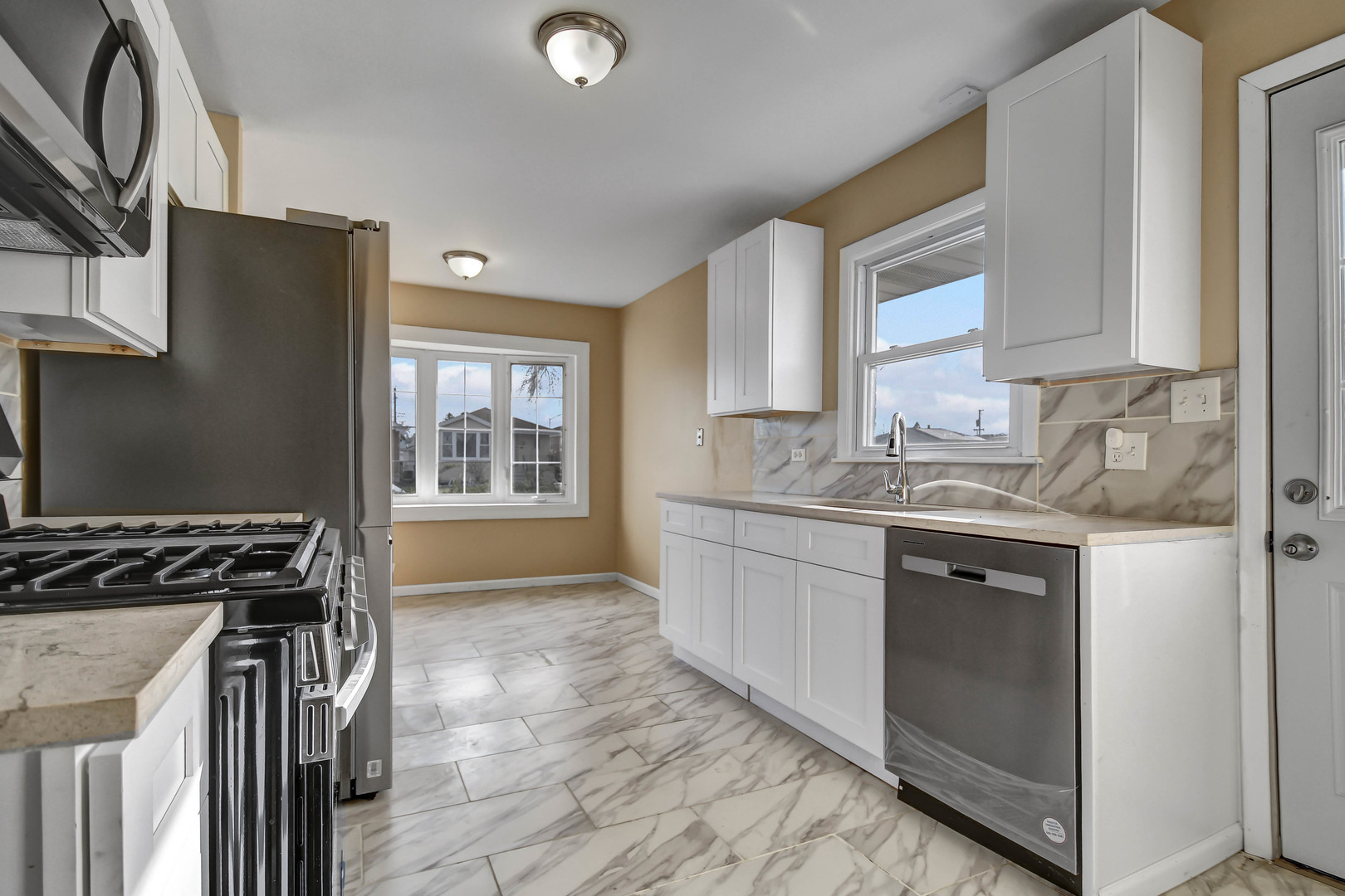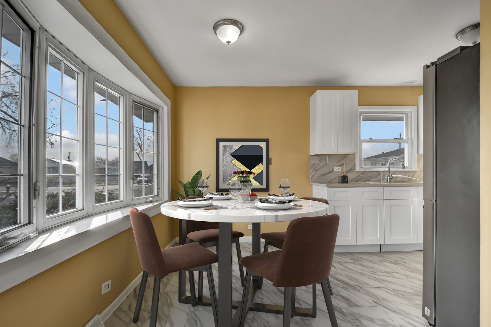 Sunshine’s favorite spot is this bright and inviting split-level home featuring a nicely updated, truly move-in-ready interior. Step inside to a welcoming living room highlighted by a large bay window and warm wood-laminate flooring that opens into the brand-new kitchen, complete with modern white cabinetry, quartz countertops, stainless steel appliances, and a bright dining area accented by a second bay window. Upstairs offers three comfortable bedrooms, all with wood-laminate flooring, along with a recently updated full bathroom. The lower level features a relaxing family room, a convenient half bath, and a utility/laundry room equipped with washer and dryer. Additional improvements, per seller, include a furnace and central air approximately four years old, a one-year-old water heater, and windows replaced about three years ago. The privacy-fenced backyard includes a two-car garage with a convenient side “party door” opening to an adjacent patio, perfect for outdoor gatherings. Ideally located just minutes from Midway Airport and within walking distance to schools and parks, this home is easy to see and easy to buy-schedule your private showing before it’s gone.