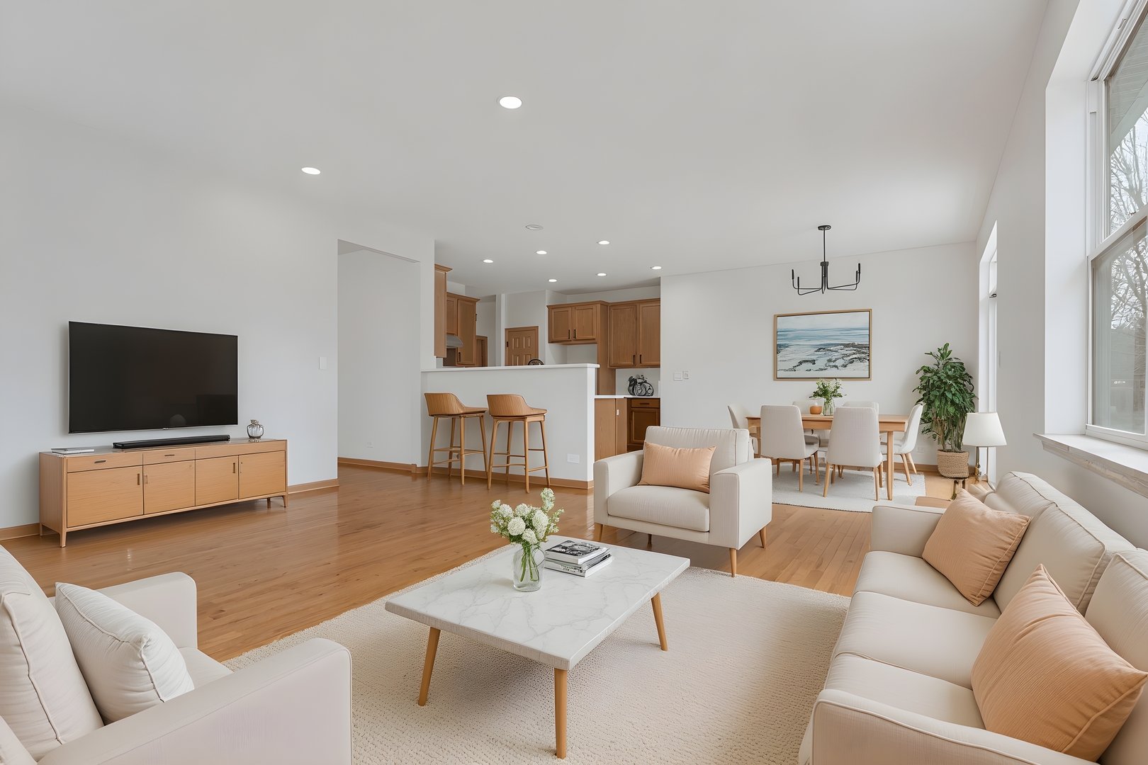 Be prepared to fall in love with this beautifully maintained 2-bedroom , 2-bath ranch located in the highly sought-after 55+ community of Steeplechase. From the moment you arrive, you’ll appreciate the great curb appeal including a charming front porch, perfect for relaxing and enjoying the neighborhood. Inside you’ll find a modern tiled foyer that leads into a bright, open floor plan filled with plenty of natural light. This home offers 9 ft. ceilings, 6-panel doors, and new designer hardware throughout. The spacious living and dining room combination features gleaming hardwood floors, creating an inviting space for everyday living and entertaining. The large family room is open to the well-appointed kitchen which includes quartz countertops and backsplash, a center island, 42″ dark maple cabinets, a pantry closet, a stainless steel stove and dishwasher and a new stainless sink with a black faucet. A versatile den at the front of the home offers the perfect space for an office, hobby room, or cozy reading nook. The extra-large primary bedroom easily accommodates a sitting area and includes an expansive walk-in closet. Its beautifully tiled en-suite bath features a rare, and highly desirable no-step shower along with a new water-saving toilet. The second bedroom and additional full bath are ideal for guests. The guest bath has been completely updated to incude a new vanity,new designer faucets, a water saver toilet and beautiful step in shower with large subway tile surround, You’ll also appreciate the large laundry room with wash tub and storage closet, plus a concrete crawl space-perfect for additional storage needs. Step outside to a large patio overlooking mature landscaping with an open view to the conversation area, offering a peaceful setting for outdoor dining or simply unwinding. Enjoy low-maintenance living with low HOA fees and no Master HOA fees. Gather with your friends in the well appointed clubhouse or at the pool in the summer which are all a part of the community. Scenic walking paths wind throughout the community, adding to its welcoming atmosphere. The home has been freshly painted throughout,has all new lighting,new cabinet hardware, and a new patio door. Also include the hot water, roof, furnace and AC that have been replaced within the last 5 years. All of this is just minutes from shopping, restaurants, parks, and a golf course, -everything you’re looking for in a 55+ community!