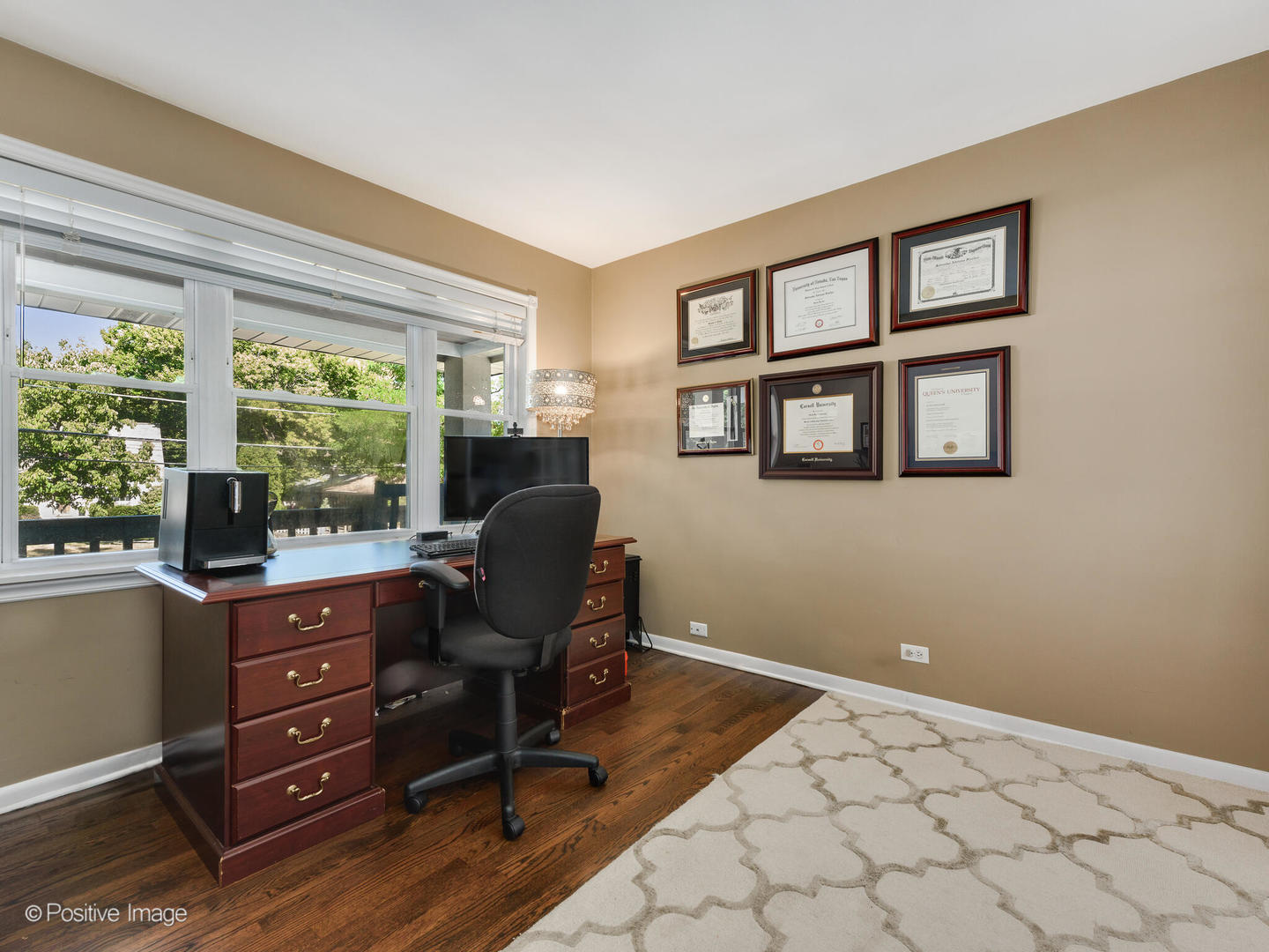 Welcome home to this incredible “in town” 5BR/4BA home in the heart of Glen Ellyn! Spacious main floor living provides for a formal living room with wood-burning fireplace and separate formal dining room, as well as a family room addition with access to the rear deck and yard space. The main floor office overlooks the fabulously manicured front yard and makes for the perfect work-from-home space. Updated kitchen is outfitted with classic white cabinetry, breakfast bar, granite countertops, and all stainless-steel appliances including vented hood. Gorgeous refinished Oak hardwood floors run throughout the main floor and second floor living space. Second floor provides for a full primary suite, plus an additional 3 bedrooms, as well as another family room space featuring vaulted ceilings. The ensuite primary bathroom has all stone tile flooring and wainscoting, oversized walk-in shower, separate soaking tub, and dual vanity. The finished basement offers a FOURTH living space, plus a fifth bedroom adjacent to an additional full bathroom making for the perfect guest suite setup. Extremely well-maintained home with updates abound including tear-off roof (2019), new landscaping + landscape lighting (2025), as well as replaced zoned gas forced air furnaces and central air conditioning (2019 & 2021). Enjoy the tranquility of the backyard on the oversized rear deck, perfect for entertaining or grilling and relaxing. Experience the convenience of an attached 1-car garage PLUS an additional 2.5 car detached garage offering plenty of storage space. Situated just steps to coveted Ben Franklin Elementary, with an easy walk to the downtown, Metra train, and beloved Lake Ellyn!