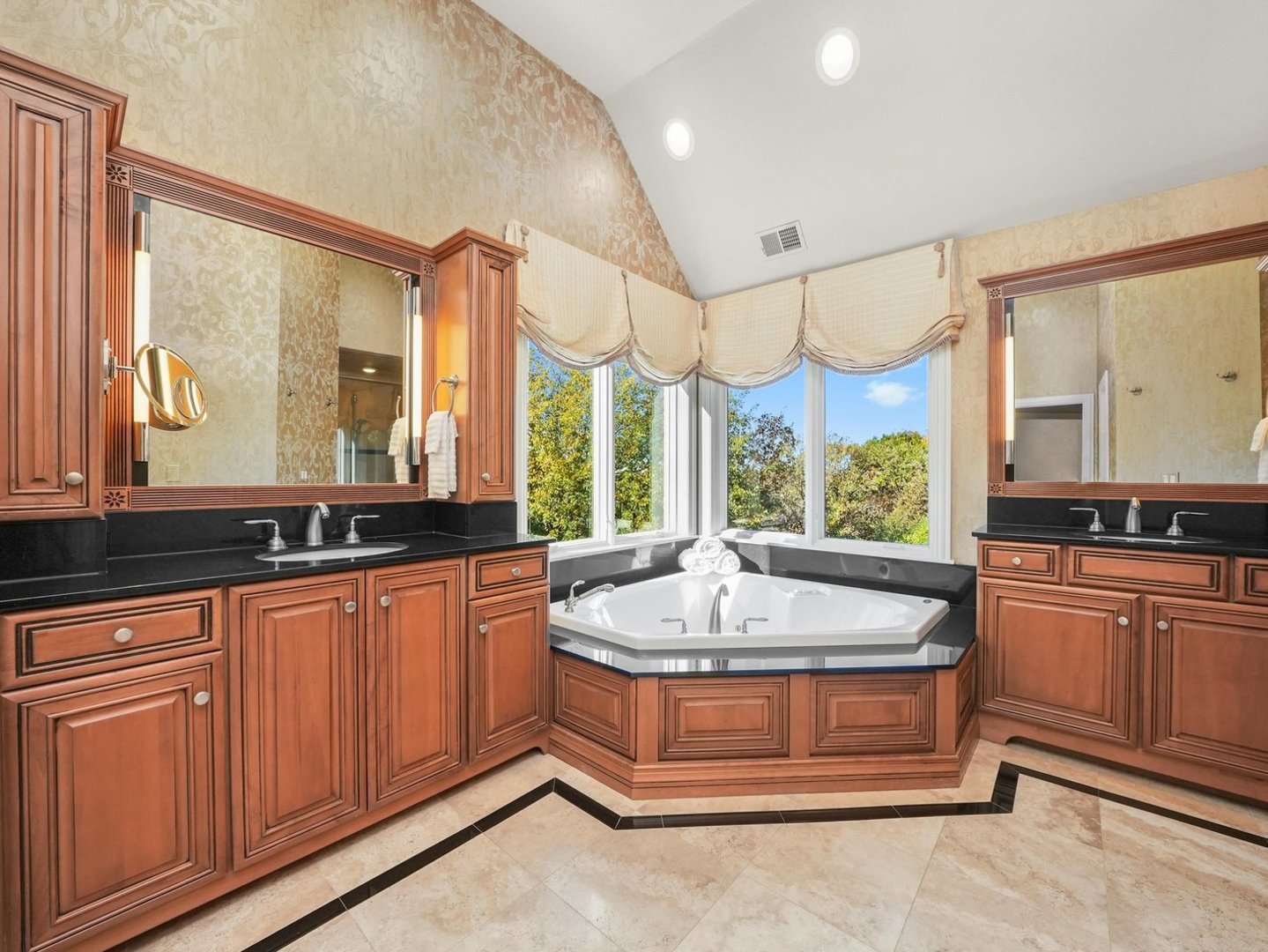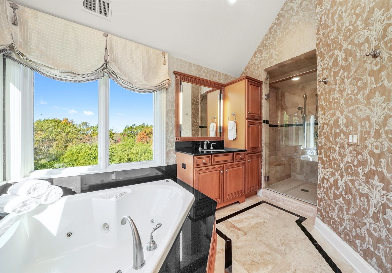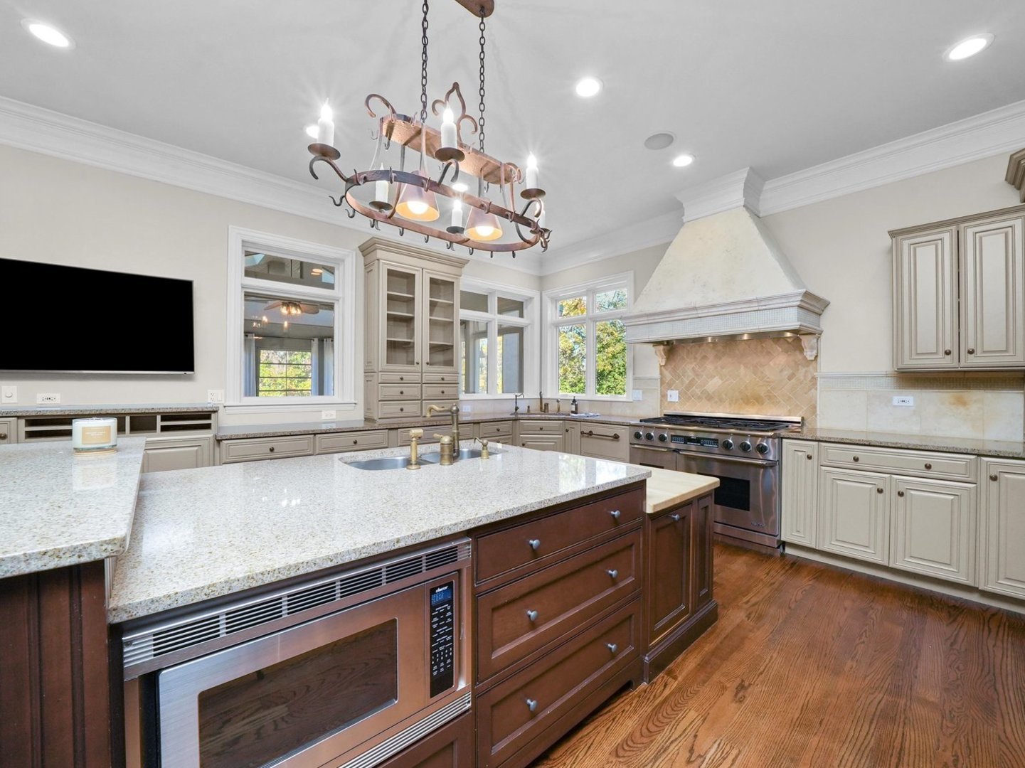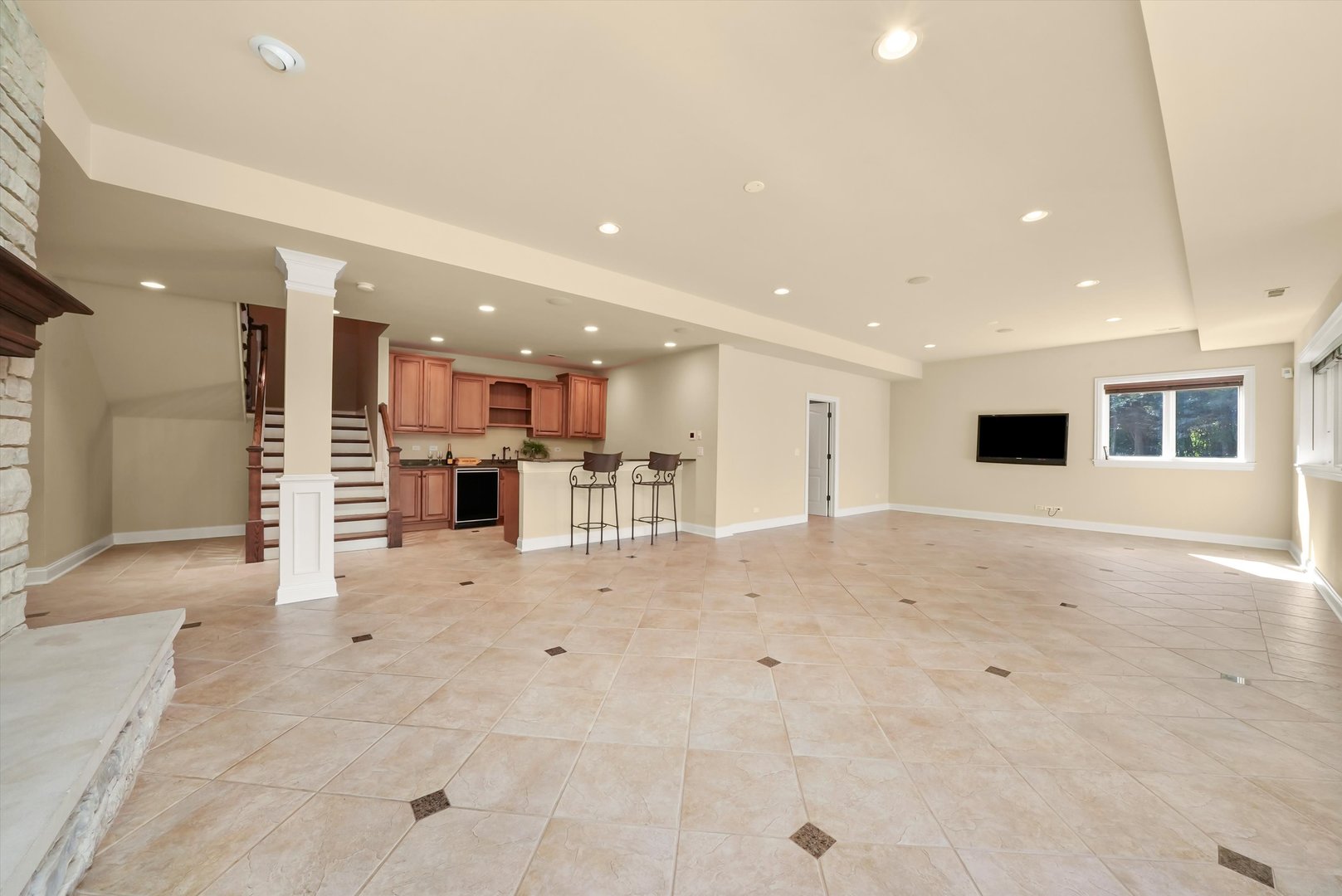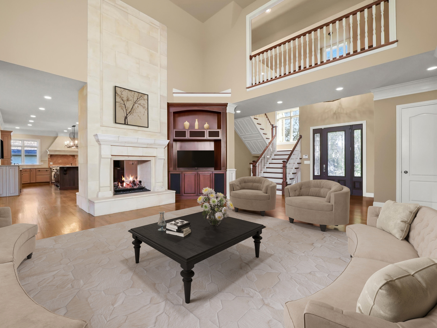 This spectacular custom built home by master craftsman, Dennis Bucalo, is located within the prestigious community of Wynstone, home to the acclaimed Jack Nicklaus Signature Golf Course. Featuring 7BR/5.2BA on a private, wooded lot, blending luxury finishes, and custom millwork with everyday function. The circular driveway sets a grand approach to the dramatic vaulted-ceiling foyer. The custom kitchen pairs professional-grade appliances with a wine refrigerator, generous prep surfaces, and effortless connection to the formal dining room. A sun-filled great room anchors the main level, complemented by a separate handsome library and a study/music room featuring an armoire with a built in hidden bar. A screened porch extends living space for three-season use-ideal for morning coffee and evening cocktails. Two laundry rooms support household efficiency. The walkout lower-level adds a bedroom and full bath, kitchenette/bar, exercise room, a large recreation area and direct access to the patio and beautifully landscaped yard. All within one of the most sought-after communities in Illinois. Additional amenities such as clubhouse dining, pool, tennis, and golf course require membership.