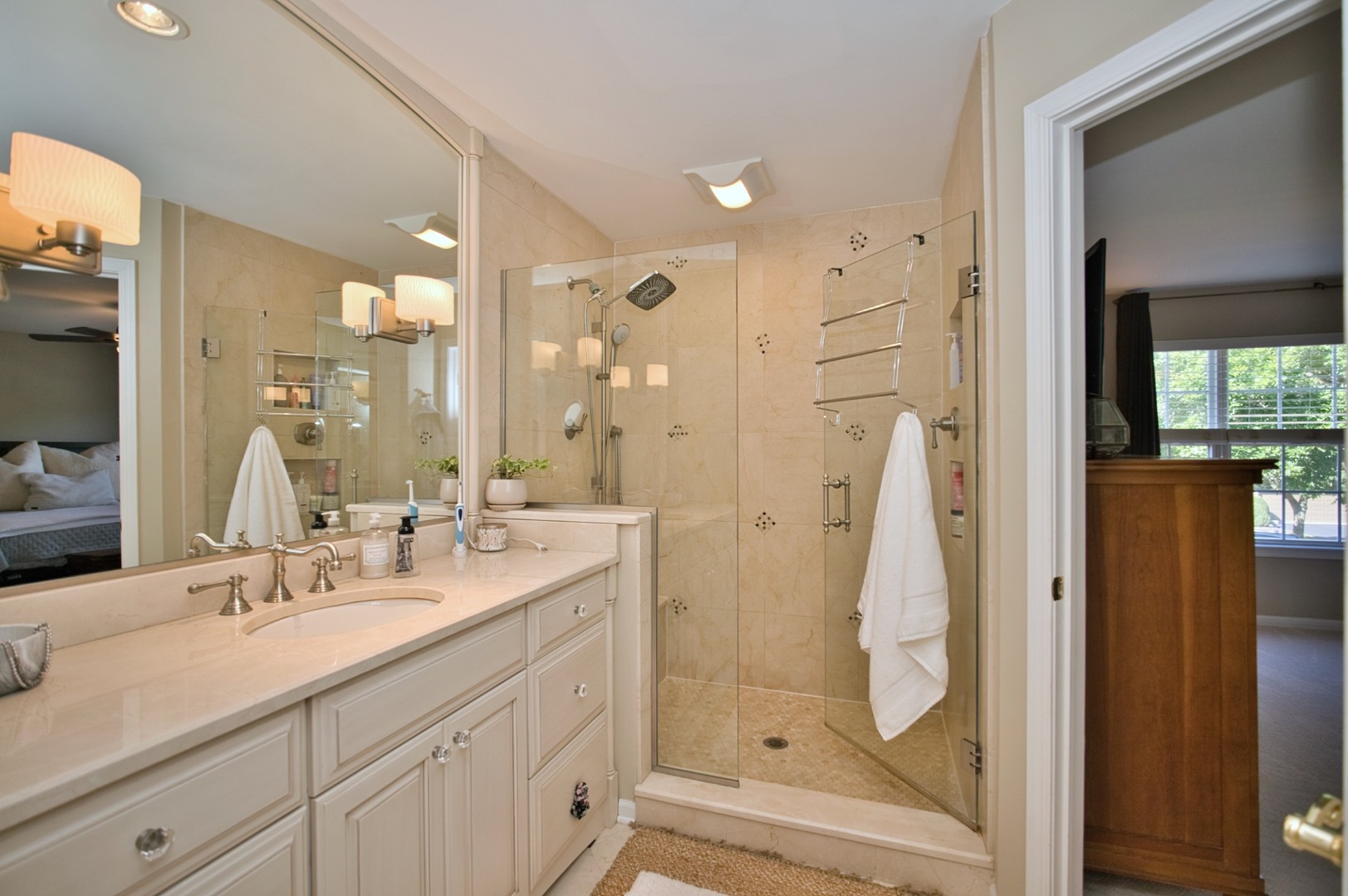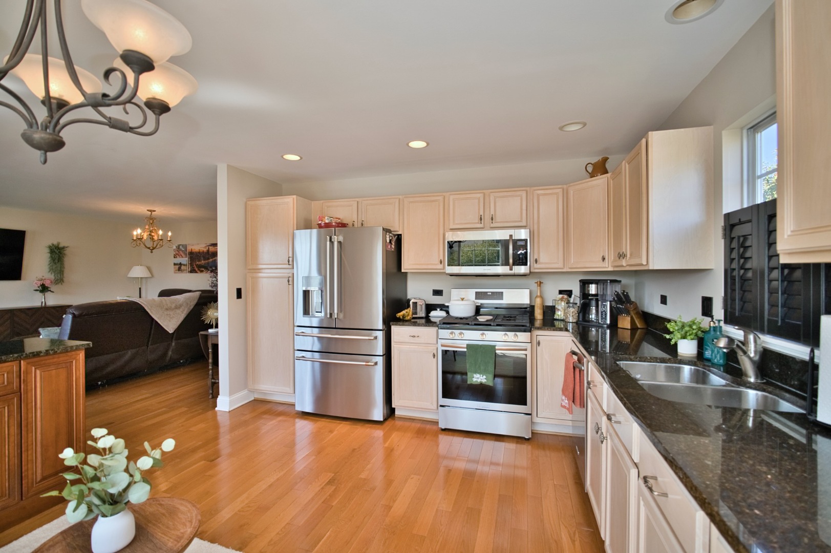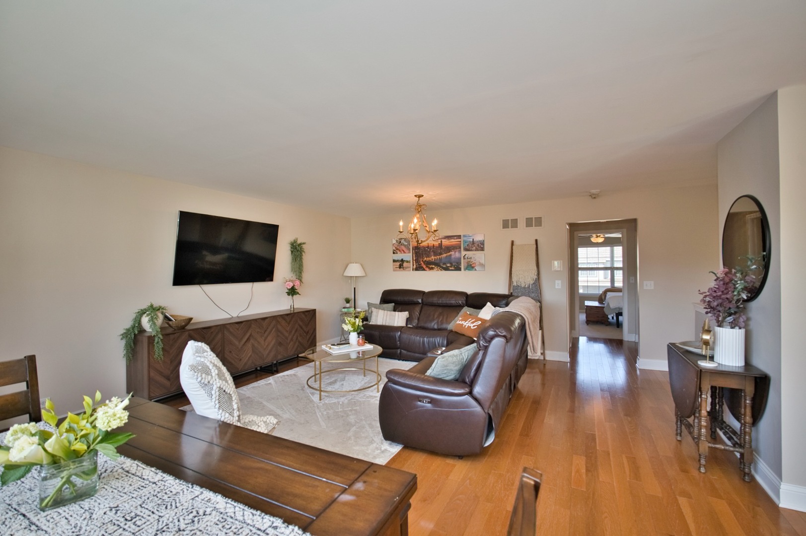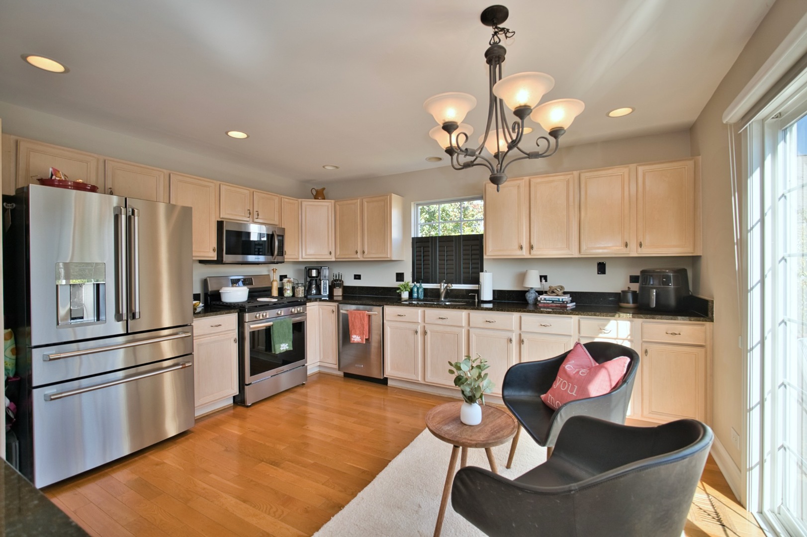 **No showings until Thursday** Don’t miss this stunning Woodemere home offering rare and highly sought-after features: a serene pond view, full basement, and private end-unit setting. Welcome to a spacious, open floor plan designed for comfort and entertaining. The living spaces are thoughtfully arranged across two levels and feature luxury touches including gleaming hardwood floors, soaring 12-foot ceilings, ensuite bedrooms and oversized closets. The remodeled kitchen (2010) boasts abundant cabinetry, generous counter space and a functional buffet that seamlessly connects the kitchen to the living area. New stainless steel appliances (2024) complete this beautiful space which opens to a deck overlooking the tranquil pond. The primary suite is a true retreat featuring an updated ensuite bath, expansive closet and the convenience of laundry located just outside the bedroom. On the lower level, relax in the inviting family room with access to a second bedroom also featuring an ensuite bath and spacious closets. Don’t miss the second deck with access to the lush green space and pond. The attached two-car garage connects directly through this level for added ease. Don’t forget this unit includes a full basement which is partially finished and currently used as a rec room/workout space with plenty of storage. Recent updates include: sump pump (2025), radon system (2025), hot water tank (2018), washer/dryer (2019), carpet (2024), refrigerator, microwave, and stove (2024), garage motor (2024). This exceptional home combines modern upgrades, thoughtful design and unmatched views-schedule your showing today!