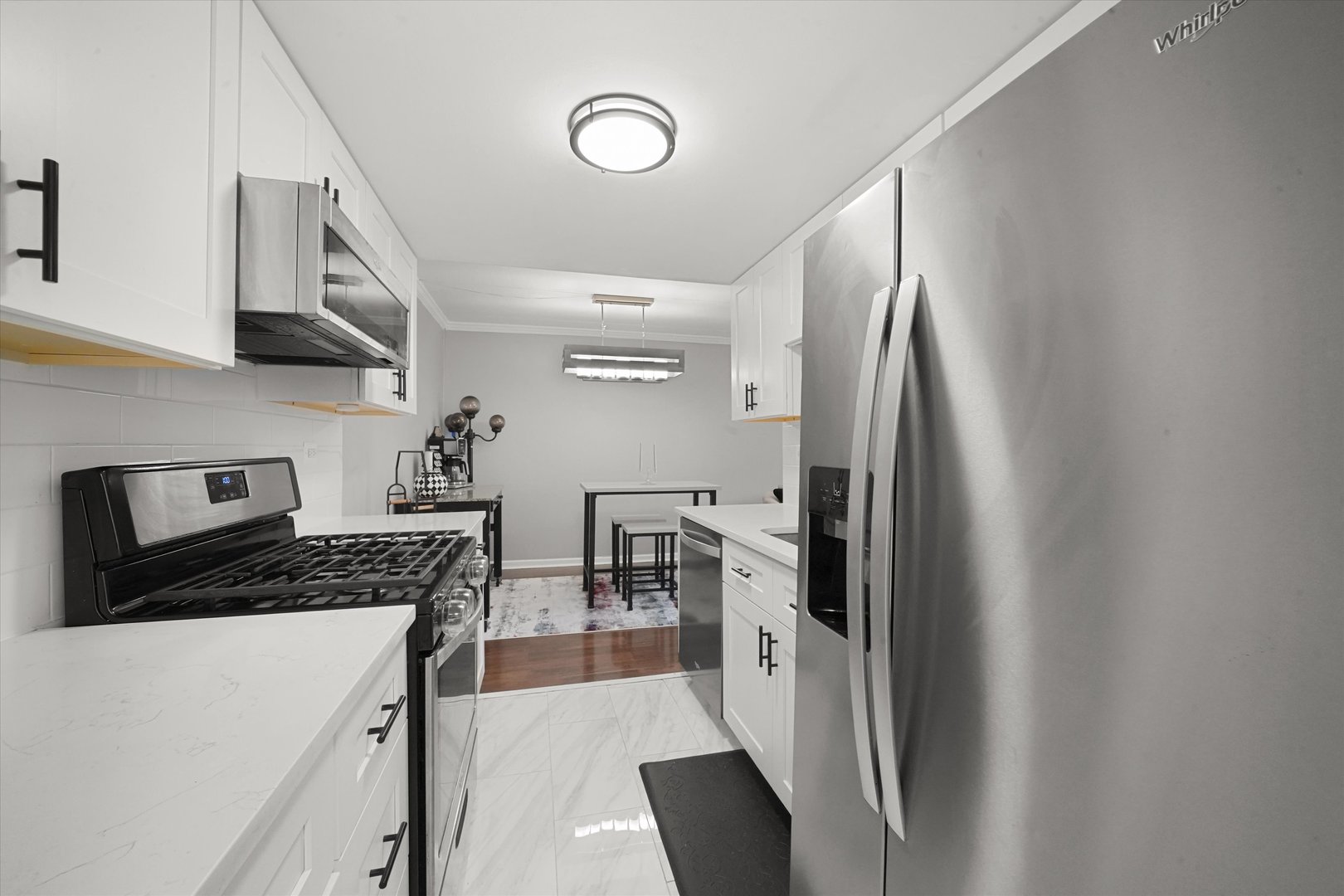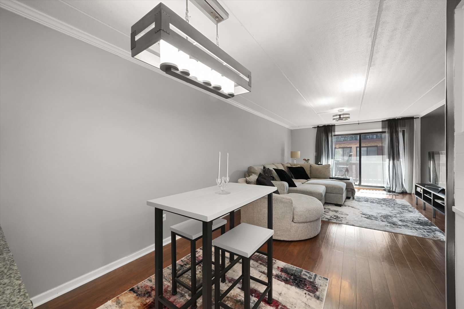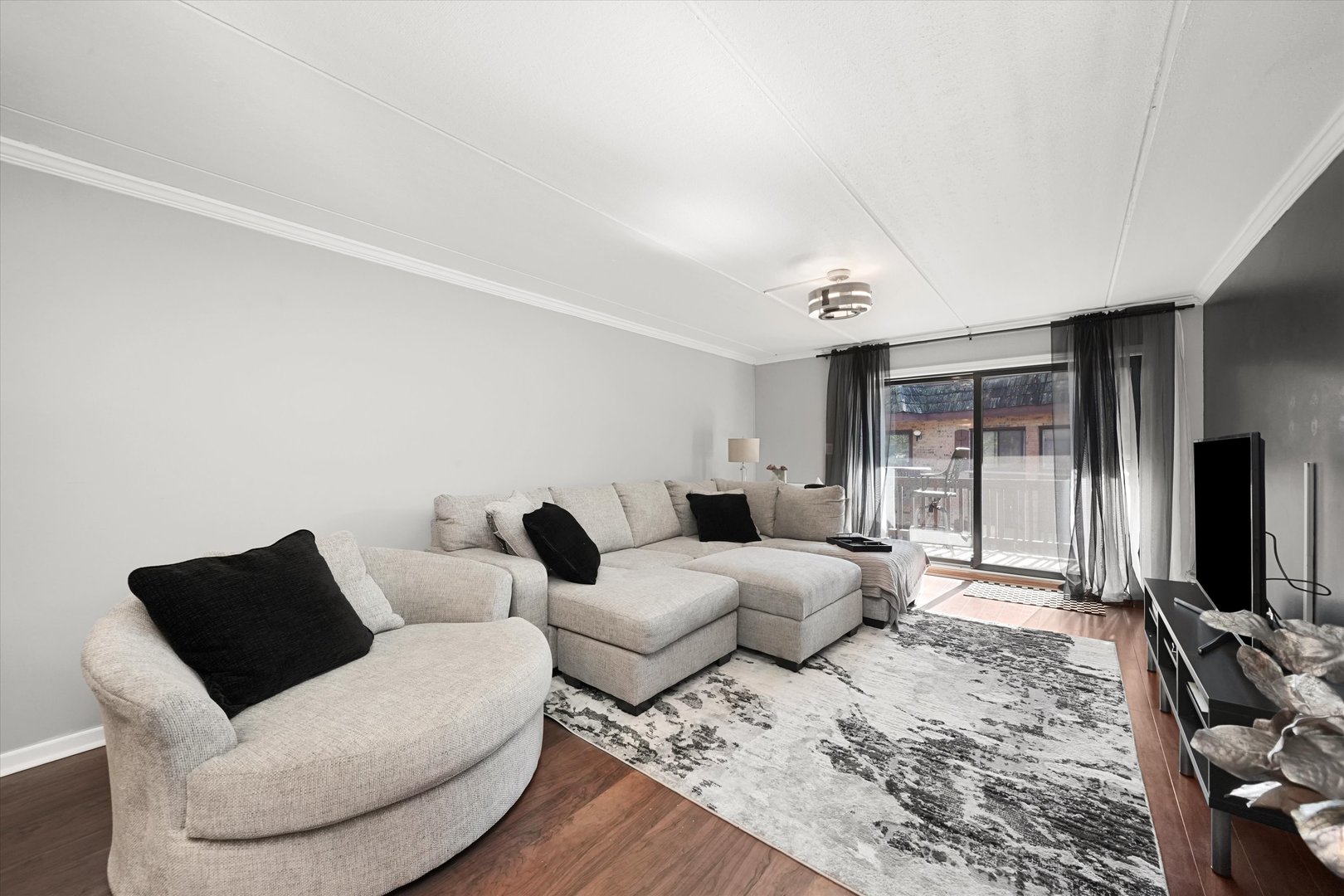 GORGEOUS and Move-In Ready! This beautifully updated 2-bedroom, 1.5-bath condo in desirable Lake in the Woods offers modern style and comfort throughout. The kitchen features white shaker cabinets, quartz countertops, and plenty of storage. Both bathrooms have been tastefully remodeled with new vanities and countertops. Enjoy newer flooring, a brand-new sliding door, and an extra-large balcony with serene open views. Assessment includes heat, water, and scavenger services. Additional perks include assigned parking, coin laundry in the building and large storage space. Conveniently located near shopping, restaurants, and easy expressway access!