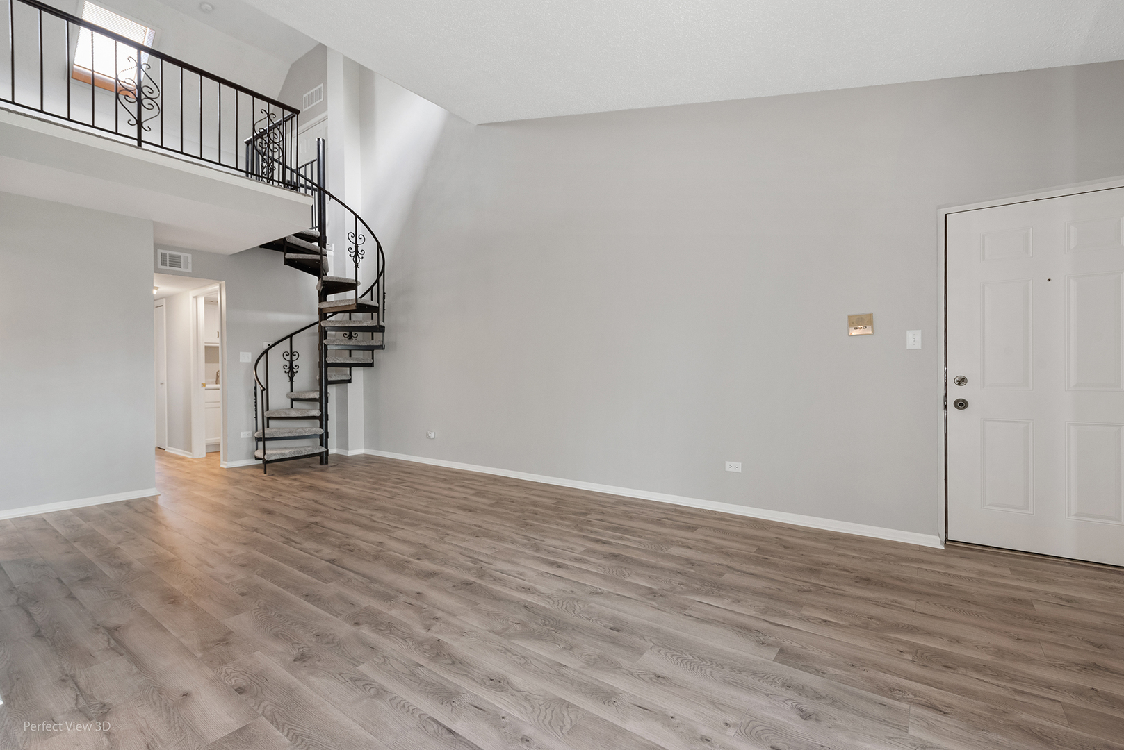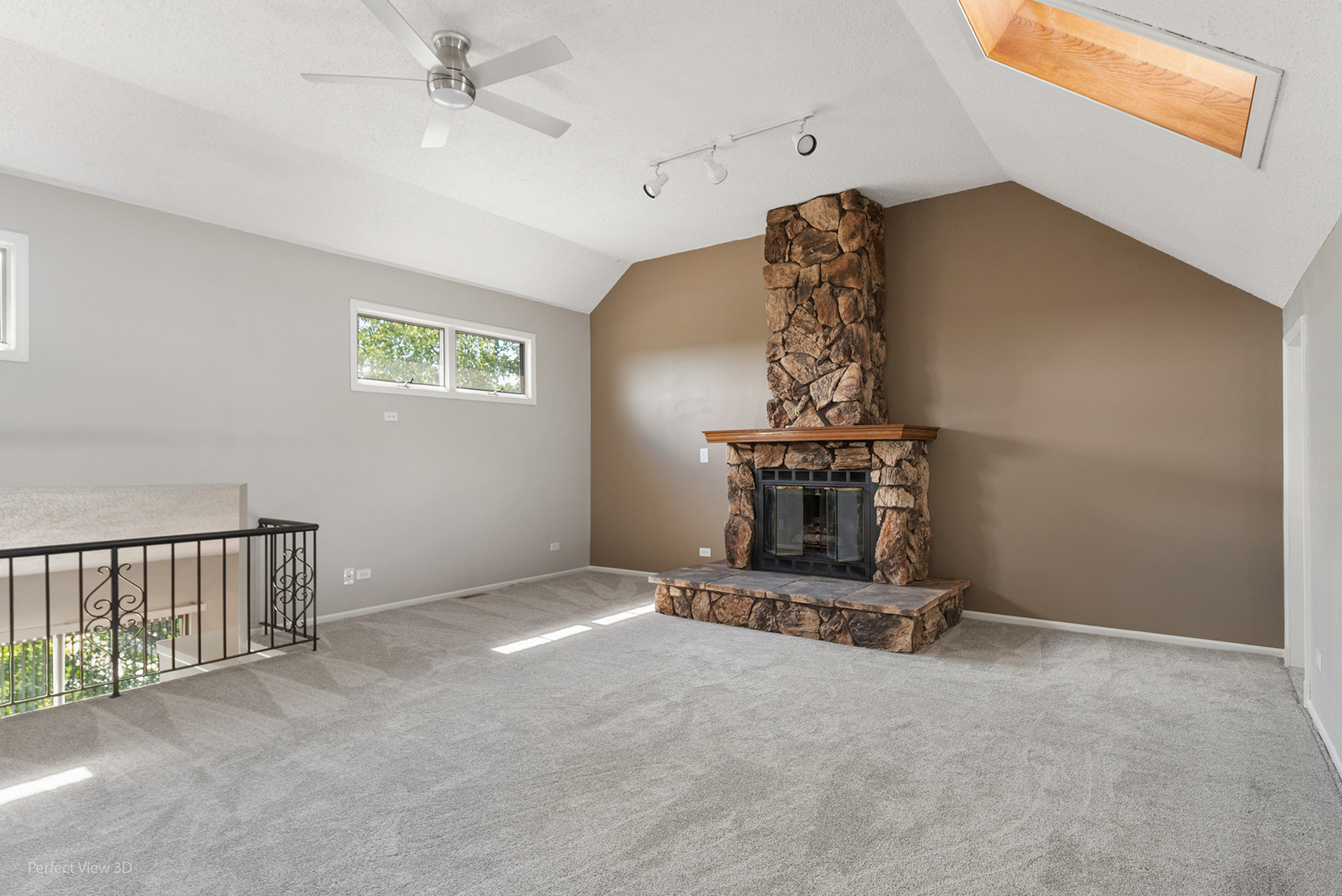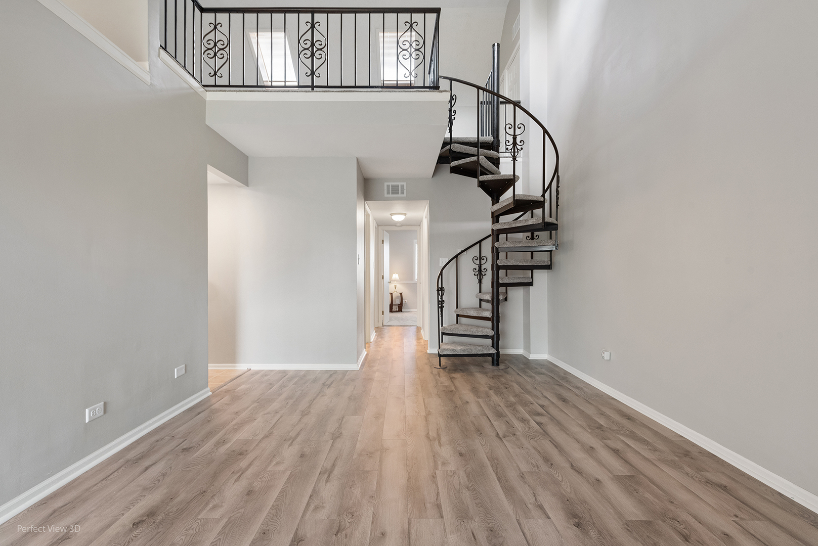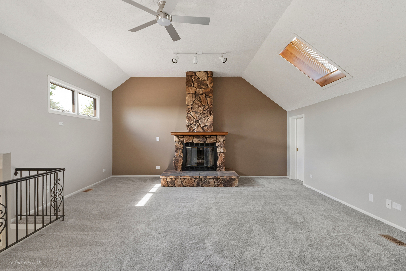 Newly renovated condo in 2025, 1,600 square foot, quiet 6-unit condo building, low HOA and well managed association. Incredibly spacious-loft style condo. 2 bedroom, 2 bath, living room, dining room, family room, with a second-floor large loft and eat-in kitchen. Kitchen has all new appliances, large new modern single-bowl sink and faucet. Central air, newer furnace, and hot water heater. All new lighting, window coverings, and ceiling fans. Bathrooms have new toilets, vanities, faucets, and quartz countertops. Large laundry room with new cabinets, ceiling, sink, counters, washer and dryer. New flooring throughout unit, including luxury vinyl in main living areas, and neutral carpet in bedrooms and loft. The loft has a gas fireplace that overlooks the living room, and it provides, walk in access, to floored attic, with plenty of additional storage. 1 car detached garage with new garage door opener and keypad, compatible with smart phone, as well as one additional assigned parking spot behind building. Building has maintenance free brick hallways, new roof on building and garages, as of September 2025. Enjoy the view from the 3rd floor balcony, that boasts an additional large storage closet, close to train, shopping, walking paths, parks, and Tinley Park recreation center. This is a MUST SEE! Schedule your viewing asap, this one will not last.