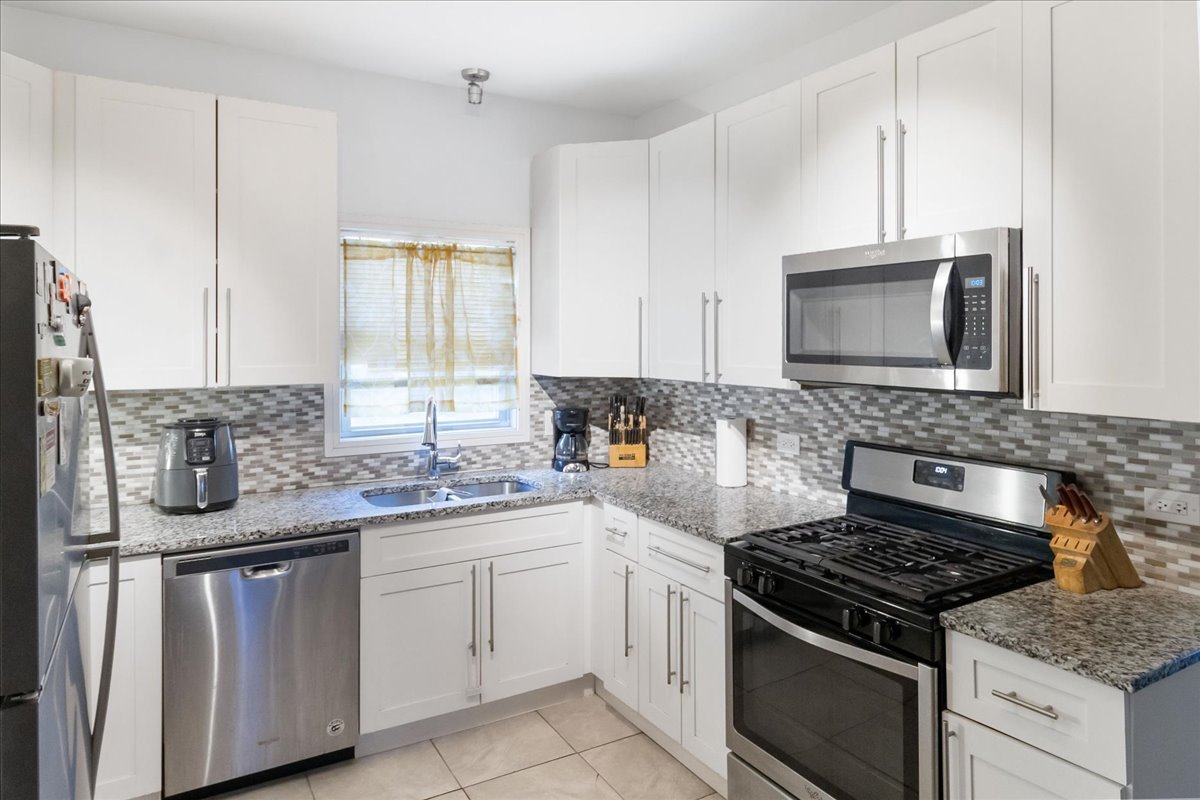 Priced to Sell!!! This updated 4-bedroom, 2-bathroom brick bungalow sits proudly on a generous corner lot in the desirable South Shore/Avalon Park area. Renovated in 2019, the home beautifully blends classic charm with modern updates. Step into a bright and expansive living room flooded with natural light from windows on three sides. The separate formal dining room offers ample space for entertaining. The kitchen features granite countertops, a stylish backsplash, and stainless steel appliances-perfect for home cooks and hosting alike. Three bedrooms and an enclosed rear porch complete the main level. The finished basement offers incredible versatility, with a fourth bedroom, second full bath, family room, additional den space, and a huge laundry/storage area. Enjoy summer evenings in the large fully fenced backyard with a private deck and off-street parking for two. Major updates in 2019 include new windows, electrical, plumbing, HVAC, water heater, and more-giving you peace of mind for years to come. This home is full of character, space, and functionality-don’t miss your chance to make it yours!