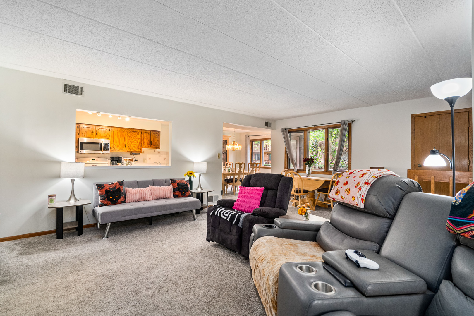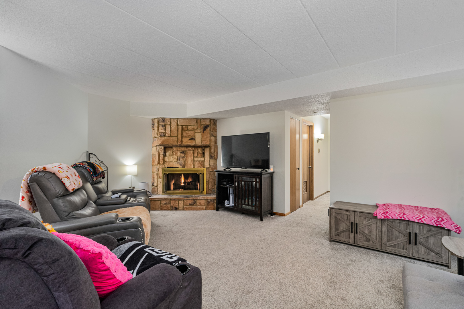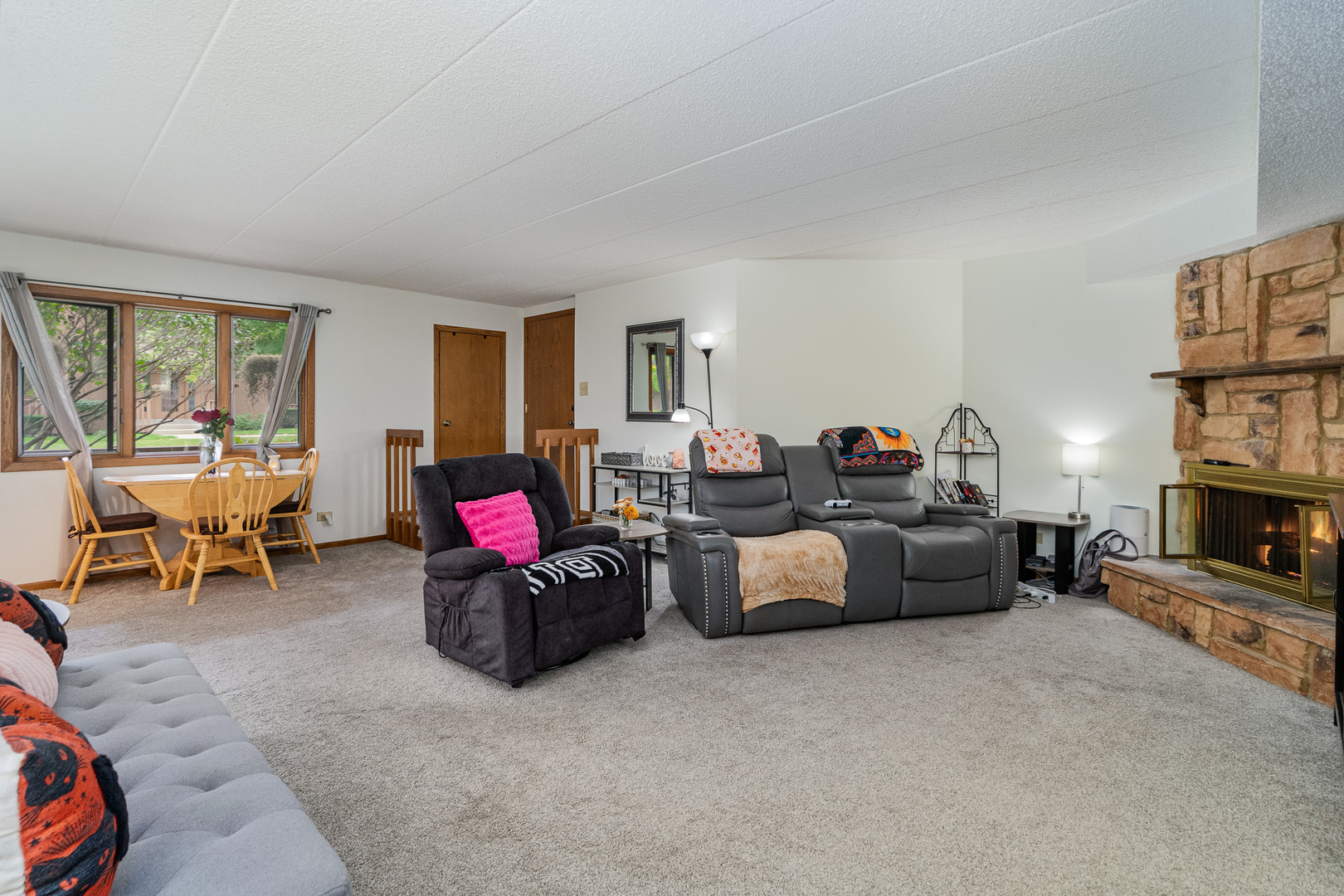 Welcome to this spacious and beautiful two-bedroom, two-bath condo perfectly situated in a desirable Burr Ridge location. This inviting home offers a large kitchen ideal for cooking and entertaining, a spacious dining room with door that leads to a covered outdoor balcony complete with a convenient storage closet. Enjoy the sun-filled living room featuring a cozy gas fireplace with gas logs, perfect for relaxing evenings. The primary suite includes a generous walk-in closet and a private bath for added comfort. Additional highlights include in-unit laundry, new carpet, and fresh paint throughout, creating a move-in-ready space. This quiet, well-maintained, flexicore building offers a main-level location that overlooks a beautiful wooded courtyard. Spend time on your private patio enjoying peaceful views of the stunning landscaped grounds. A desirable two-car garage with extra storage completes this exceptional offering. Enjoy comfort, convenience, and a prime setting-all just minutes from shopping, dining, and expressways in the heart of Burr Ridge!
