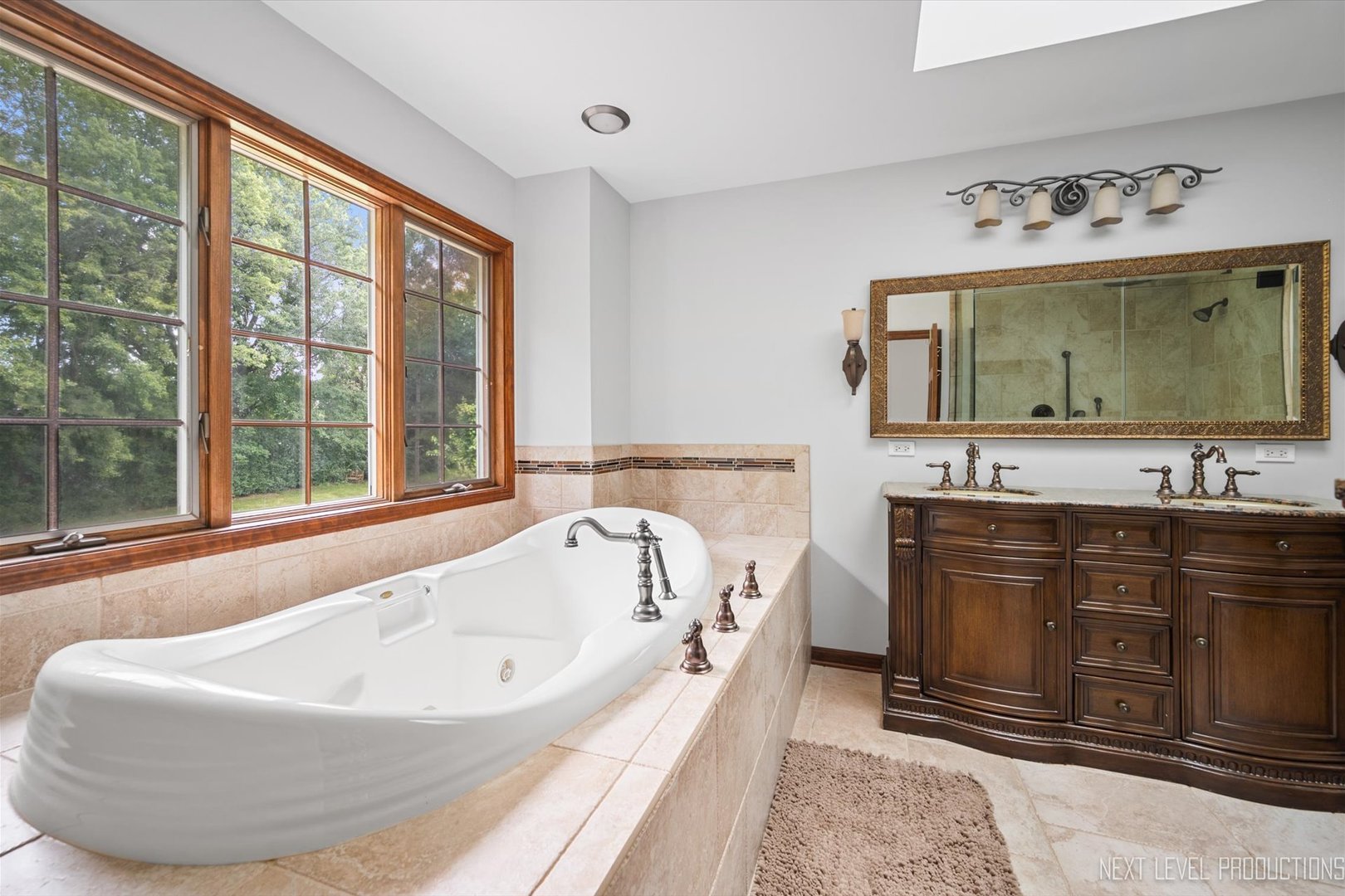 Gorgeous John Hall custom home on a stunning wooded lot in The Hastings! The west facing covered front porch is a wonderful place to end your day and witness a sunset or two! Welcome into the open 2-story split foyer with African Moabi hardwood floors! The formal living room and dining rooms also have African Moabi floors plus thick crown molding. The updated kitchen with custom glazed cabinetry and SS appliances. The family room offers a beamed ceiling, fireplace and it leads out to the sunroom which will surely be the favorite space in the home with panoramic views of the yard! The convenient main floor laundry room is set-up to be an in-law/nanny kitchen and has a 2nd staircase leading to the 2nd floor. Primary bedroom suite with volume ceiling, walk-in closet and amazing bath remodel with custom granite top vanity, big soaker tub and steam shower of your dreams! Three additional bedrooms, one with an en-suite updated bath and the full hall bath is redone as well. There is a full finished basement with abundant storage too. Three car garage. The large deck off kitchen and screened porch overlook a deep back yard with firepit too! New paint and carpeting throughout! The exceptional location is just minutes west of Randall Road. The Meissner Corron Forest Preserve is nearby as well.