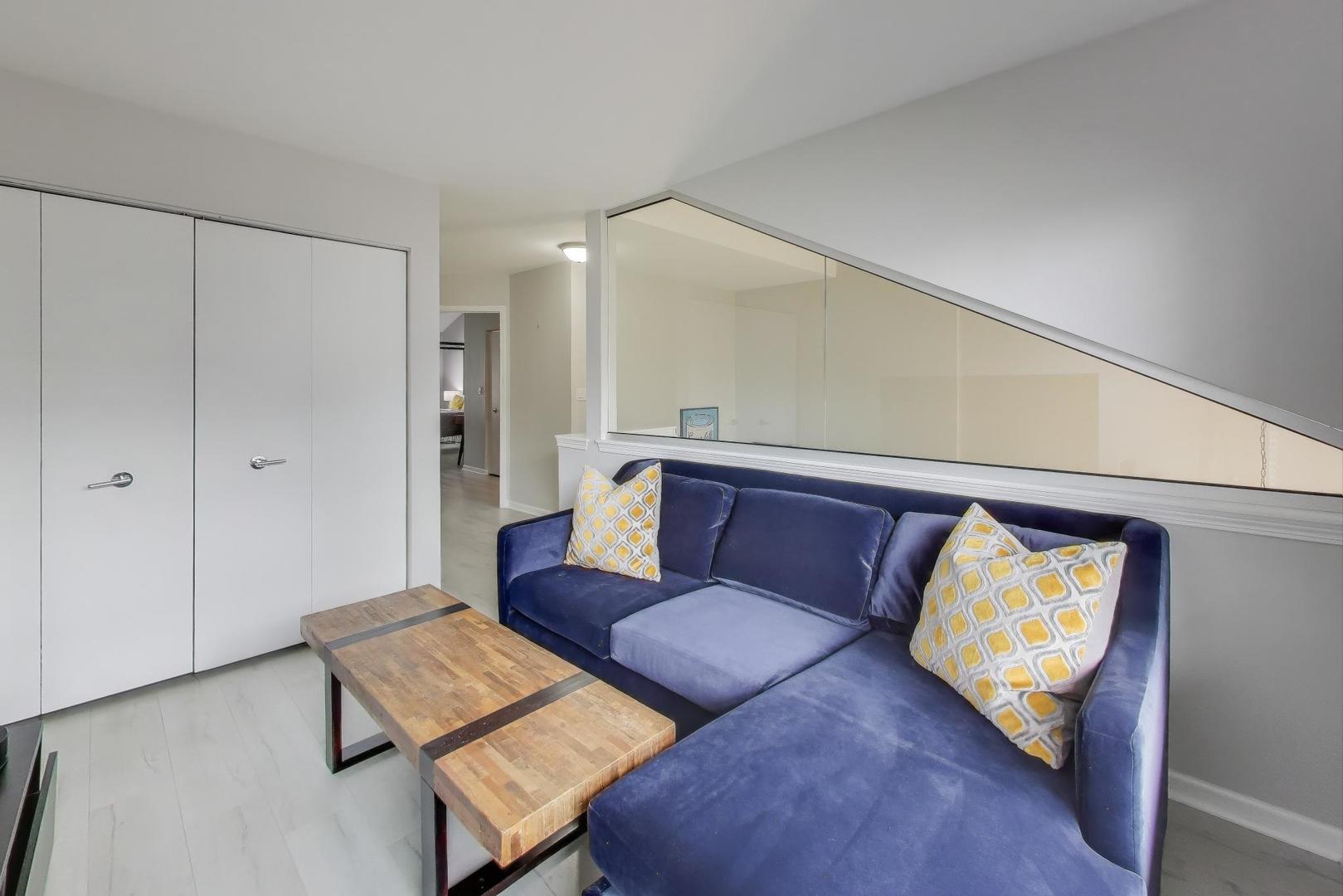 Welcome to 8 Donald Ct in Elmhurst. This two bed two and a half bath townhome features a sleek and sophisticated interior with a bright, open floor plan enhanced by vaulted 9-foot ceilings, transom windows, and dramatic design elements. The main level boasts polished porcelain tile flooring paired with a rich carpet runner on a stylish turned staircase. The kitchen showcases white shaker cabinets, solid quartz countertops, classic subway tile backsplash, crystal pendant lighting, and stainless-steel appliances. All three bathrooms have been upgraded with elegant tile work, shaker-style vanities, and contemporary glass enclosures. The primary suite includes durable wood-look laminate flooring, a full bathroom, and a well-organized walk-in closet. A professionally enclosed 2nd floor loft with glass walls lets in natural light-ideal for a media room or home office. Located near Drury Lane Theatre, Oak Brook Mall, top-tier dining, and with quick access to I-294, I-88, O’Hare Airport, and downtown Chicago (under 20 minutes). Low taxes and HOA dues-just move in and enjoy!