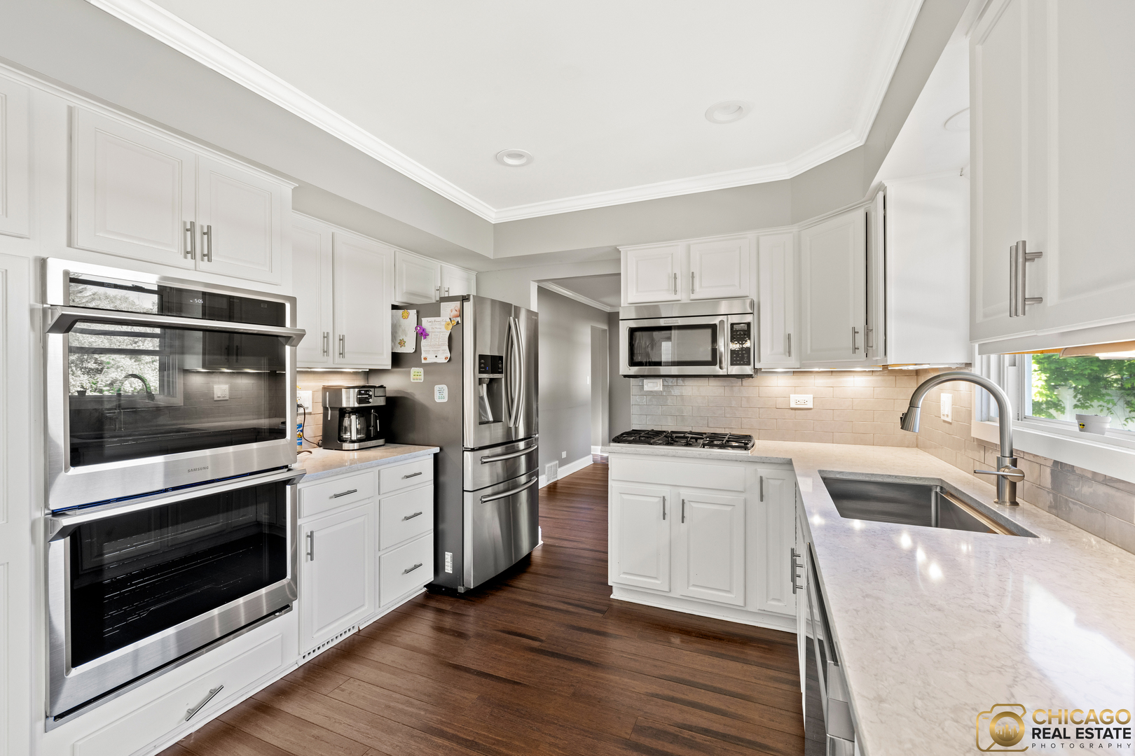 Rarely available Gramercy model with basement in the sought after Strathmore neighborhood has been lovingly maintained by its longtime owners! Tucked into the neighborhood directly across from Ivy Hall Elementary School and Ivy Park and in the Stevenson High School district, this 4 bedroom, 2.5 bath house is a true gem! The kitchen is the heart of the home with white cabinetry, quartz countertops, new stainless steel appliances including a double oven, and an eat-in area. The home flows seamlessly into the family room with a cozy fireplace, separate dining room perfect for entertaining, plus a formal living room with french doors. The first floor laundry room features a new washer and dryer and leads into the 2-car garage. The updated half bathroom completes the main floor. Upstairs find the large primary bedroom with an updated en-suite, plus 3 generously sized bedrooms and updated shared bathroom. The unfinished basement offers tons of additional space, plus extra storage in the crawl. The large backyard is your private oasis and has recently been fenced. So much has been updated in this home including roof (2023), a/c (2024), bamboo hardwood floors throughout (2023) and new driveway and walkway (2021). Welcome home!