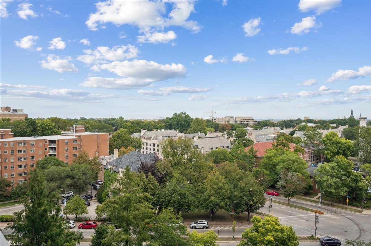 Enjoy beautiful lake and city views from floor to ceiling windows in this immaculately maintained ONE bedrooms PLUS Den. The centrally located galley kitchen offers abundant prep and storage space. The kitchen’s location divides the large main area into two (2) additional spaces – a substantial dining area and considerably sized living space. The den offers flexibility of living and can be used as a guest room, office or even a dining room. The unit is positioned at the bend of building’s hallway which provides extra space for a large additional closet. All closets are custom designed with multiple drawers and plentiful hanging space. The luxury vinyl flooring throughout the home is a soft shade of grayish/tan complimented by walls painted a peaceful shade of frost grey. The unit is complimented by a large covered balcony with electric, full set of appliances including a flat cooking surface as well as a stacked washer and dryer. The Optima Horizons is a full amenity building offering door staff, indoor heated pool/hot tub, outdoor patio with tables and grills as well as a well designed fitness center. Unit 1013 transfers with indoor parking and a full sized storage cage. This is a prime downtown location with easy access to Northwestern University, the Metra, El (purple line), restaurants and retail.