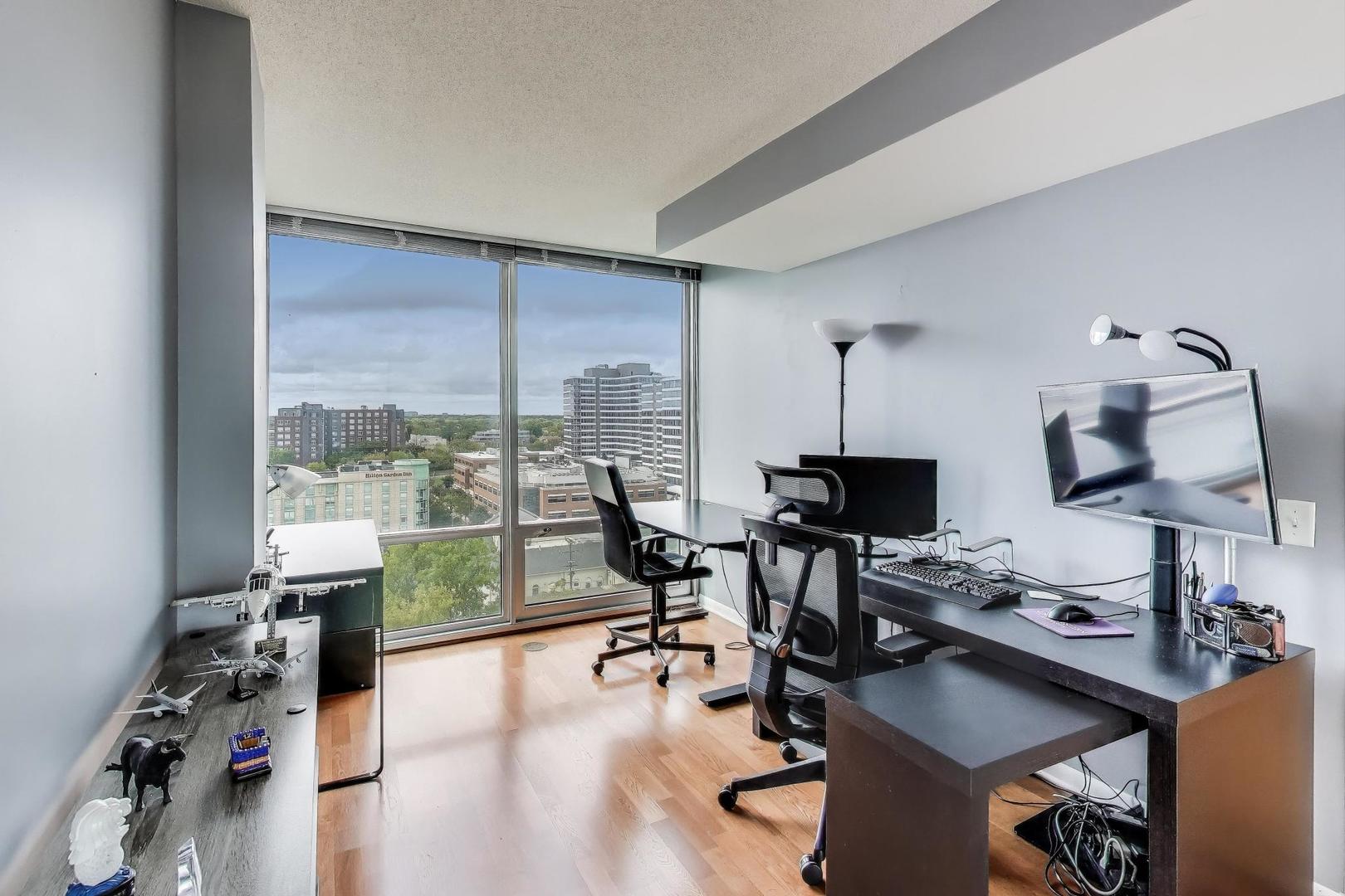Downtown Evanston Living at Its Best! This high-floor 2-bedroom PLUS DEN condo at Optima Horizons offers unobstructed western views and one of the building’s most spacious layouts. The sun-filled living room, floor-to-ceiling windows, and private balcony create the perfect setting to enjoy stunning views and sunsets-and yes, grilling is allowed! The open kitchen features granite counters, stainless-steel appliances, and a seamless flow into both the separate dining area and living room. The versatile den is ideal as a home office or guest space and is enhanced with custom cabinetry for additional storage. Hardwood floors throughout, a large primary suite with Elfa-organized closet, and in-unit laundry add to the appeal. (2) deeded garage parking spaces plus storage are included. Optima Horizons is a full-amenity, pet-friendly building with full-time door staff, indoor pool, fitness center, sun deck/garden terrace with grills, and on-site management. Prime location-just blocks to the NU campus, the Lake, bike paths, Metra, shops, restaurants, and theaters. Move-in ready!