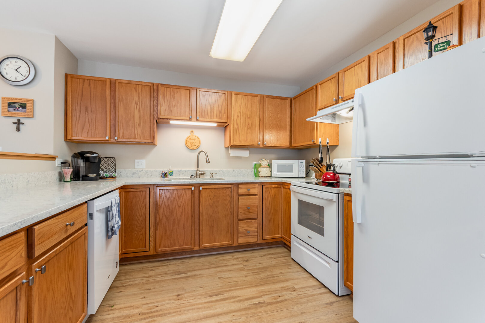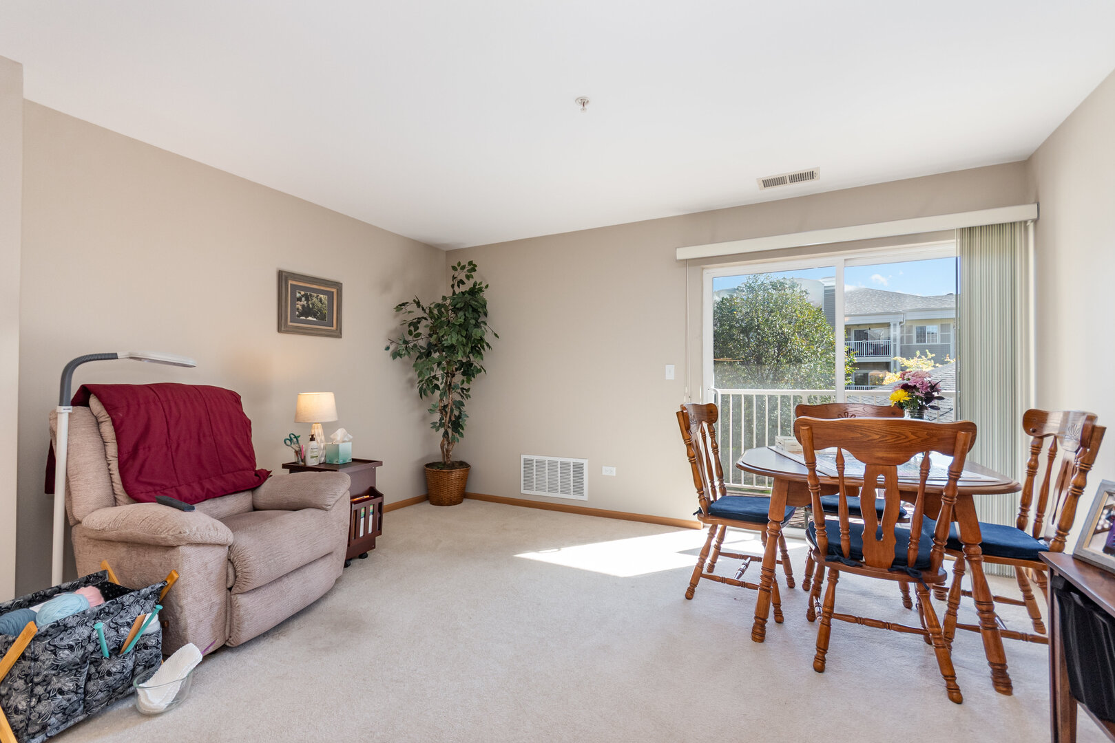 Rare Corner Unit in Premier 55+ Community – Light-Filled & Move-In Ready. Step into a bright, south and east facing corner unit in the coveted The Greens of Elgin. Natural light floods the open, neutral-toned living spaces, while generous room sizes and abundant closet space give you room to breathe and storage to spare. The kitchen shines with large quartz countertops that elevate daily living into something special. But the home isn’t the only draw. This is one of the region’s most desirable Active Adult (55+) communities, and the monthly assessment of $1,971 offers exceptional value: weekly housekeeping and linen service, all utilities and cable, 20 meals each month, scheduled van transportation, secure front-desk staffed entry, and routine maintenance. Shared amenities include a formal living room, cozy sunroom, music area, library, fitness center, beauty shop and nail salon – designed so you can relax, connect and live fully without compromise. The dining room and active events calendar foster a genuine sense of community where neighbors become friends. (Cats allowed only on 2nd & 3rd floors.) If you’re looking for convenience, comfort and camaraderie in one package, this unit checks every box.