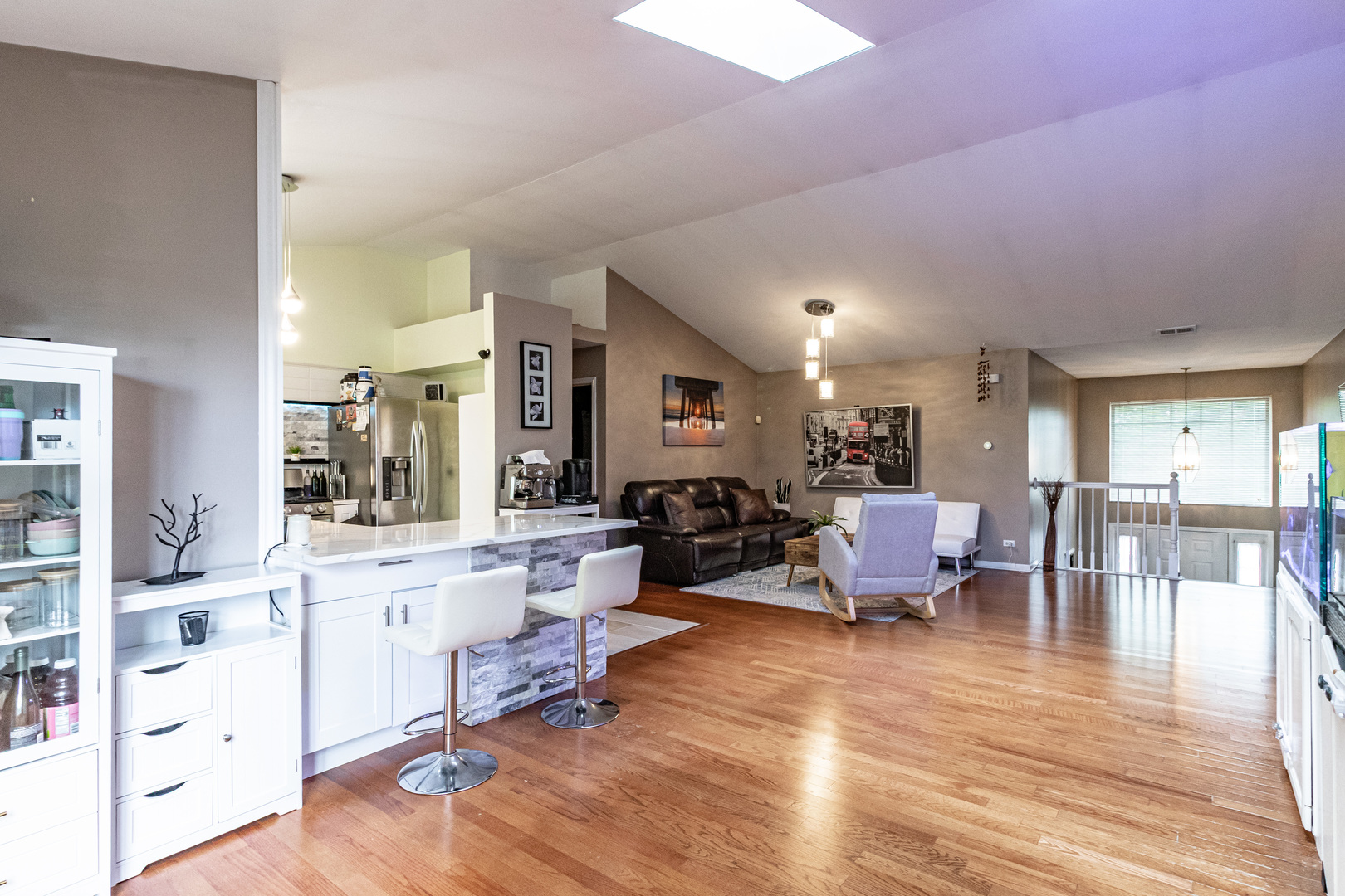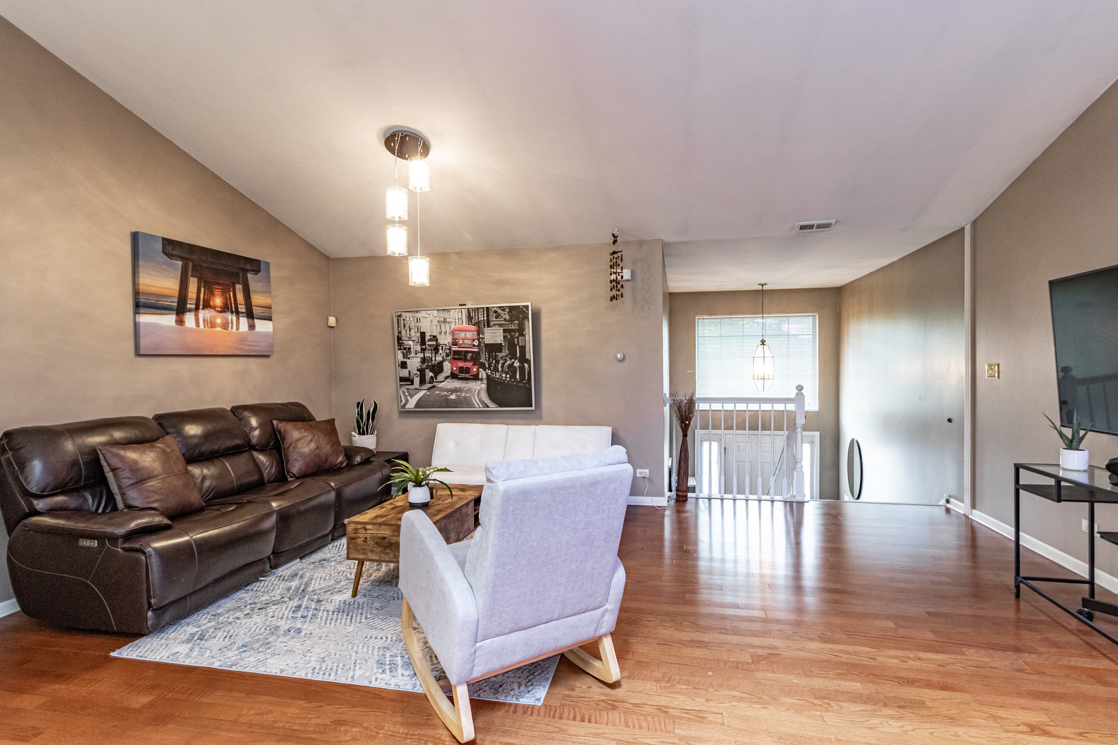 This beautifully updated 2-bedroom, 2-bathroom second-floor ranch model offers a spacious layout with vaulted ceilings, abundant natural light, and modern finishes, making it truly move-in ready. The home offers Smart dimmable LED light in the living room and kitchen and Smart Thermostat that can be controlled by either Google or Alexa. The open-concept living room features vaulted ceilings and skylights that fill the space with sunshine, while the separate dining room and eat-in kitchen create the perfect setting for both everyday living and entertaining. The updated kitchen, completed in 2022, boasts new cabinets, Quartz countertops, and appliances including refrigerator, cooktop, oven, dishwasher, microwave, and garbage disposal. Sliding glass doors lead from the kitchen to a private balcony, ideal for enjoying a quiet morning coffee or even barbecuing. (HOA allows gas grills on the patio). Hardwood and tile floors run throughout the home with no carpet, and the laundry room is equipped with a newer stackable washer and dryer (2022). The spacious primary suite includes a walk-in closet and a large bath with a walk-in shower and separate soaking tub. Fresh paint throughout the second floor (2022) enhances the home’s bright and welcoming feel. Major updates have already been taken care of, including a new roof and siding (2024) (All included with HOA) and a new driveway (2025) (Also included with HOA). Additional highlights include an attached two-car garage, a private balcony, and walking distance to the highly sought-after Conant High School district. The location is unbeatable-just minutes from I-90/53/290, Woodfield Mall, shopping, dining, 4 golf courses within 10 mins, entertainment, Harper college, and 3500+ acre Busse woods that offers various outdoor activities such as trails that extend the total distance to nearly 13 miles, boating/kayaking, fishing and picnicking. Don’t miss the chance to own this beautifully maintained, move-in ready Brookstone townhome FREE OF EXTERIOR MAINTENANCE! Services Include: Roofing, Driveway, Exterior Painting, Garbage Pick-up, Common Area water supply, Insurance, Lawn Care, Plants and Snow Removal. INVESTORS WELCOME GREAT RENTAL OPPORTUNITY.