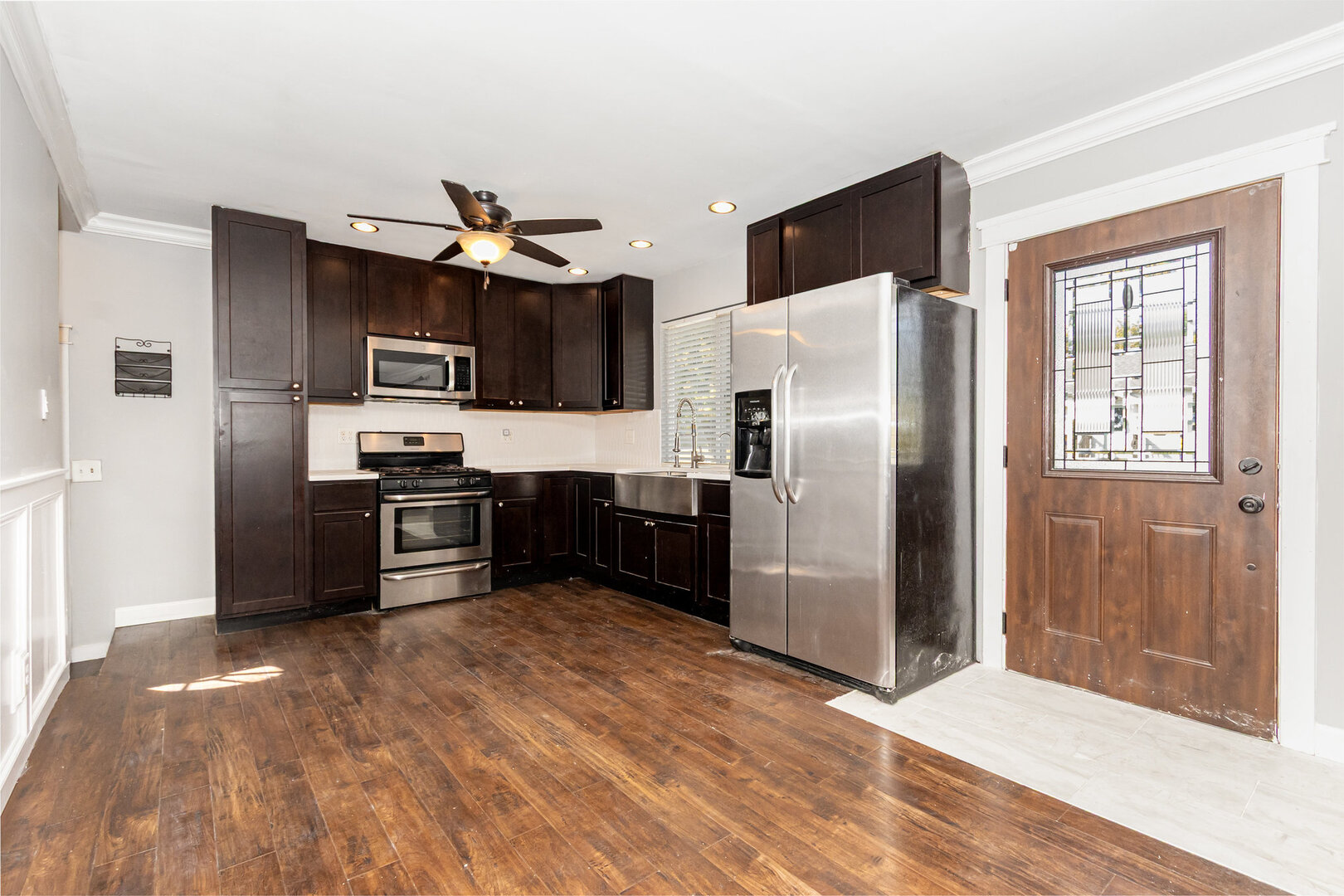 Welcome to this updated ranch home offering a perfect blend of modern finishes and functional space. From the moment you arrive, the inviting curb appeal and charming front porch set the tone for what’s inside. Step into a bright living room with large windows that bring in plenty of natural light. The open floor plan flows seamlessly into the dining and kitchen areas, creating the ideal space for entertaining. The living room’s accent wall adds character, while hardwood floors extend throughout the main living areas for a warm and cohesive feel. The kitchen features dark cabinetry, stainless steel appliances, a farmhouse sink, and ample counter space. Whether you’re cooking for one or hosting friends, this kitchen is designed to impress. Three well-sized bedrooms provide flexibility for family, guests, or a home office. The full bathroom has been tastefully updated with a modern vanity, fixtures, and tiled finishes. Downstairs, the basement offers additional living and storage options, ready to be tailored to your needs – from a rec room to a home gym. Outside, enjoy a spacious yard, storage shed, and detached garage for extra convenience. This home combines charm, updates, and versatility – ready for its next chapter. Schedule your showing today!