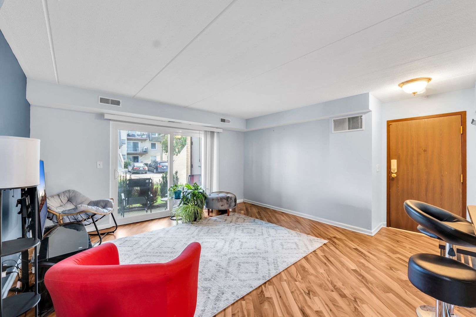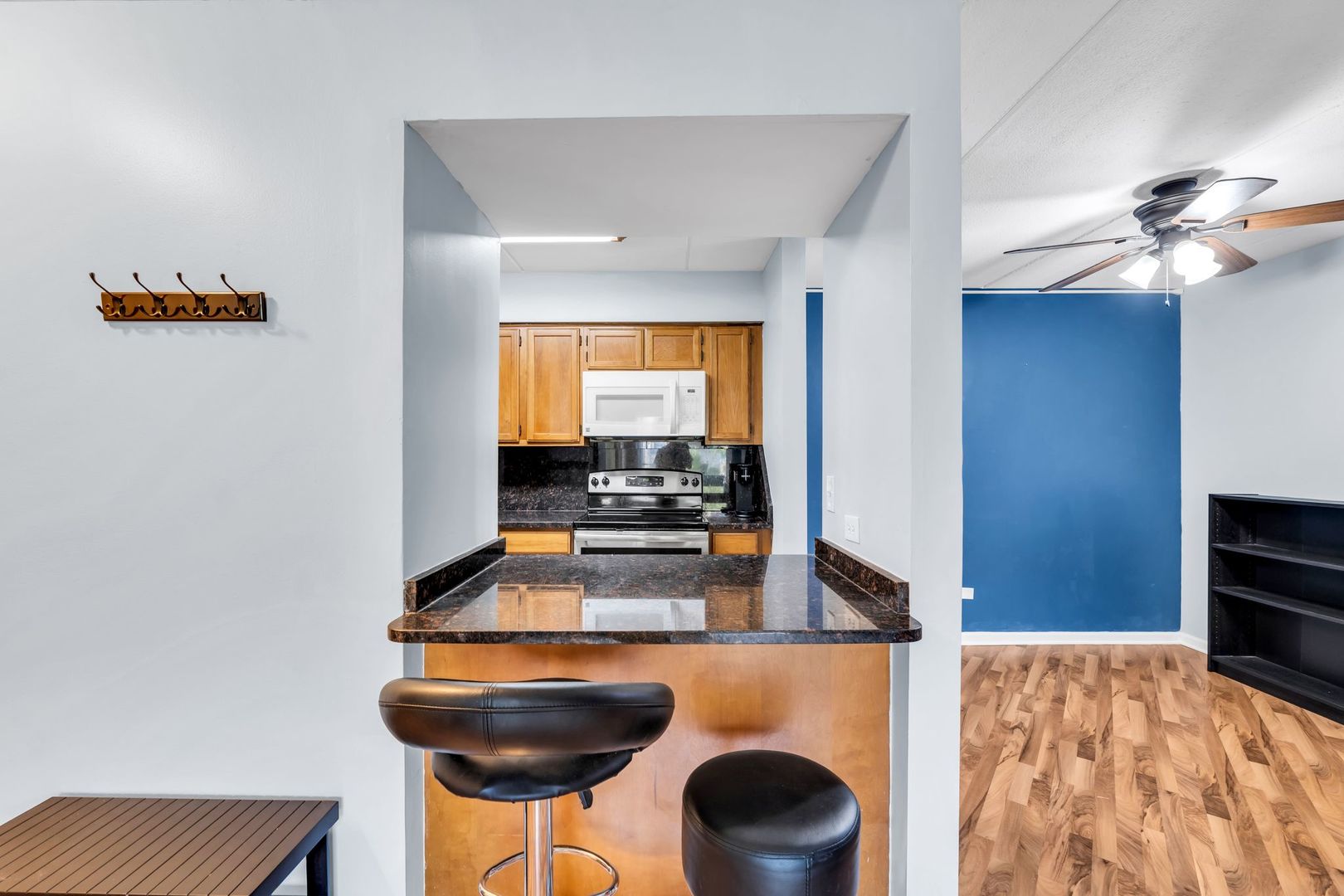 Freshly painted and move-in ready! This first-floor condo in McDonald Creek offers 2 bedrooms and 1 updated full bath. The kitchen features granite countertops, a breakfast bar, and stainless steel appliances (microwave excluded). The open living and dining area provides a comfortable layout. Both bedrooms are generously sized, with the primary bedroom offering a walk-in closet plus an additional closet for extra storage.Enjoy the convenience of one assigned parking space (#52), unassigned parking options, and temporary guest parking. Additional perks include a storage locker and coin laundry on the same floor.Located in a top-rated school district with River Trails Middle School and John Hersey High School. Close to shopping, dining, and everyday conveniences. Water heater 2025