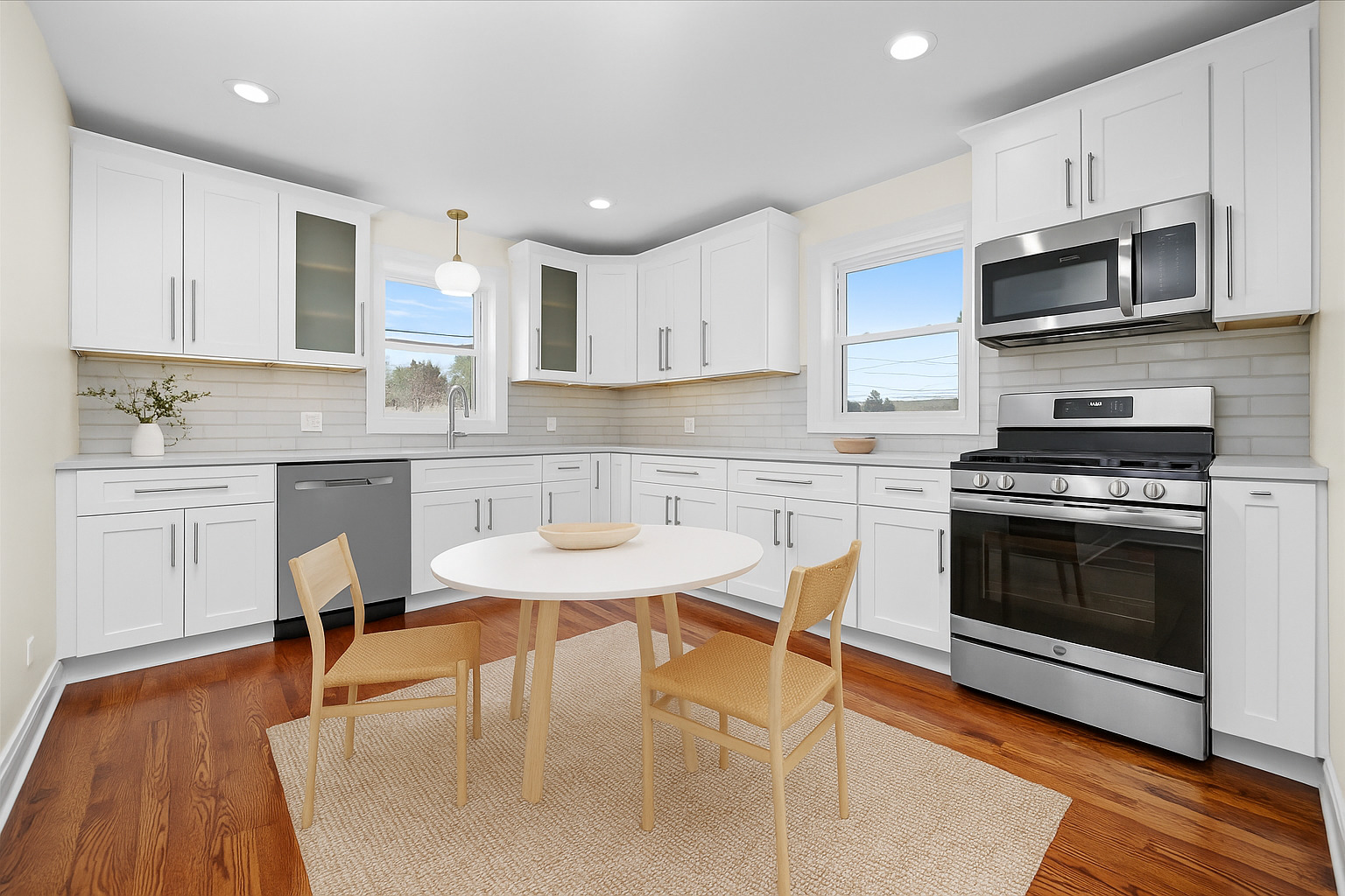 The builder took this home down to the studs and fully renovated every single inch of this home adding two new bedrooms and a second bathroom, porcelain tile in both bathrooms, kitchen is brandnew stainless steel appliances — refrigerator, stove, microwave dishwasher. hardwood floor on 1st floor and staircase, carpet on 2nd floor, engineered flooring in basement, laundry room in basement, built a new detached 2 car garage and also an added feature there is a sidelot with many options for the buyer whether they add a driveway for added parking, pool or a garden — whatever suits the future homeowner’s idea of their home and lifestyle. Agent interest.