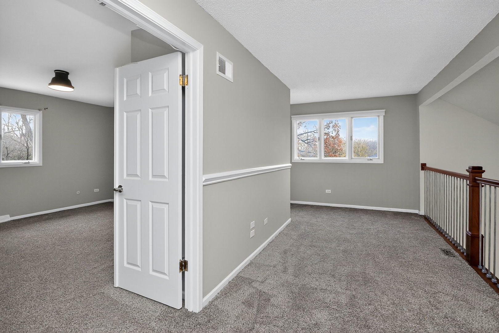 Beautifully updated 4-bedroom, 2.1-bath home offering nearly 3,000 sq ft of living space, a full finished walkout basement, and a private wooded lot in highly desirable Lemont. Hardwood floors span the main level, where an open living/dining room with soaring vaulted ceilings sets an impressive tone. The kitchen features white cabinetry, extensive counter space, stainless steel appliances, and a new dishwasher (2024) a fantastic layout with plenty of flexibility to customize your dream kitchen. Just off the kitchen, the sunken family room delivers a comfortable gathering space with a brick gas fireplace, gas logs, and built-ins on both sides. From the family room, step into the heated three-seasons room (2020), a year-round space that, along with the kitchen, opens to the expansive Trex deck (2020). The deck’s integrated gutter system keeps the patio below dry, creating multiple outdoor entertaining zones. A main-level half bath adds convenience, and the entire home has been freshly painted for a clean, move-in-ready feel. Upstairs, the primary suite boasts a private Trex balcony, dual walk-in closets, and a spacious bath area ready for your vision. Two oversized bedrooms, a loft, and a second full bath ensuite to one of the bedrooms complete the upper level. The fully remodeled walkout basement (2023) offers high ceilings, LVP flooring, a generous living area with wet bar, an additional room, an exercise room with a rock wall, laundry with utility sink, and excellent storage, with sliding doors leading to a lower patio overlooking the wooded lot. Additional updates include a water heater (2022), roof (2023), whole-house water filtration system, new carpet (2025), and main-level flooring (2023). A 2.5-car garage with high ceilings rounds out the home with outstanding storage, all located minutes from downtown Lemont, award-winning schools, parks, trails, restaurants, and shopping.