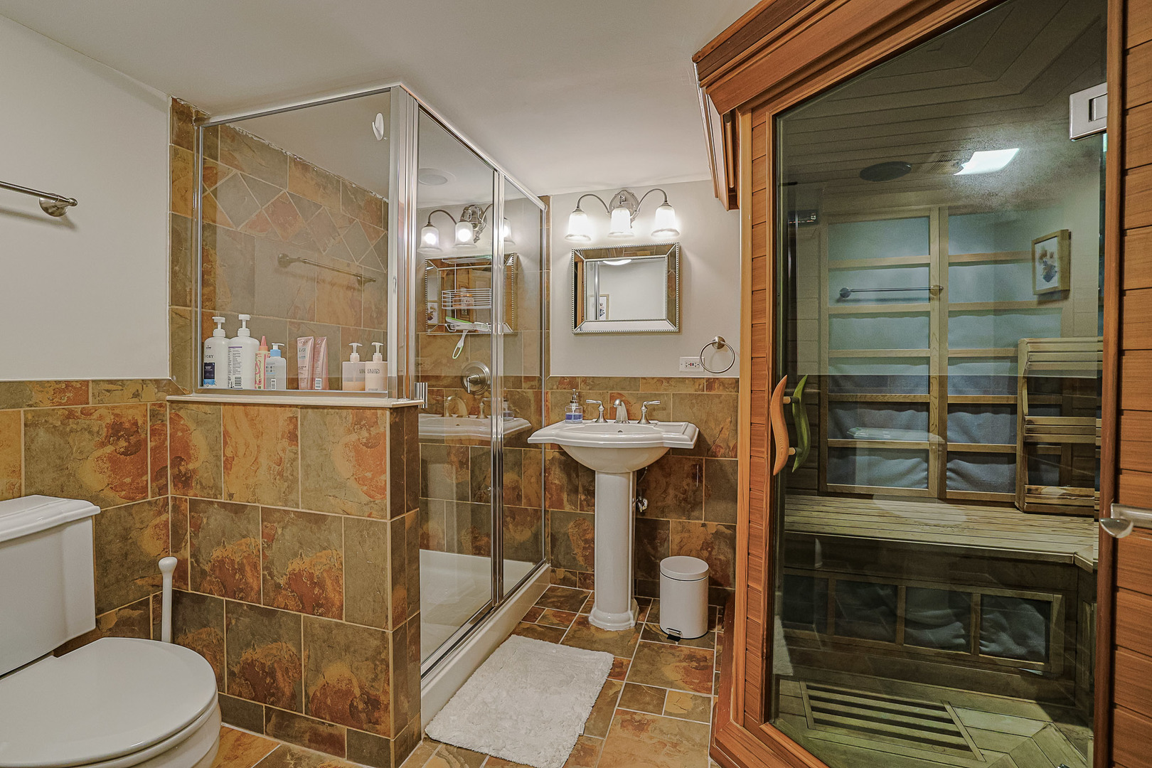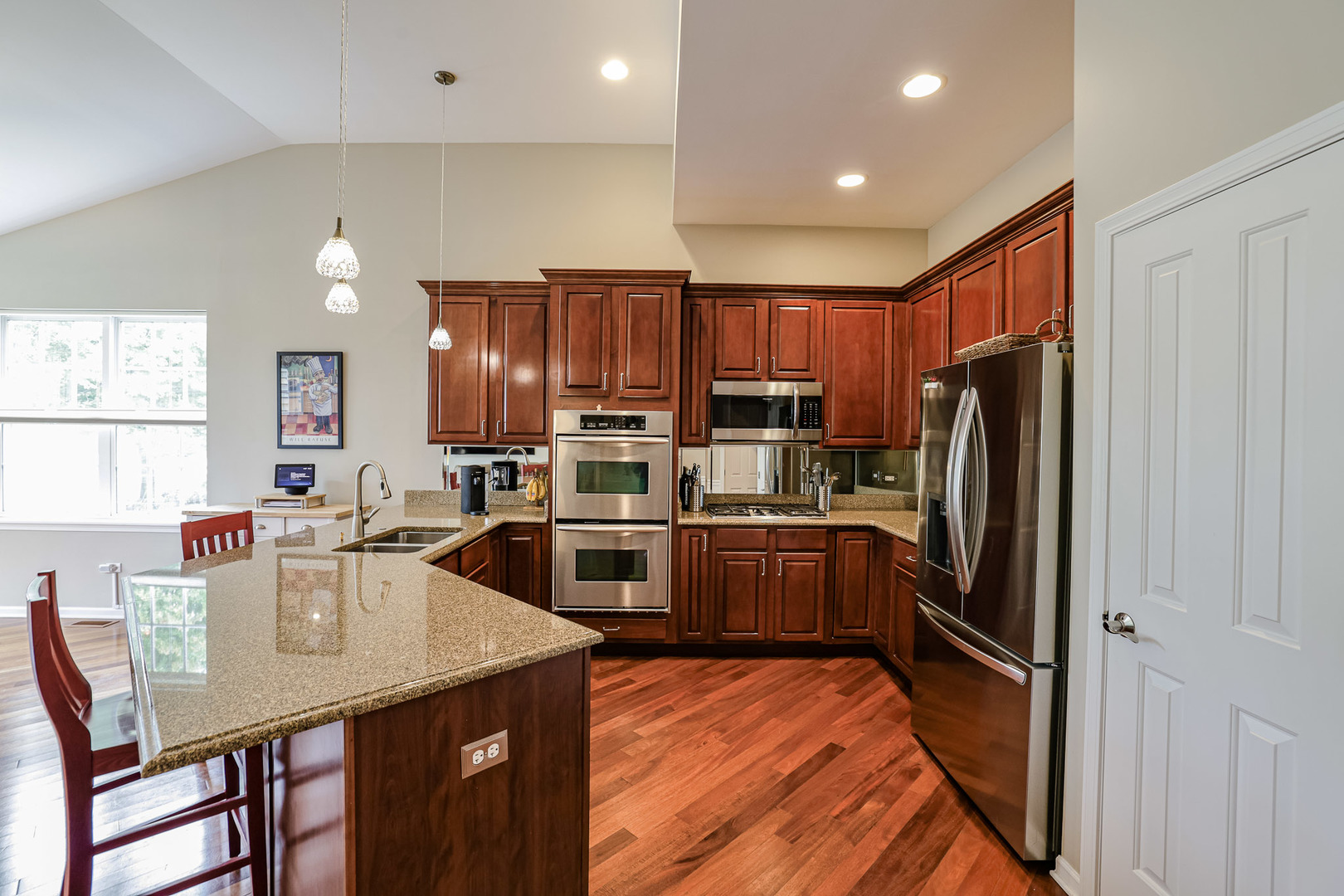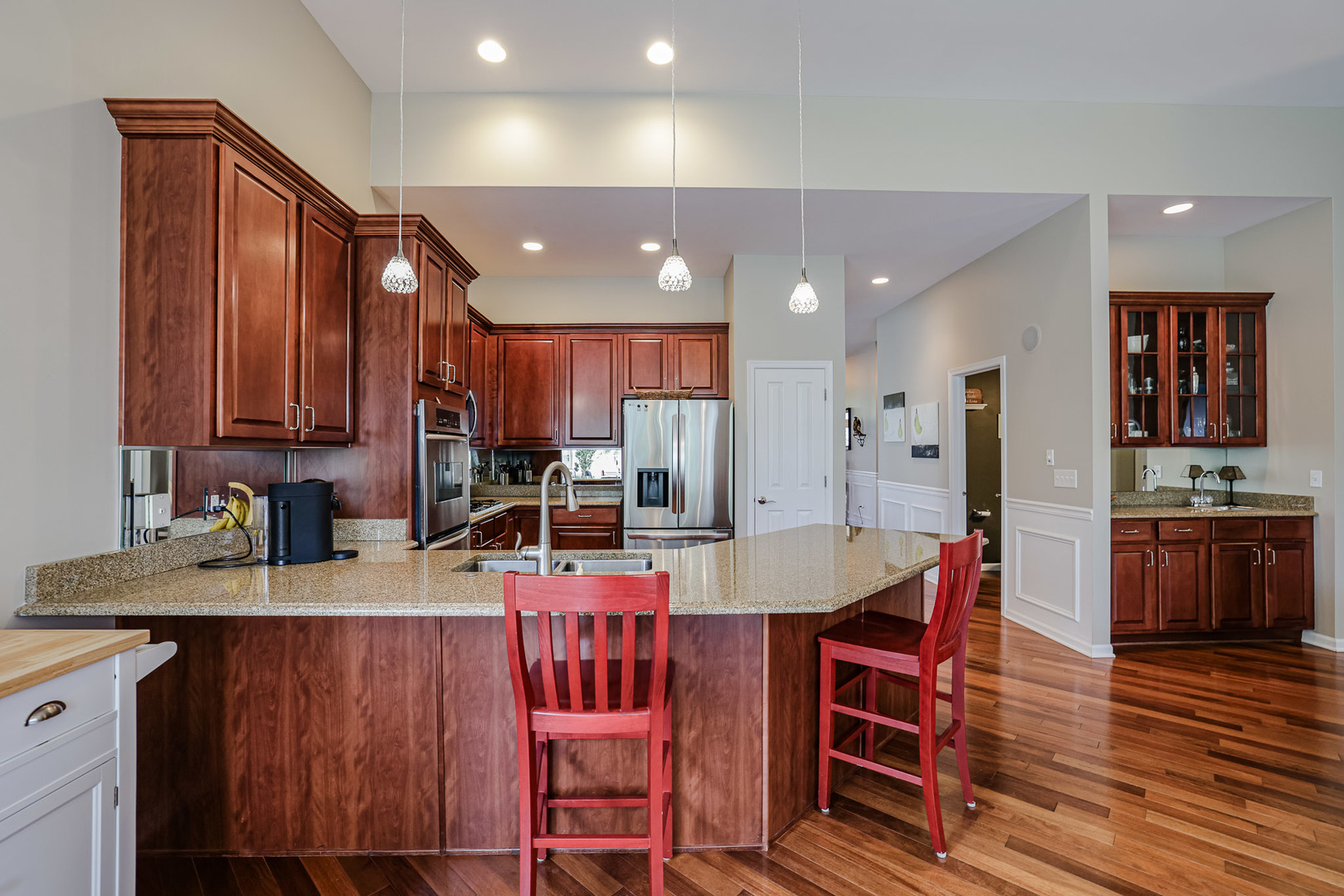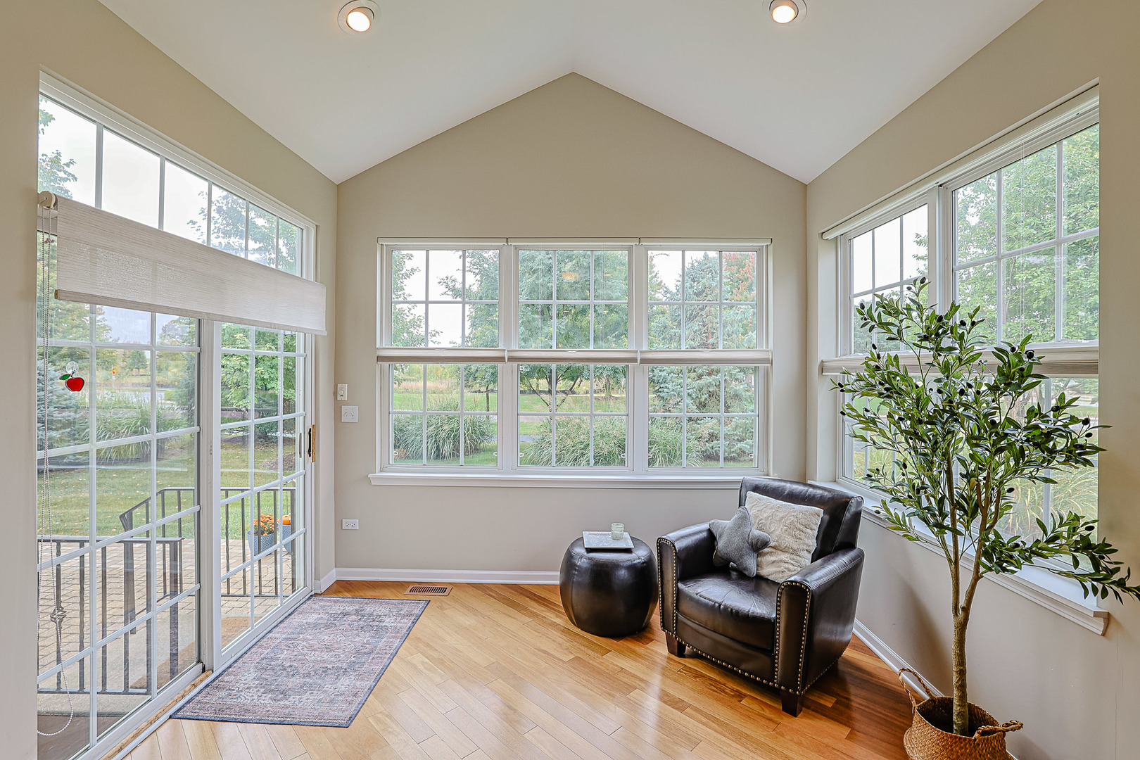 Must see in person! This recently painted home has so much storage and so many upgrades like architectural ceilings, gorgeous hardwood floors, and a suana just to name a few! The first floor primary suite includes vaulted ceilings with a walk in closet and organizer, a second separate closet, and private bath with shower and dual sinks at gentlemen’s height. The first floor also includes a formal dining room and office that could be used as a fourth bedroom. The kitchen has tall cabinets with stainless steel appliances, a new refrigerator, granite countertops and a pantry closet. There’s a spacious eating area that opens to the sunroom that looks out at a lush backyard with pergala and no neighbors behind the home. The family room has a cozy fireplace with lots of light from surrounding windows and a wet bar with glass cabinets that coordinate with the kitchen. Upstairs there’s a loft that’s hardly been used with a giant closet and a huge bedroom with a walk in closet, and a bathroom with a separate linen closet. The finished basement was professionally remodeled in 2023 and includes a full bathroom with a built in sauna, a bedroom with a walk in closet, two storage rooms, and a huge family room that also has space for workout equipment and a bar. Located close to our neighborhood clubhouse with family and adult swimming pools, workout rooms, tennis/pickleball courts, ponds and walking trails. Just minutes from shopping and diningdinning! This is an active adult 55+ community. HOA does all the snow removal and lawn care so you can relax and enjoy. Come see your new home!
