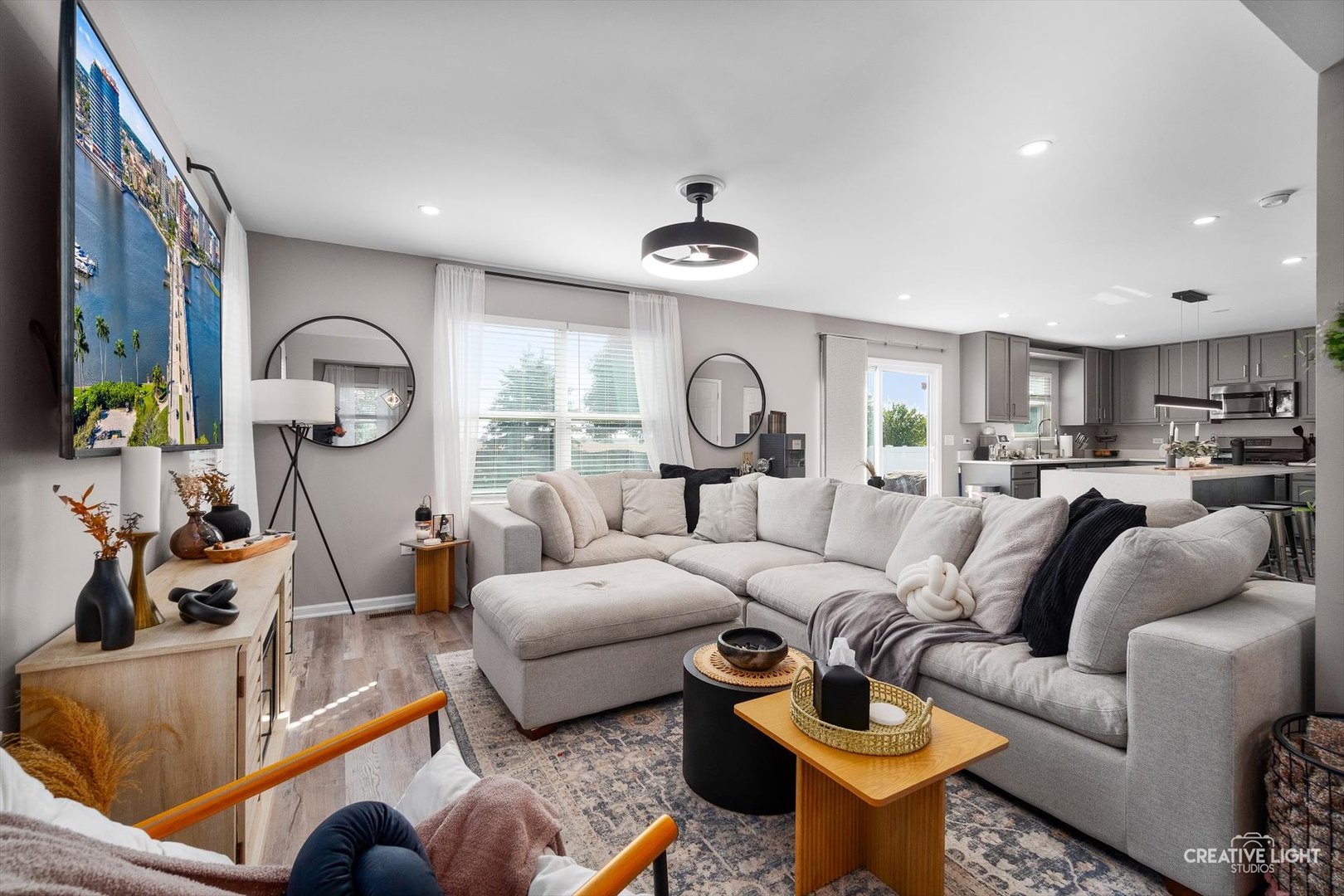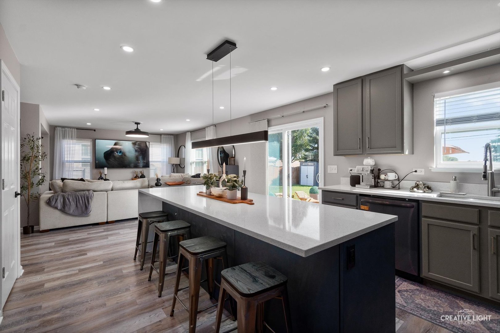 Welcome to this beautifully remodeled 3-bedroom, 2.5-bath contemporary home filled with natural light and modern updates throughout. The heart of the home is the stunning kitchen, featuring a spacious island, New Quartz countertops, sleek stainless steel appliances, luxury vinyl plank floor throughout 1st floor, and an open layout that flows seamlessly into the adjoining family room. From here, sliding glass doors lead to a fully fenced backyard, perfect for entertaining and outdoor enjoyment. A convenient first-floor laundry room adds to the functionality of the home. Upstairs, the primary suite impresses with vaulted ceilings, a walk-in closet, and a private ensuite bath. Each additional bedroom is generously sized, offering comfort and flexibility for family, guests, or a home office. The fully finished basement provides even more living space, including a bonus room ideal for a playroom, gym, or media room. Located in the sought-after Minooka School District, this home is close to schools, shopping, and offers easy access to I-80 for commuting. Don’t miss the opportunity to make this move-in ready home yours! Updates include recessed lighting, new light fixtures, smart lighting, smart thermostat, solar panels, and new A/C unit.