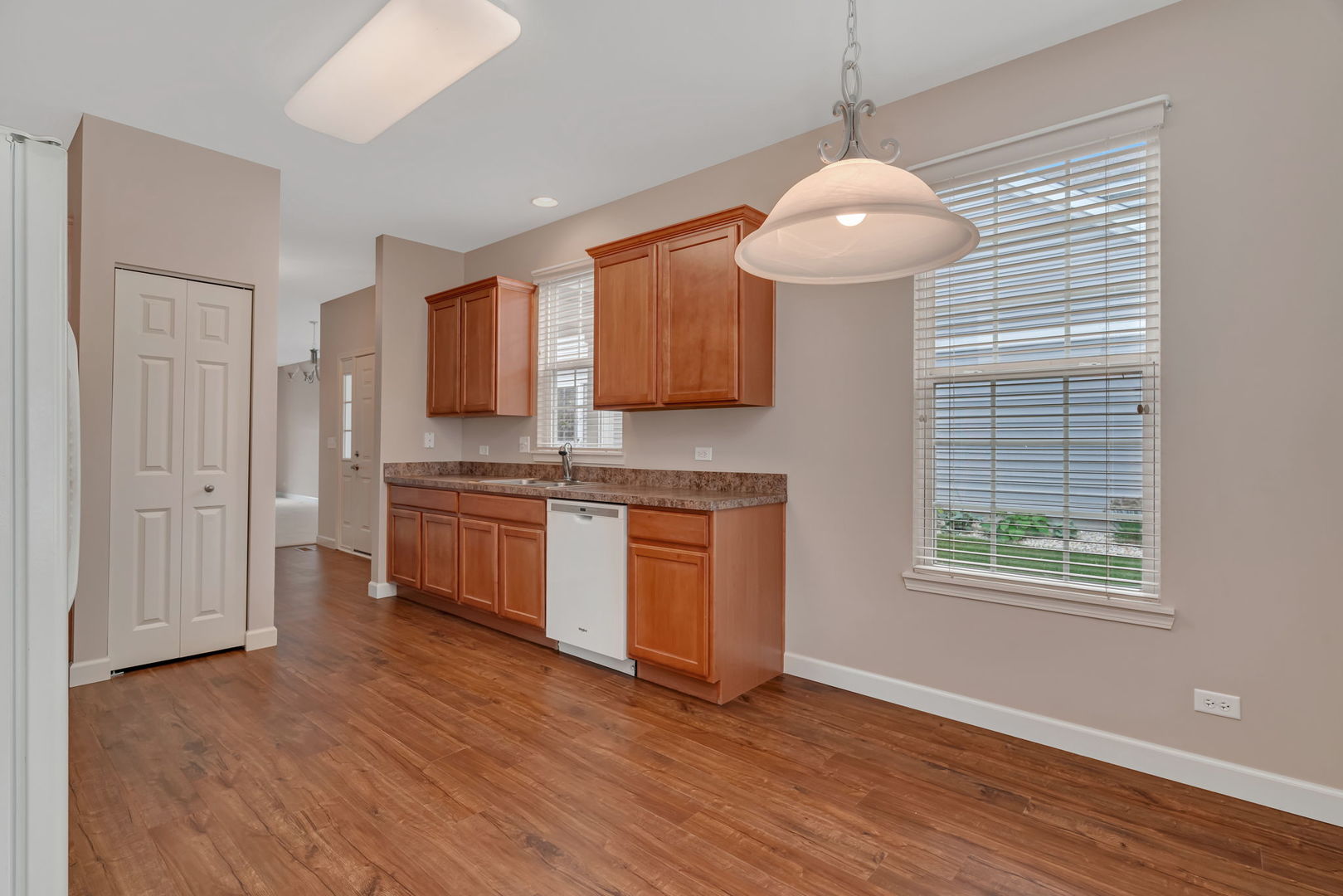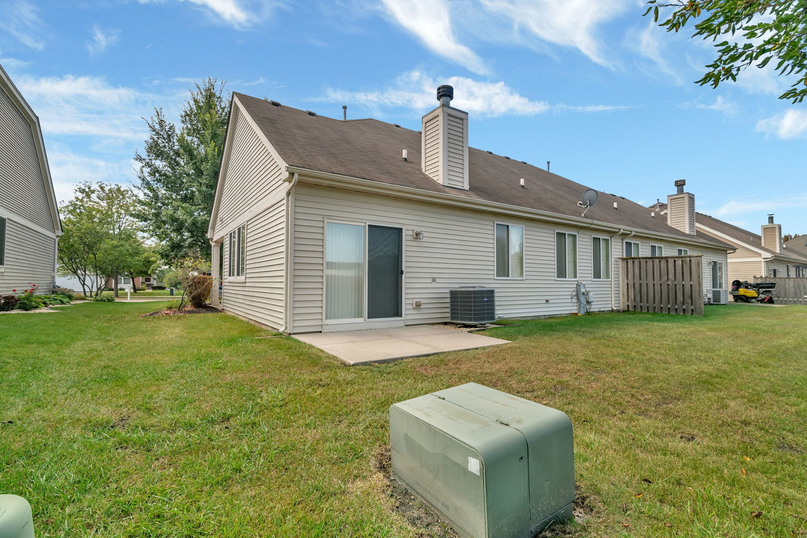 Beautifully maintained and move in ready. 2 bedroom, 2 bath, ranch duplex with 2 car garage. Eat in kitchen with maple cabinets. All appliances stay including washer and dryer. Living room and dining room combo with 9-foot ceilings and gas start fireplace. Sliding glass door leading to the backyard patio with no backyard neighbors. Master bedroom has its own private bath with double sinks, soaker tub, separate shower and walk in closet. Bedroom two is also spacious and has another full bath right across the hall. White 6 Panel Doors and Trim. Custom wood blinds throughout. Laundry room is spacious too. Central AC only 2 years. Gutter guards. Living in this subdivision allows you access to the clubhouse/pool/fitness center. Lawn care & snow removal also included in the HOA fees. Home is in great shape but is being sold as-is. Come see for yourself. Quick close is possible.
