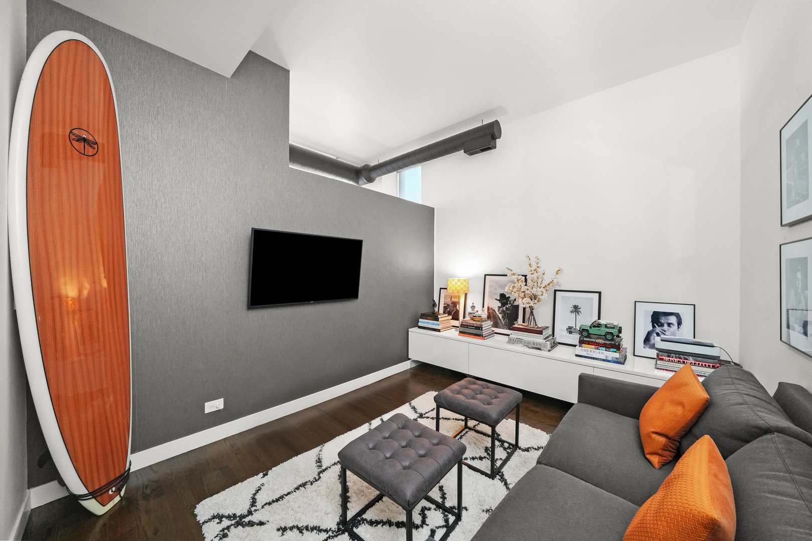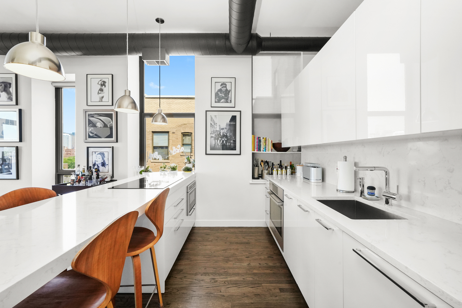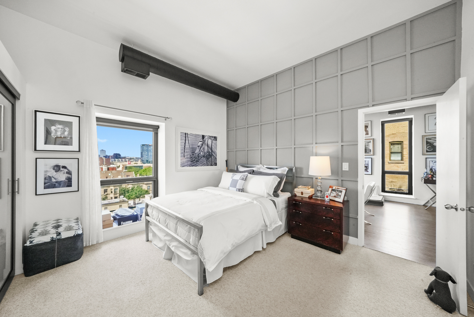 Welcome to your urban oasis in the heart of Little Italy-just steps from the West Loop and Pilsen! This stunning northeast corner 2 bed, 2 bath loft offers refined finishes and modern luxury, all wrapped in a uniquely stylish design. Enjoy breathtaking, unobstructed skyline views from both your private balcony and expansive floor-to-ceiling windows that flood the space with natural light. Soaring ceilings and rich hardwood floors add a sense of warmth and sophistication throughout. The chef-inspired kitchen is outfitted with Poggenpohl cabinetry and high-end Bosch appliances, including an induction cooktop, convection oven, microwave drawer, and whisper-quiet dishwasher. A large, integrated refrigerator/freezer with dual compressors blends seamlessly into the space. At the center, a Cambria quartz waterfall island provides both a show-stopping centerpiece and comfortable seating for four. The primary suite is a true retreat, featuring custom closets and a spa-like ensuite bath with a floating European vanity and durable porcelain tile for effortless luxury. The second bedroom, currently used as a den, includes a custom closet and a sliding barn door for added character and privacy. The second bathroom is equally elevated, featuring Nero Marquina herringbone marble flooring, a Carrera marble walk-in shower, and a floating vanity. Residents enjoy a well-managed building with a newly renovated lobby, upgraded exercise room with all-new equipment, and a shared rooftop deck perfect for enjoying city views. Heated garage parking is an additional 35k. Located in one of the city’s most exciting and walkable areas, you’re just moments from restaurants, parks, and all the culture the West Loop, Little Italy, and Pilsen have to offer. This isn’t just a home-it’s a lifestyle. Explore in 3D-click the virtual tour button to walk through every detail!