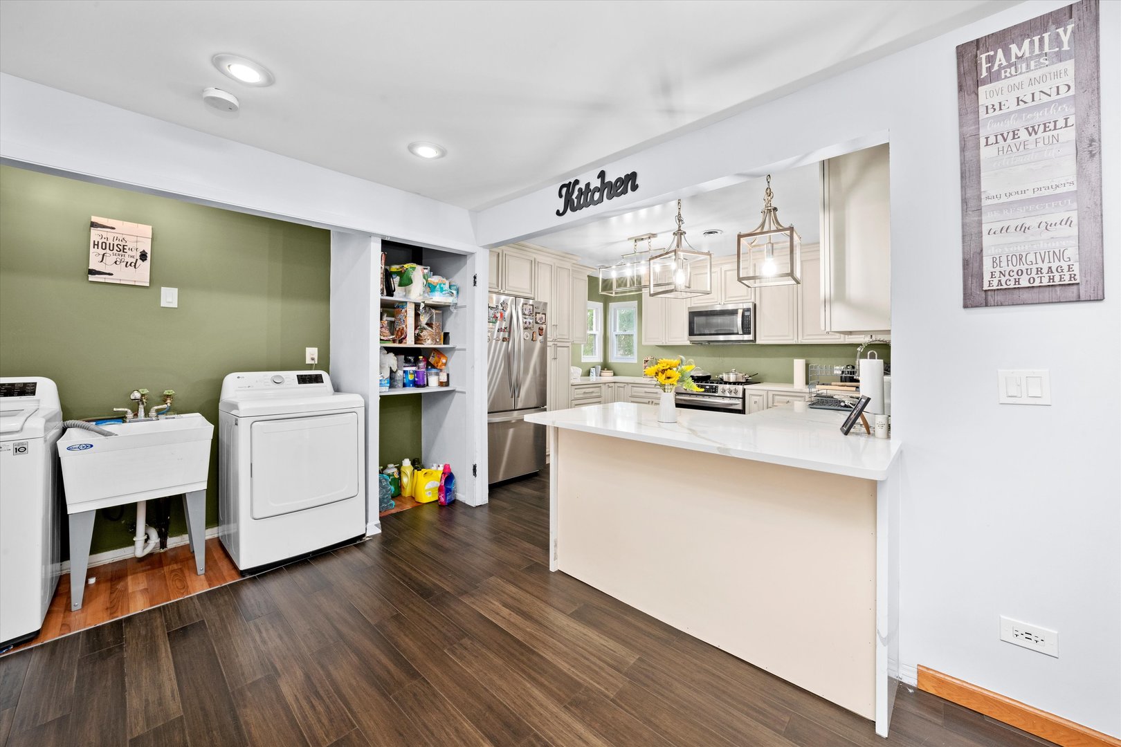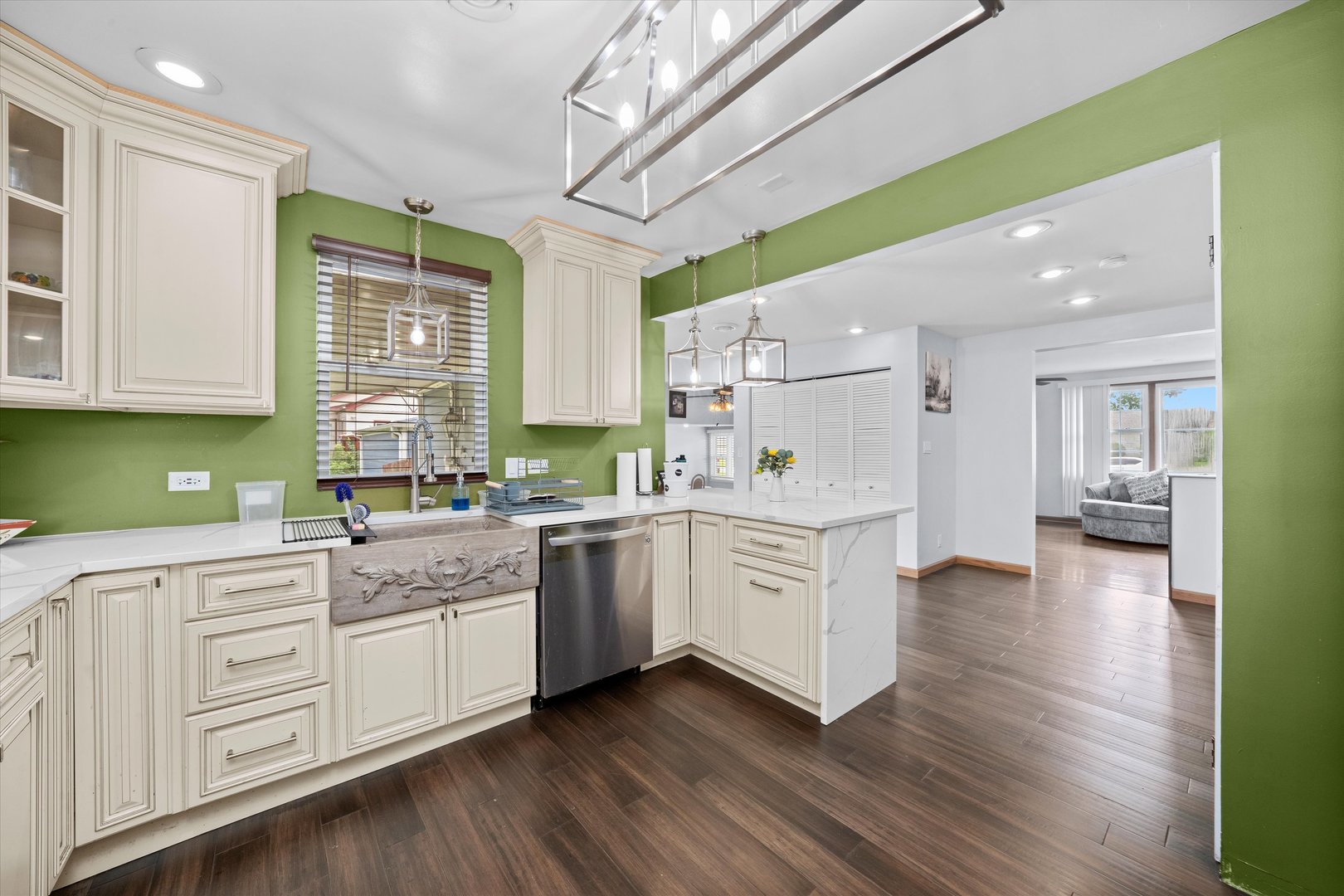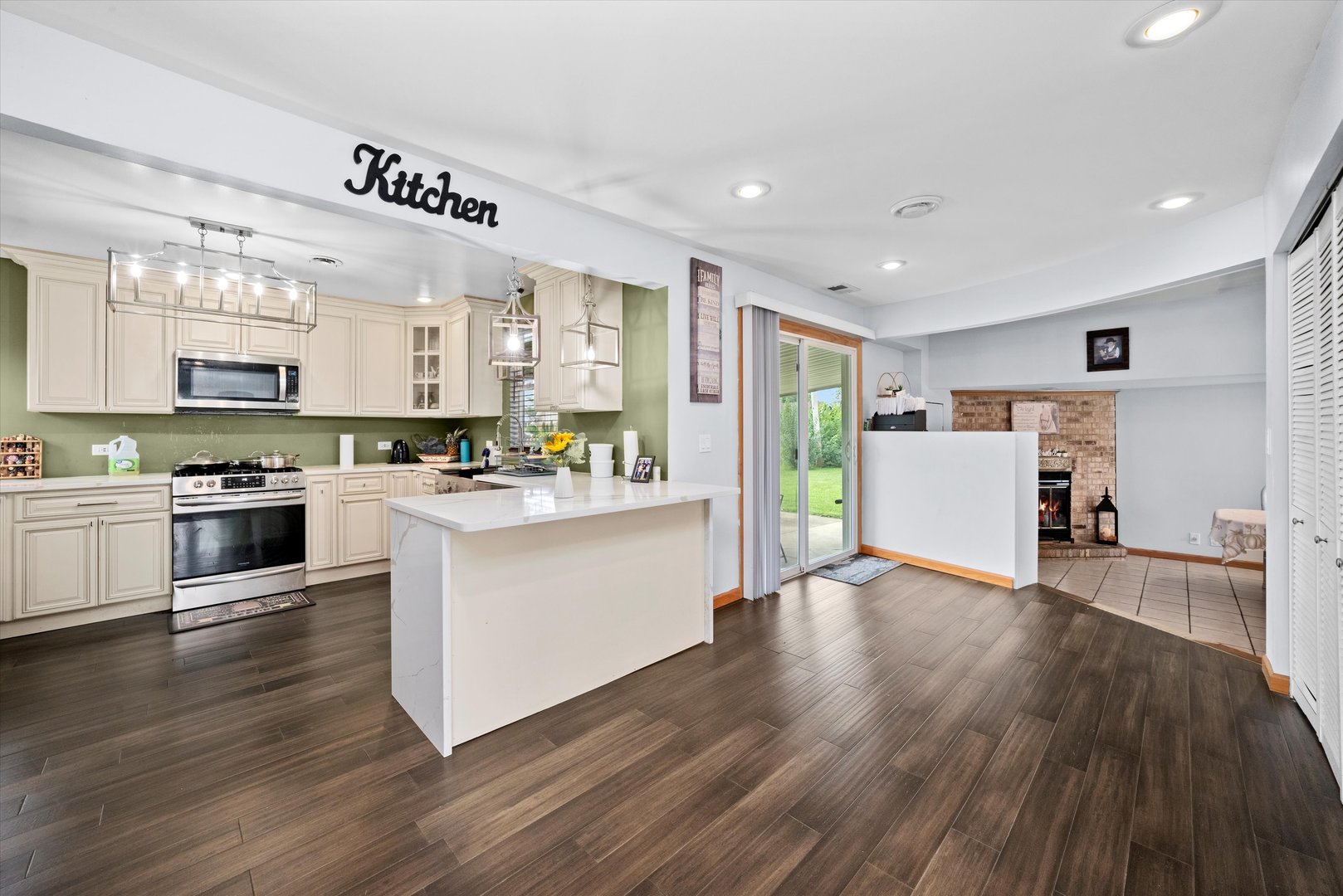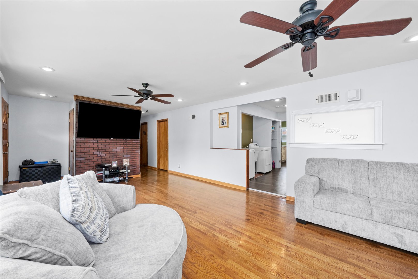 REACTIVATED DUE TO LOAN NOT GETTING APPROVED Great house in excellent condition with 3 bedrooms, 1 bath, large living room, large family room with gas fire place, tall kitchen cabinets ivory color, quartz countertop, beautiful light fixtures, new siding, roof on house and garage. Garage has insulation and is drywalled. Cemented patio with sliding doors and huge yard. Plenty of closets, stainless appliances are staying. Easy to show, low taxes. (Sold As-Is)