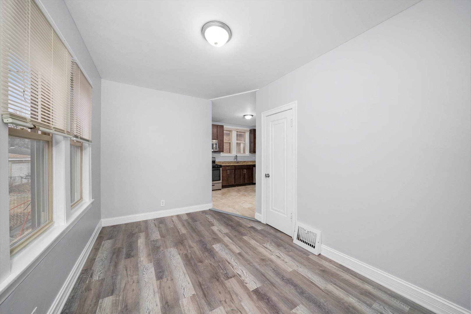 Welcome to your 4 bedroom brick bungalow has been freshly painted and brand new vinyl flooring throughout most of the main level and the entire 2nd floor. There are 2 bedrooms on the main level along with an office off the back of the house. The kitchen boasts stainless steel appliances and upgraded granite countertops. Full bath is on the main level off the kitchen. There are 2 additional bedrooms on the 2nd floor. Full unfinished basement, a blank canvas ready for your creative design. Fenced in backyard with a detached 2-car garage. Schedule your showing today!