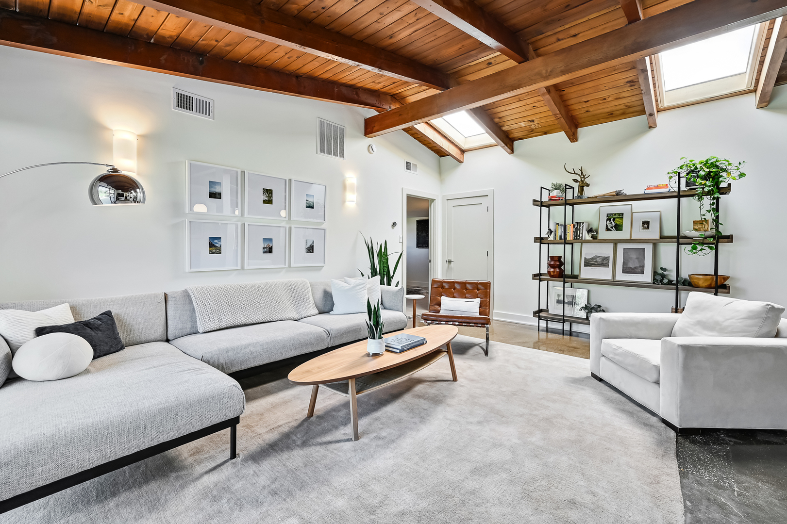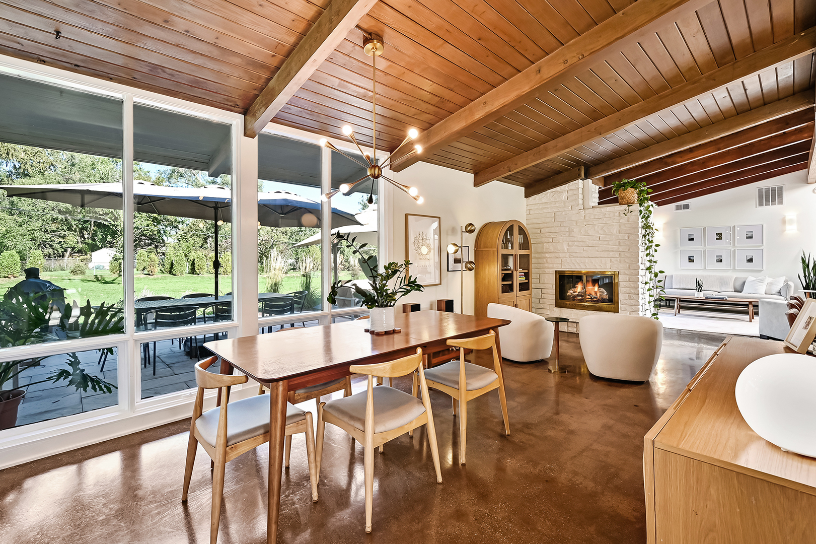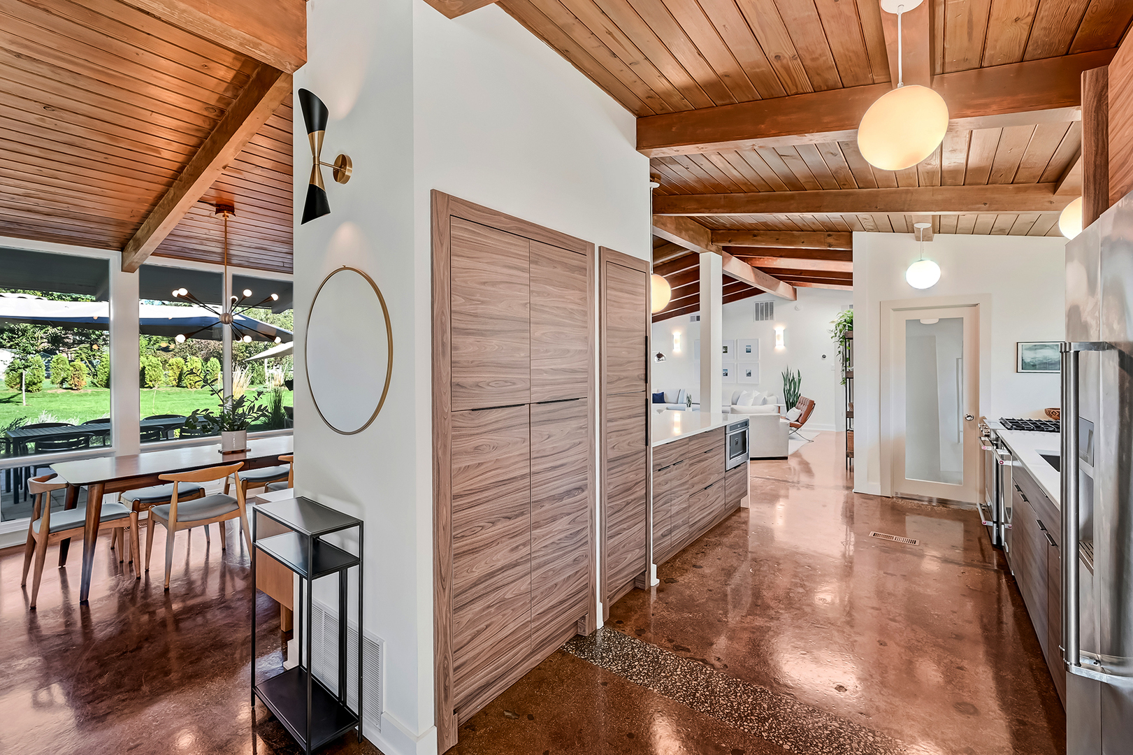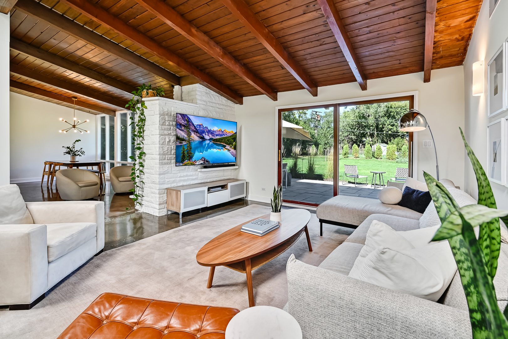 Fabulously renovated MID CENTURY modern home with an over the top amazing and expansive back yard space! This home has been gutted and renovated on the interior from the new windows, 2 beautifully appointed full baths (2023/2025), on point style for the custom kitchen with glass tile and large island open to the dining space, new electrical service (electrical line has been buried to the house), new Furnace and AC, new water service to the home and fabulous expanded new patio in the private back yard that spans the entire living area of the house plus the fourth bedroom area on the exterior. New washer and dryer in the functional mudroom space off of the garage. Four fantastic bedrooms with large family room with lofted natural beamed ceilings as well as a comfortable living area and dining room with TONS of natural light plus an attached 2 car garage. This home is so versatile will all living on one level. Outstanding Highlands SCHOOLS as well. Just move in and enjoy!