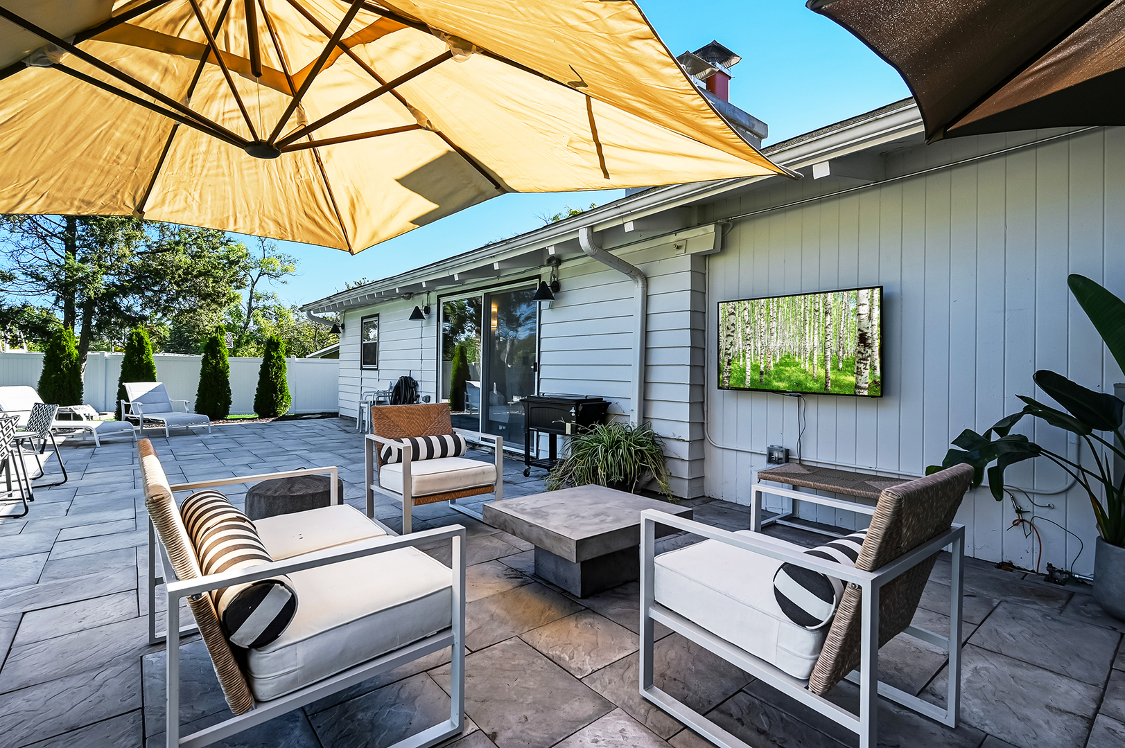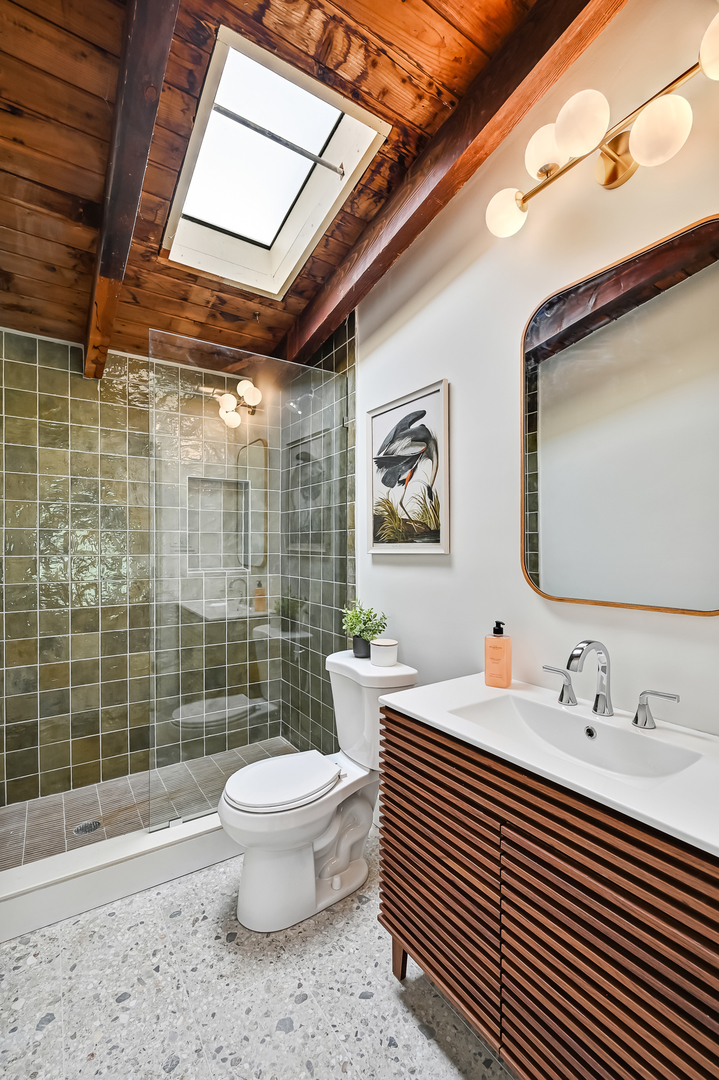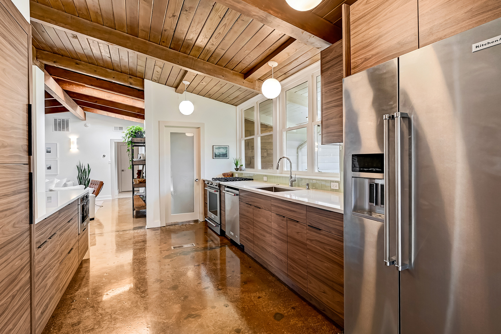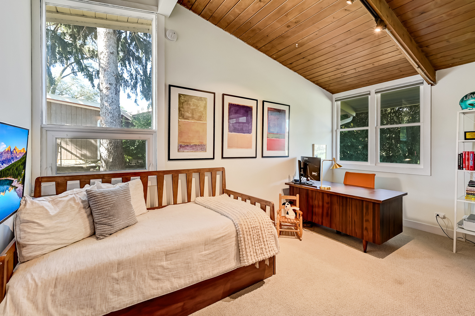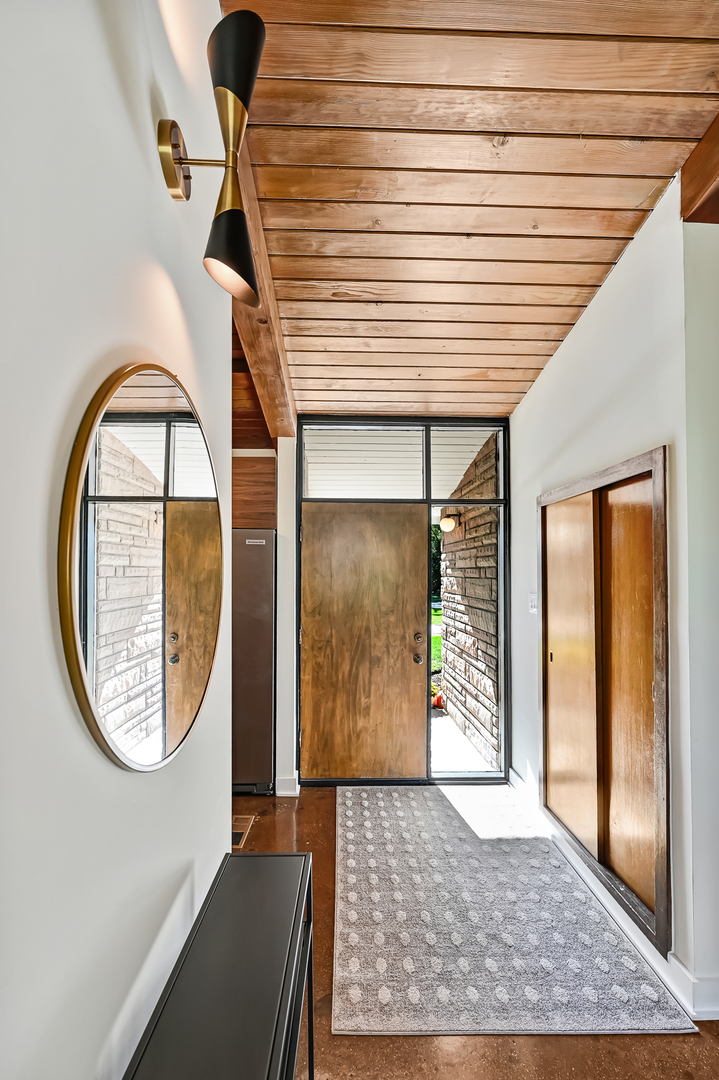 Fabulously renovated MID CENTURY modern home with an over the top amazing and expansive back yard space! This home has been gutted and renovated on the interior from the new windows, 2 beautifully appointed full baths (2023/2025), on point style for the custom kitchen with glass tile and large island open to the dining space, new electrical service (electrical line has been buried to the house), new Furnace and AC, new water service to the home and fabulous expanded new patio in the private back yard that spans the entire living area of the house plus the fourth bedroom area on the exterior. New washer and dryer in the functional mudroom space off of the garage. Four fantastic bedrooms with large family room with lofted natural beamed ceilings as well as a comfortable living area and dining room with TONS of natural light plus an attached 2 car garage. This home is so versatile will all living on one level. Outstanding Highlands SCHOOLS as well. Just move in and enjoy!