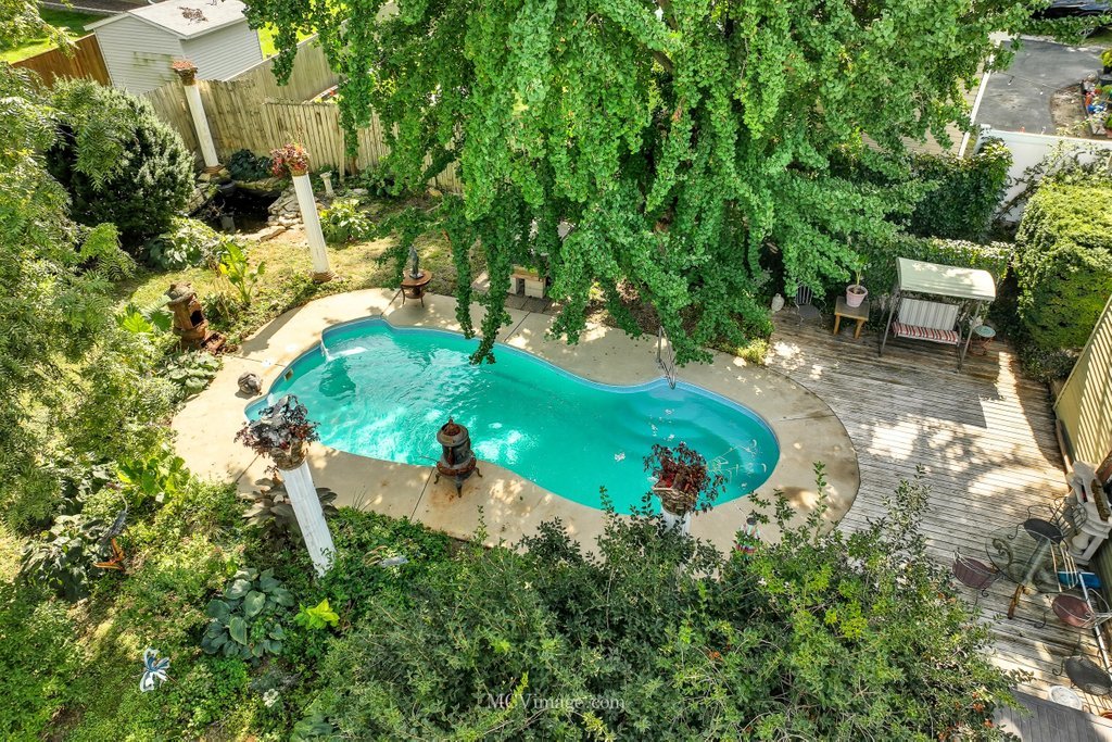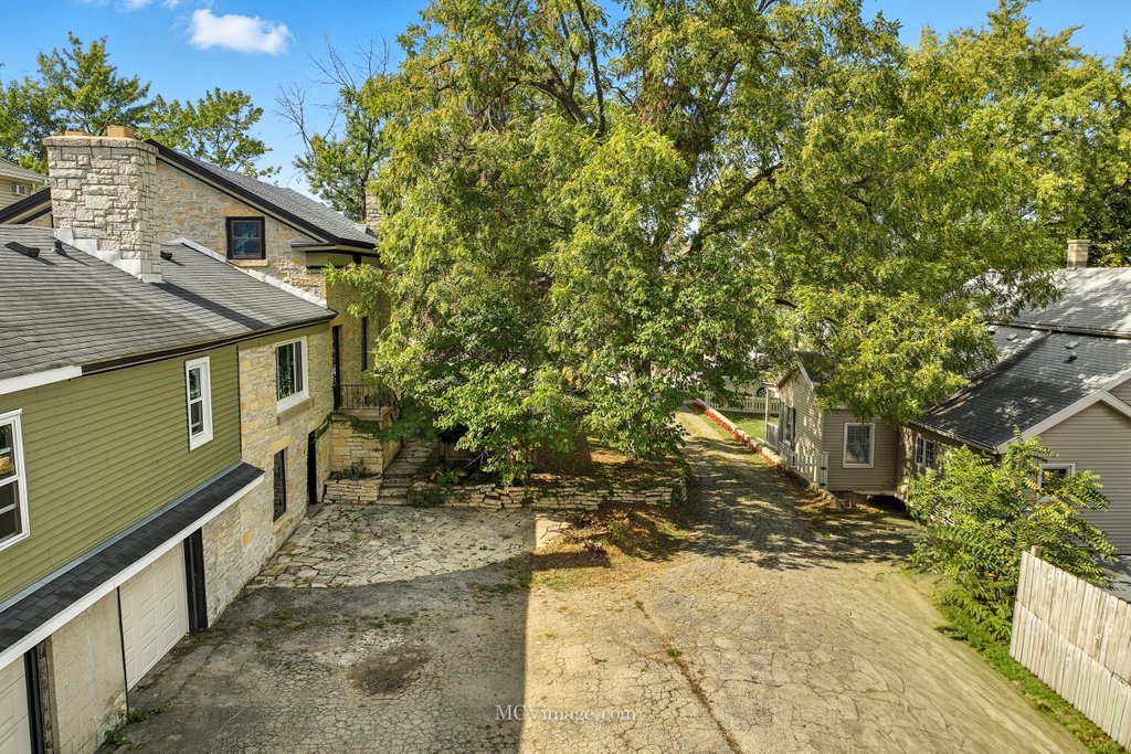 Limestone dug out of the I&M Canal built this original Lockport home in 1837. The location combines quiet privacy with the excitement of community, resting close enough to enjoy all that Lockport has to offer, while maintaining a secluded fenced backyard, pool, and deck. This 5 bedroom, 2 1/2 bath property provides views of the town’s special events, historic architecture, and modern night-life, together with a variety of restaurants and shops teeming with historic Lockport pride! The Backyard getaway offers quiet seclusion with an inground pool, mature trees, Koi pond, landscape artistry, firepit, and wide open front lawn. The pool has a lifetime warranty and comes with the heater and cover included. The first floor displays an open concept kitchen attached to an eat-in family room. The dining room enjoys its own separate space along with the original wood-burning fireplace, which is one of 3 working fireplaces within the home. Two bedrooms and one full bath are on the first floor, so one-floor living is possible. The living room, front bedroom, entryway, and upstairs bedroom all have the original wood flooring, while the master bedroom has wood-look ceramic tile. The front bedroom can double as an office and boasts the home’s second fireplace. New windows in the dining room, bathroom, and back family room were replaced with a lifetime, transferable warranty. Travel up the historic staircase to the remaining 3 bedrooms and 2nd full bath upstairs. Five window air conditioning units throughout the house keep the whole home cool and cozy. The basement has been dug down to increase the ceiling height, with concrete flooring added to the well-maintained stone walls. The laundry room is housed in the basement with a single toilet and sink. The electric has been upgraded to 220v and the plumbing updated as well, replacing all old lead piping with PVC. The basement is accessible from the interior of the home, through the attached garage, as well as through a door leading to the lower level stone patio shaded by mature trees, including a Black Walnut, Tri-leaf Beech, Rebud and one of the oldest Ghinko trees in all of Illinois! Exterior limestone was fully tuckpointed in 2024. You will not find another property like this with its combination of important upgrades and stunning history overlooking bustling downtown Lockport.
